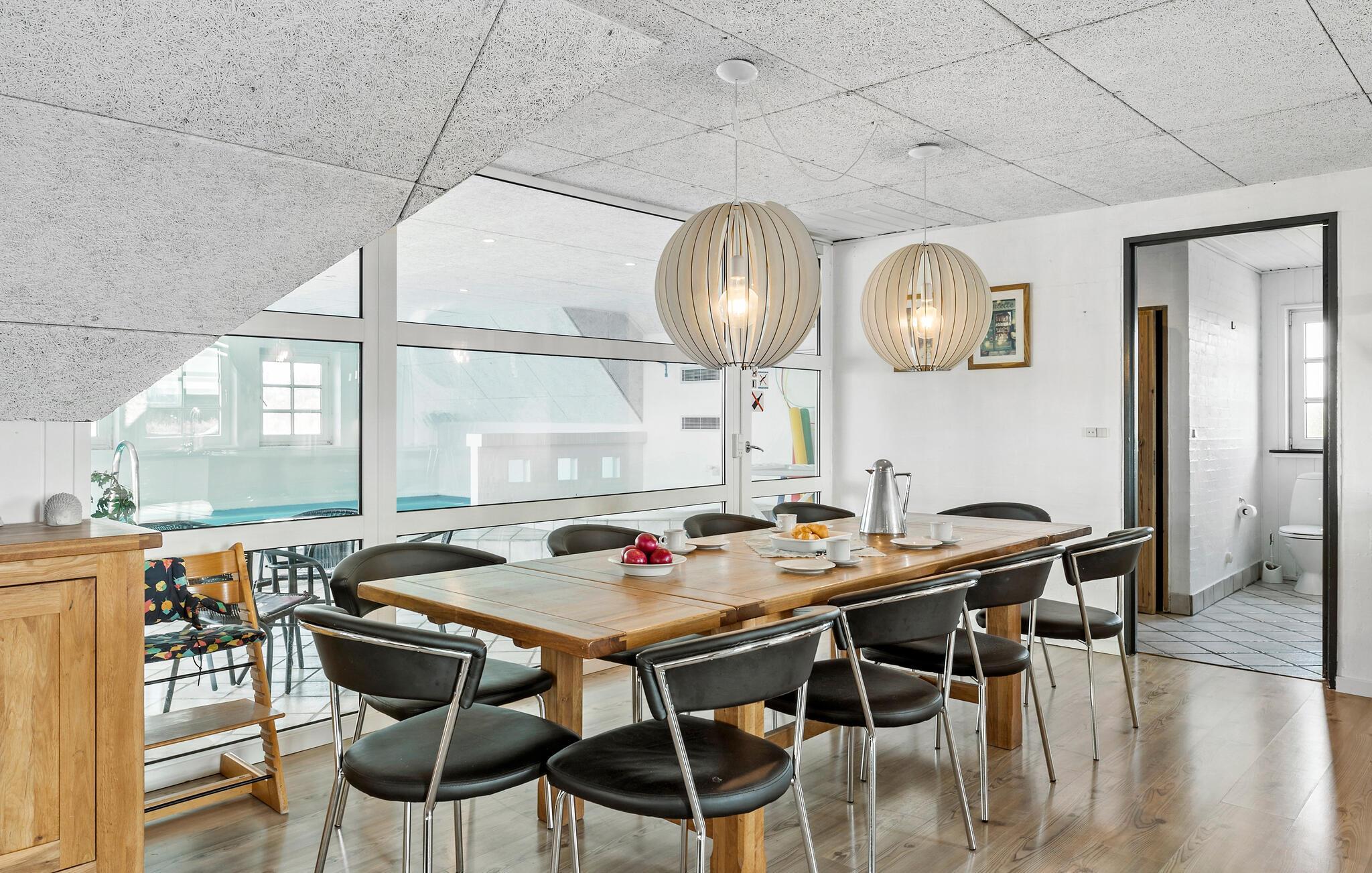 Mit ausreichend Platz für eine große Familie ist dieses Haus in Klegod an der Nordseeküste der ideale Ort für Ihren nächsten Urlaub in Dänemark. Der helle und komfortable Wohnbereich lädt zum Entspannen ein. Lehnen Sie sich in der großzügigen Sofaecke zurück und genießen Sie gemeinsame Mahlzeiten am Esstisch neben dem gemütlichen Kaminofen. Darüber hinaus können Sie die vielfältigen Annehmlichkeiten des Hauses nutzen. Tauchen Sie in den privaten Pool ein oder entspannen Sie nach einem erlebnisreichen Tag im Whirlpool. Die Sauna schenkt nach einem ausgedehnten Strandspaziergang wohlige Entspannung.