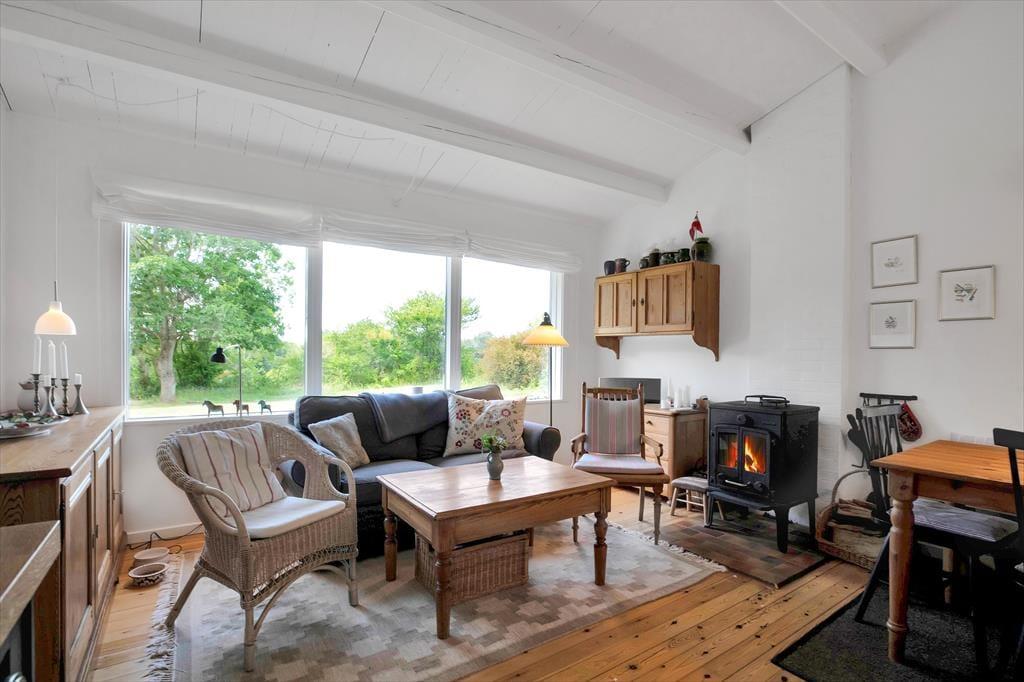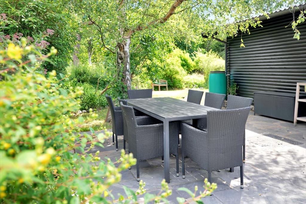 Draußen erwarten euch mehrere einladende Terrassen und ein etwa 7000 Quadratmeter großes Grundstück mit Rasen und Baumbestand, auf das Bänke, Tische und Stühle verteilt sind. Hier könnt ihr ganz nach Wunsch Ruhe und Frieden, Sonne oder Schatten finden. Das Grundstück bietet einen herrlichen Blick auf den Sonnerup Wald und das Naturschutzgebiet Fladvandet. Wir empfehlen einen Spaziergang auf kleinen Wegen durch "Klint Baker" und "Sonnerup Skov" bis ans Kattegat.