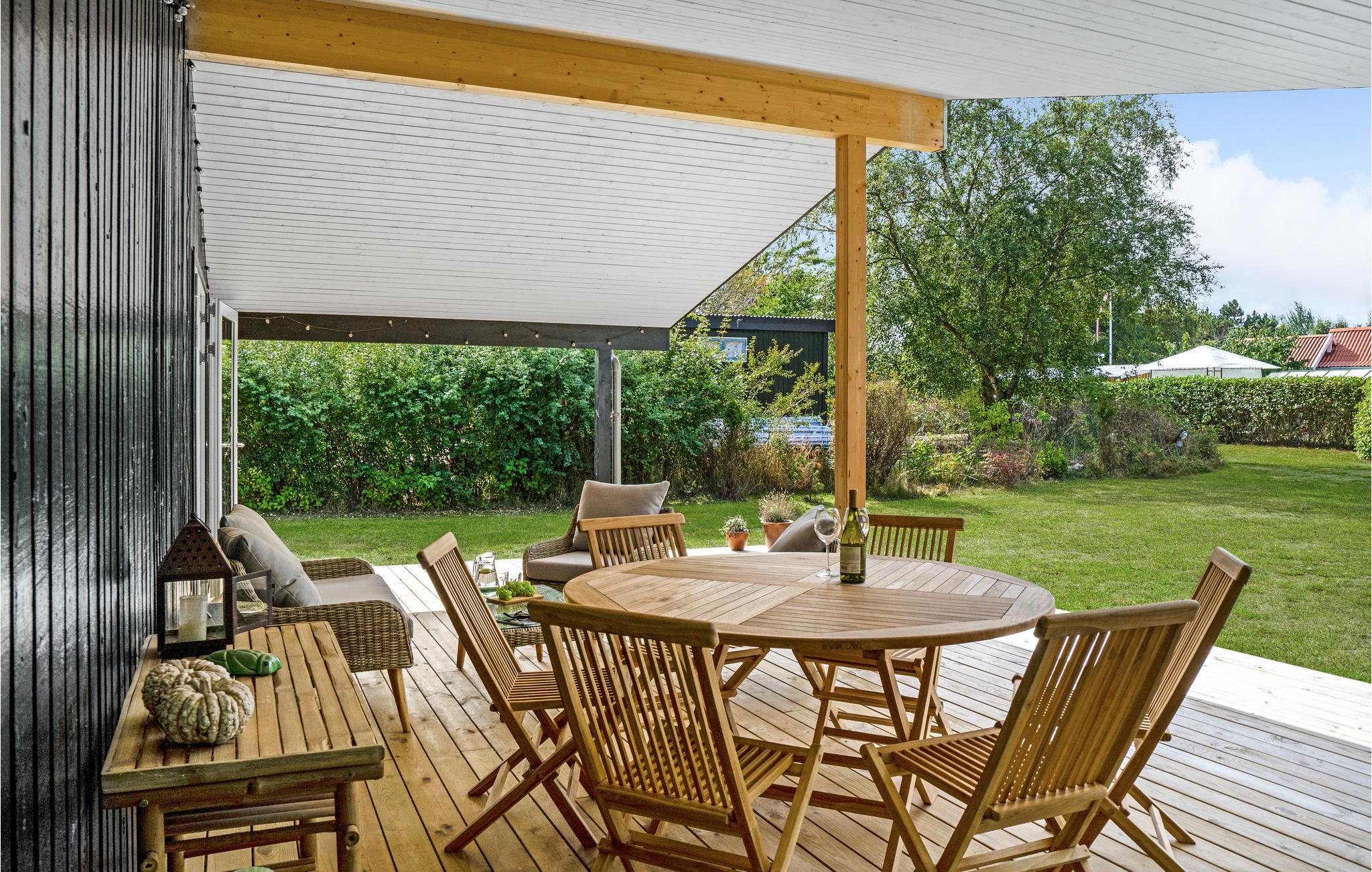 Gemütliches Ferienhaus bei Klint mit Kamin, großer Terrasse und nur 300 m zum Strand, ideal für entspannte Sommerferien in Dänemark.