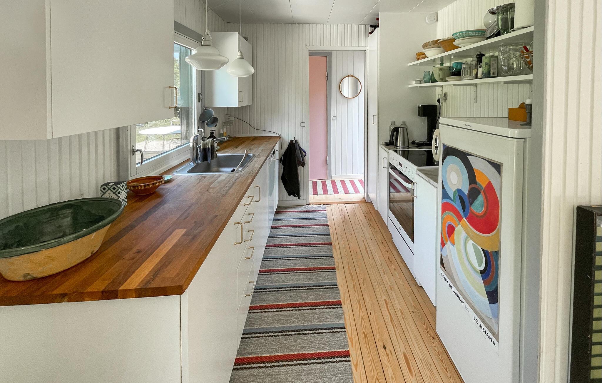 Treten Sie ein in das wohnliche Innere Ihres Ferienhauses mit Holzboden, farbenfrohem Essbereich und großen Fensterflächen, die den Raum mit Licht durchfluten. Machen Sie es sich auf dem Sofa in der hellen Sitzecke bequem, schauen Sie einen Film oder lesen Sie ein gutes Buch. Bereiten Sie Ihre Mahlzeiten in der Küche mit langer Arbeitsfläche zu. Genießen Sie gemeinsame Zeit bei Tisch und schaffen Sie sich Ihre persönliche Wohlfühloase.