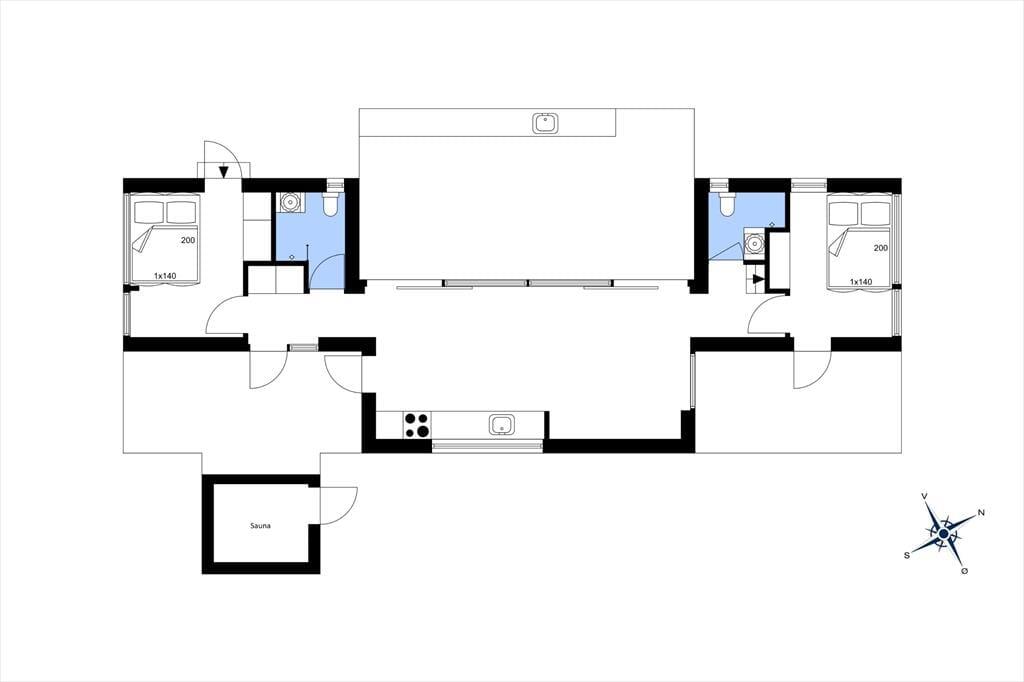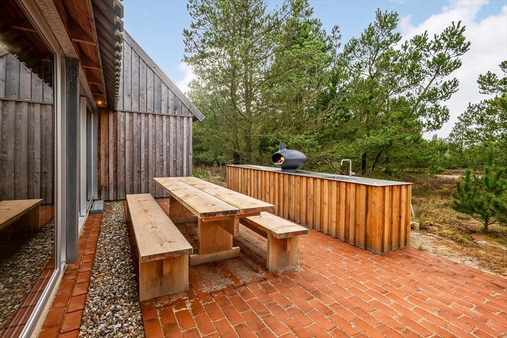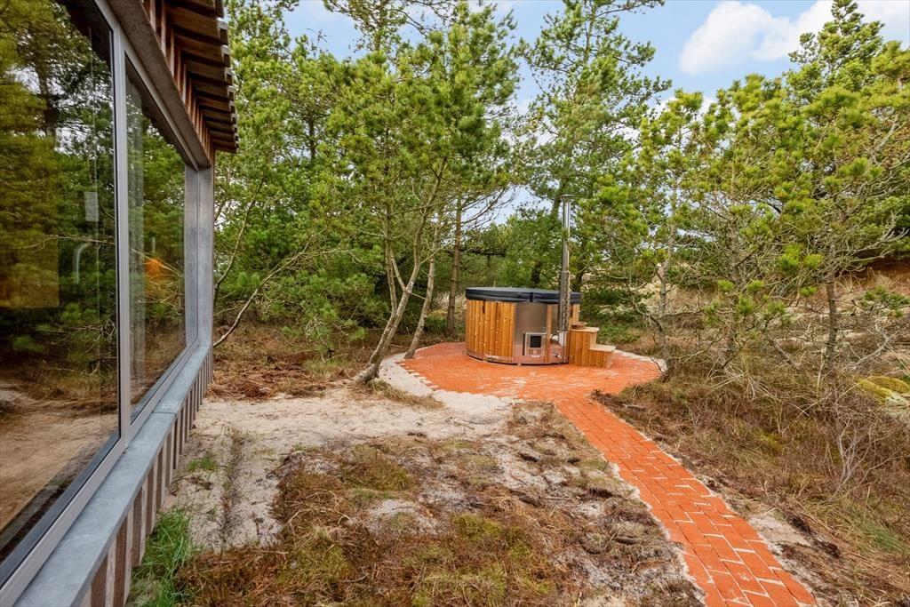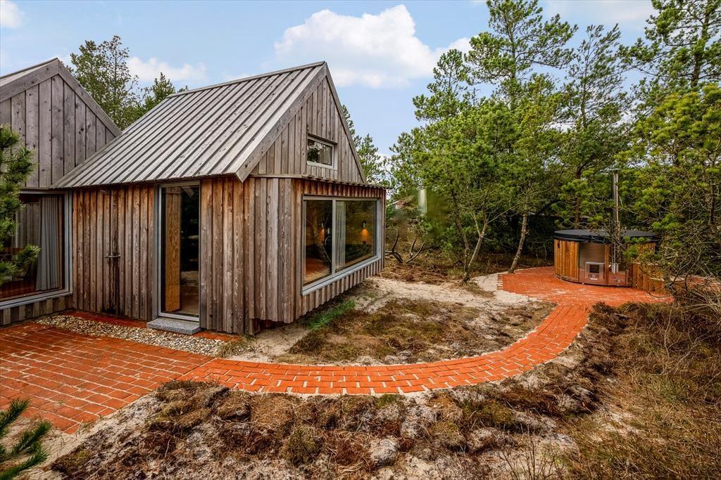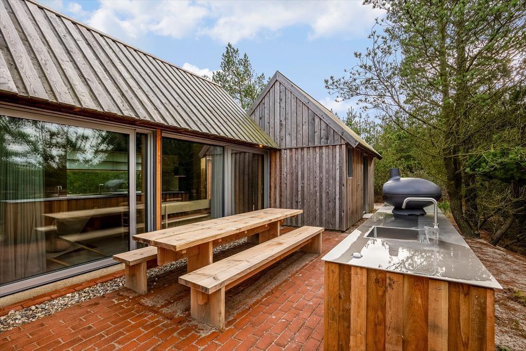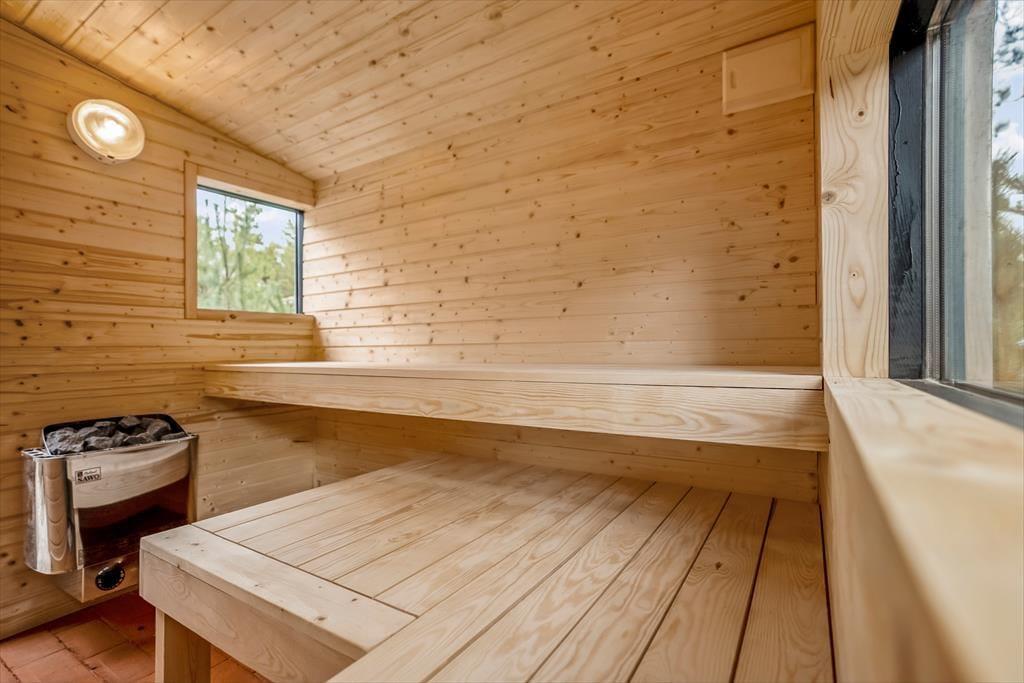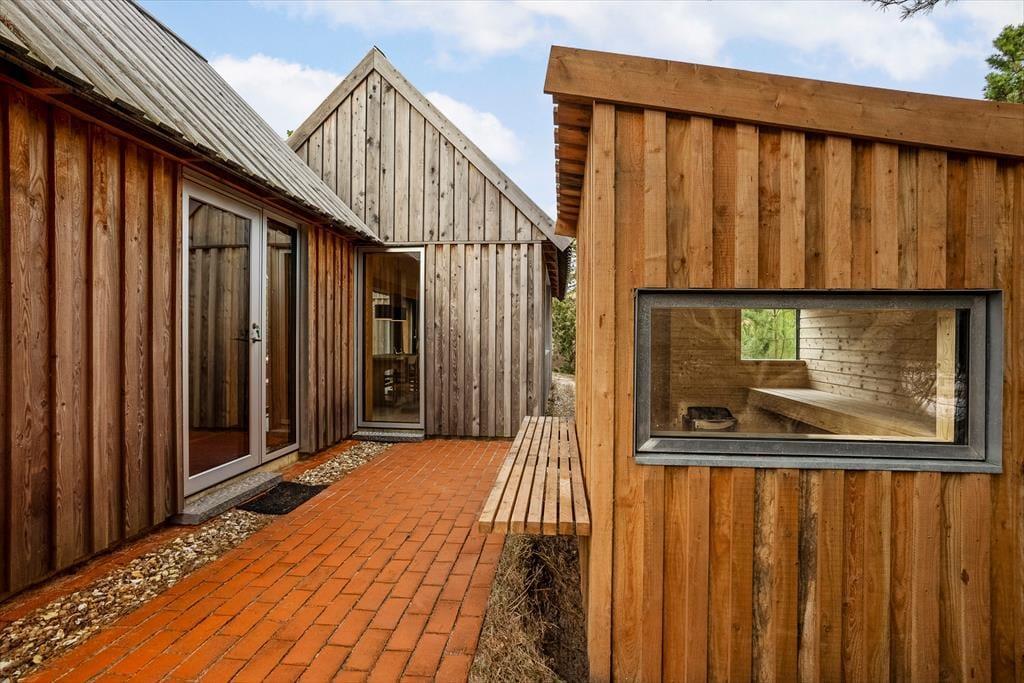 Der Außenbereich des Hauses ist fast wie ein zweites Wohnzimmer – nur unter freiem Himmel. Hier findest du alles, was das Herz begehrt: eine Sauna, eine Outdoor-Dusche, ein rustikales Wildnisbad und eine schöne Außenküche, die zu langen Sommerabenden unter dem Sternenhimmel einlädt. Die Architektur des Hauses macht den Übergang von drinnen nach draußen nahtlos – und du wirst schnell merken, wie sehr du es genießt, draußen zu sein. Ob mit der Morgenkaffeetasse auf der Terrasse, einem erfrischenden Bad im Wildnisbad oder mit einem Glas Wein in der Dämmerung – hier spürst du echte Urlaubsfreude.