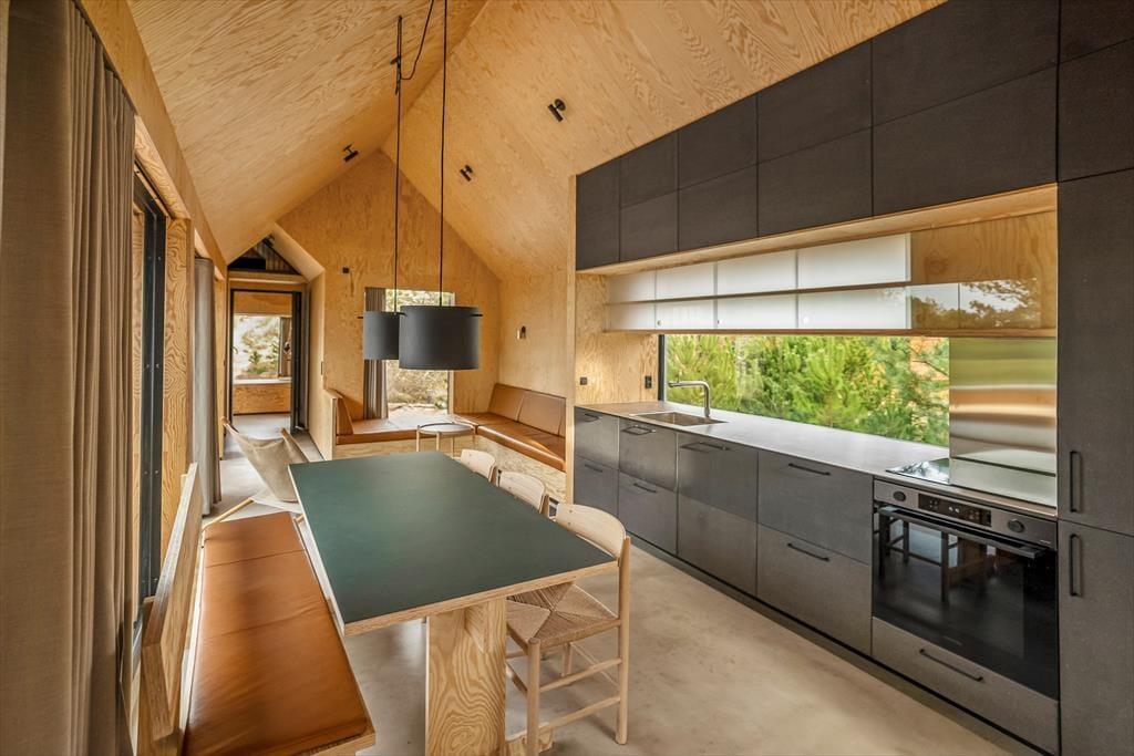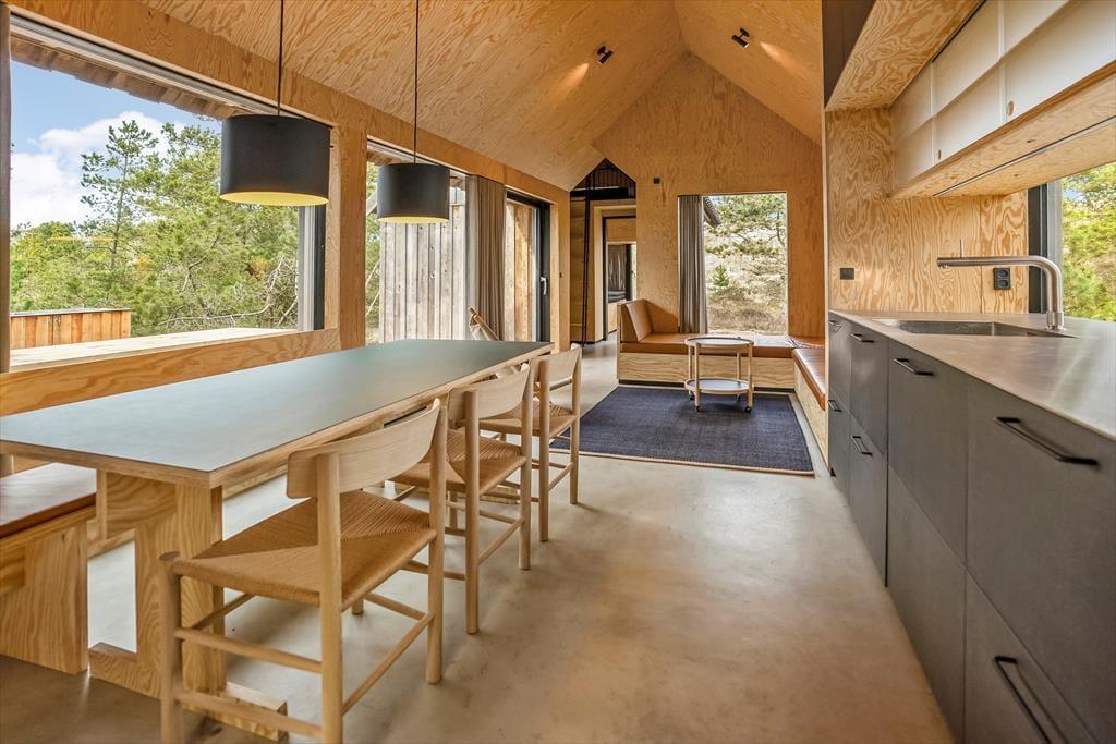 Sobald du das Haus betrittst, spürst du sofort die besondere Atmosphäre, die nur entsteht, wenn auf jedes Detail geachtet wurde. Die Einrichtung dieses neu erbauten Hauses ist einzigartig und durchdacht – mit kreativen Lösungen, die sowohl Ästhetik als auch Funktion vereinen. Die vielen warmen Holzverkleidungen erzeugen eine ruhige, wohnliche Stimmung, die sich wie eine Umarmung anfühlt. Große Fensterfronten holen die Natur direkt ins Wohnzimmer und lassen das Licht sanft über die klaren Linien des Hauses gleiten. Ob am langen Esstisch mit Blick in die Natur oder gemütlich im Sofa – hier findet jeder seinen Lieblingsplatz.