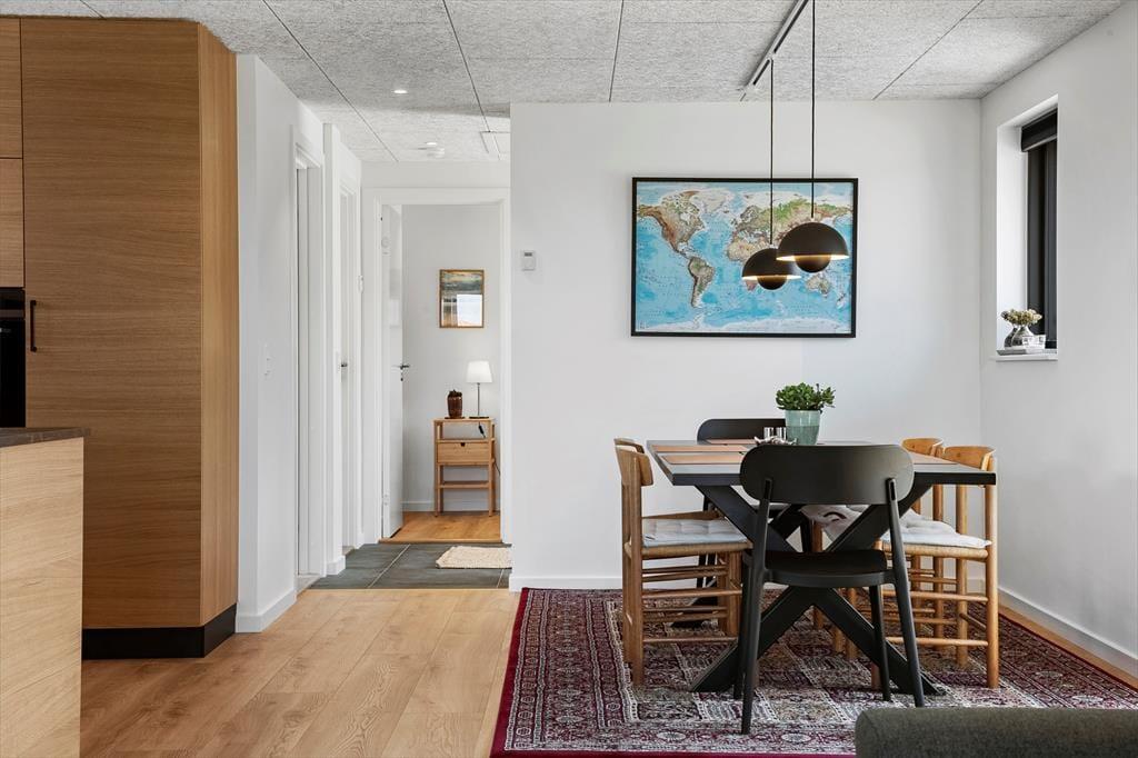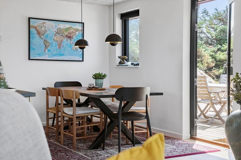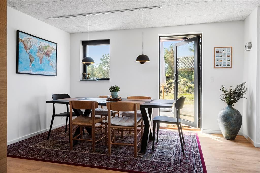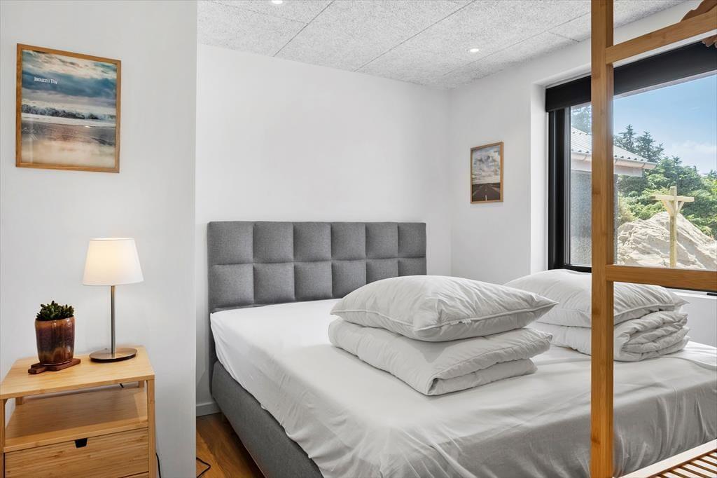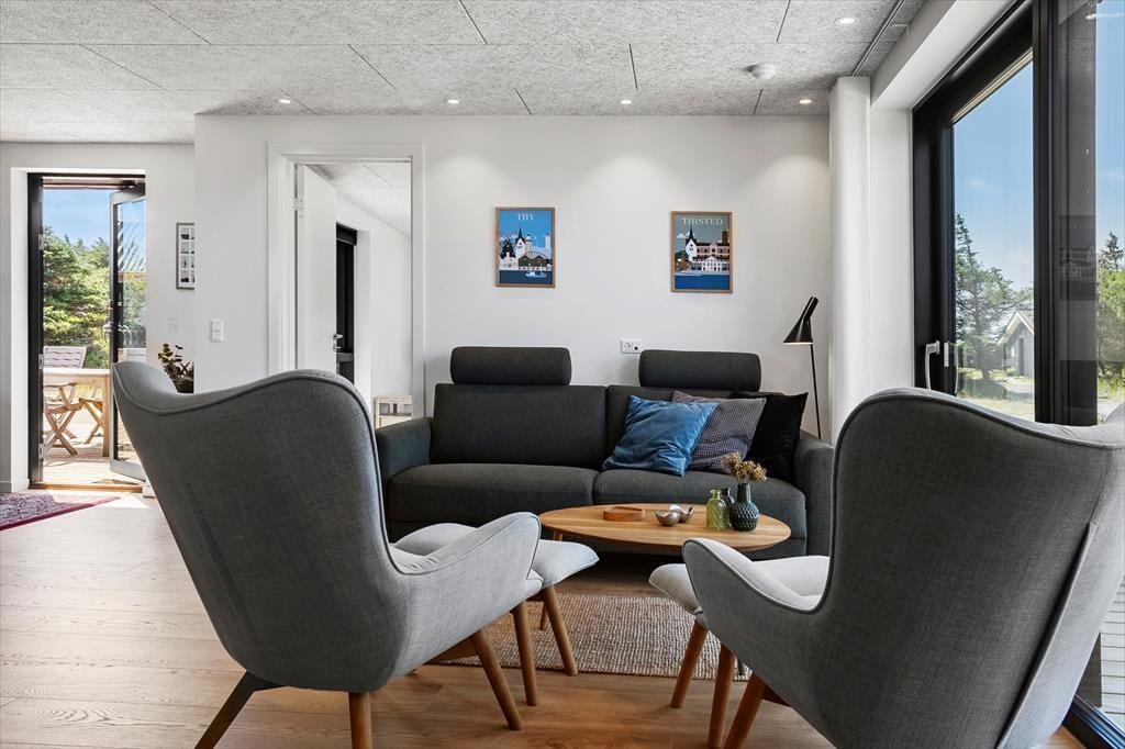 Das Ferienhaus in Kløvborgsti 5 A wurde 2025 komplett renoviert und präsentiert sich modern, einladend und gleichzeitig wunderbar gemütlich. Im Inneren erwartet dich ein lichtdurchflutetes Zuhause, in dem Komfort und stilvolle Einrichtung Hand in Hand gehen. Der große Wohnbereich mit Sofaecke und offener Küche ist das Herz des Hauses. Eine Wärmepumpe sowie Fußbodenheizung in allen Räumen bis auf das kleine Zimmer sorgen dafür, dass du dich das ganze Jahr über wohlfühlen kannst – ob im Winter oder Sommer. Alles im Haus ist liebevoll gestaltet, sodass du sofort abschalten und die Ruhe genießen kannst.
