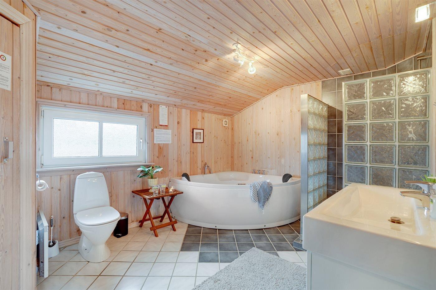 Es gibt 1 Badezimmer mit Duschnische und 2 Toiletten, davon 1 Gästetoilette. Fußbodenheizung in 1 Badezimmer. Es steht eine Sauna zur Verfügung in der Sie sich so richtig entspannen können.