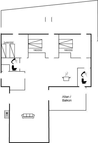 Die Schlafplätze verteilen sich auf 3 Schlafräume. 4 Schlafplätze in Doppelbetten. 2 Schlafplätze in Einzelbetten. 2 Schlafplätze auf einer Doppelschlafcouch. Ferner steht ein Kinderbett zur Verfügung.