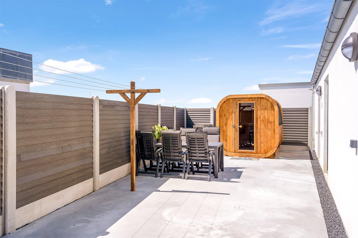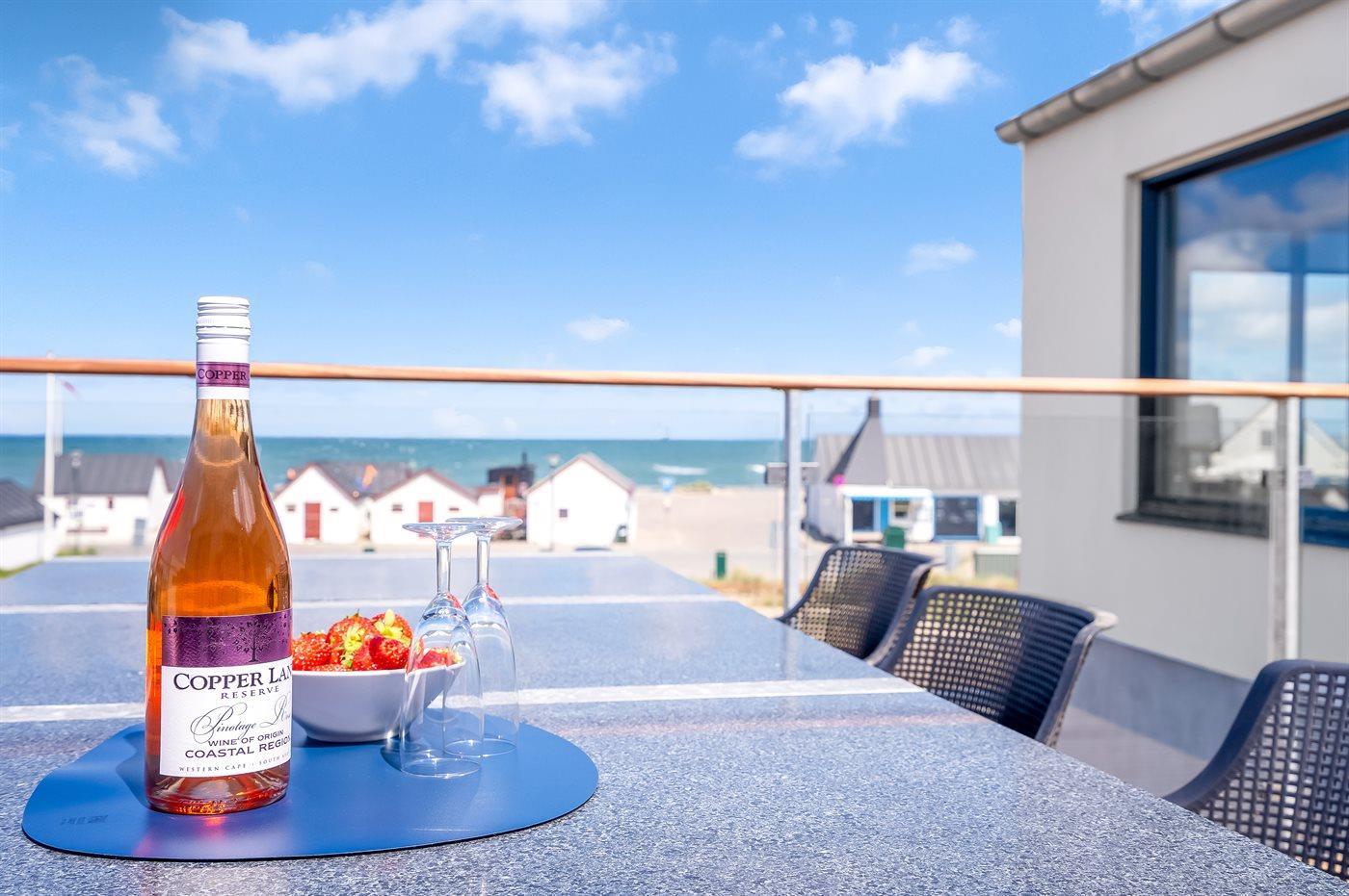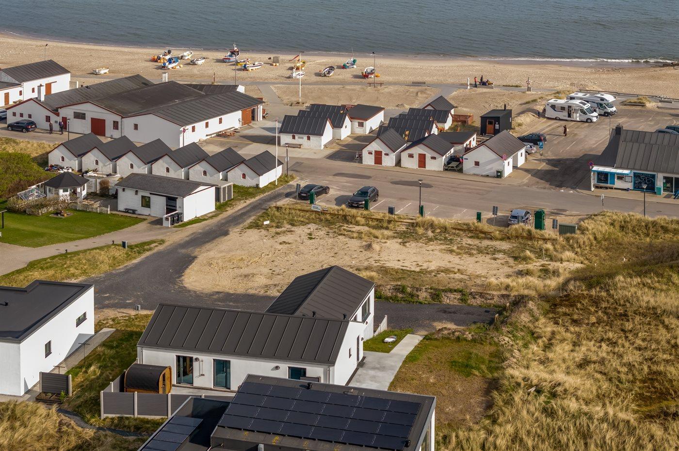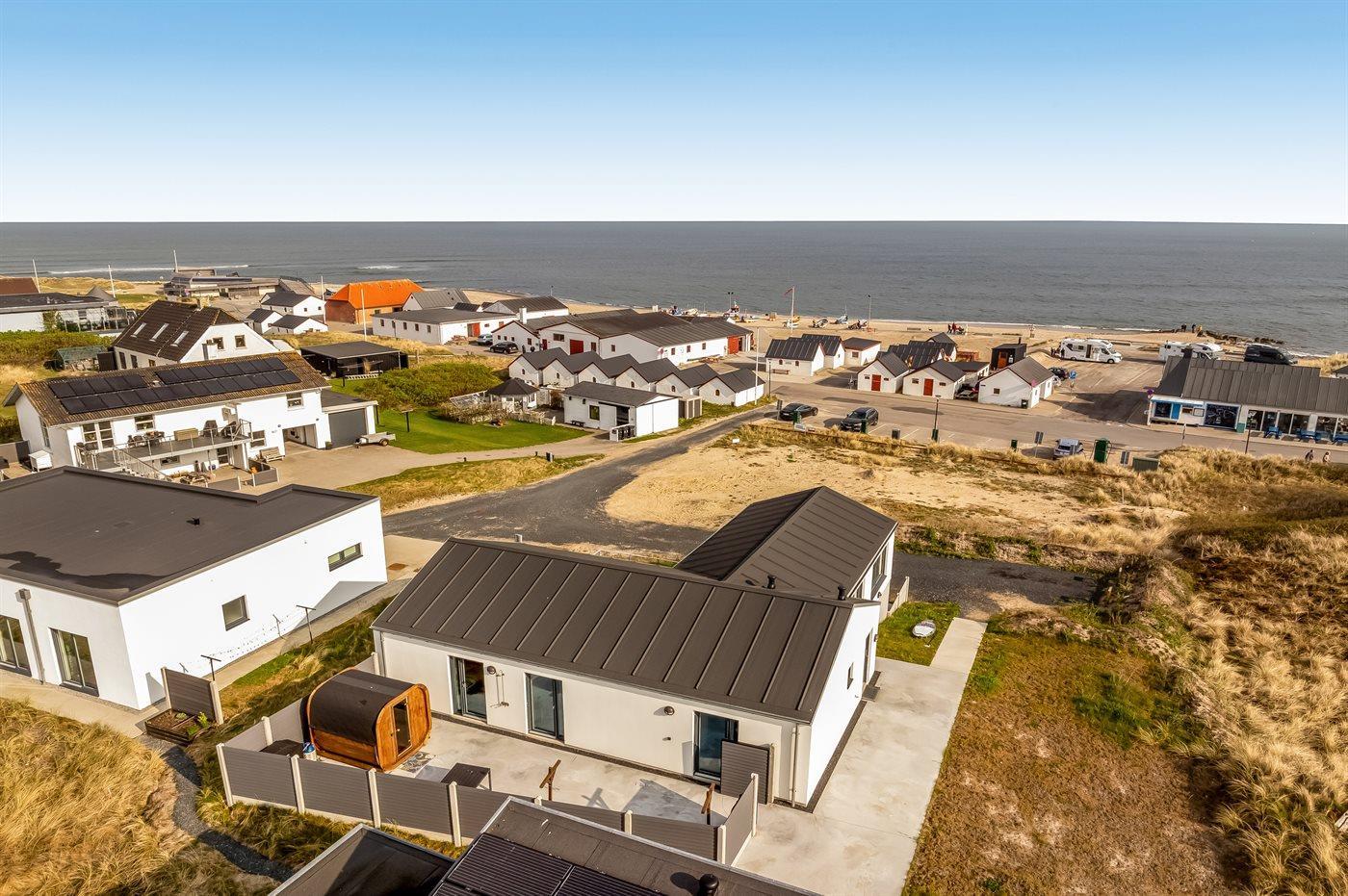 Die Ferienunterkunft liegt auf einem 800 m² großen Dünengrundstück. Die Entfernung zum Meer beträgt 75 m. Die nächste Einkaufsmöglichkeit liegt 1000 m entfernt. Es steht ein 75 m² Terrassenareal zur Verfügung. Davon insgesamt 60 m² geschlossene Terrasse. Außensauna. Außendusche. Es steht ein Grill zur Verfügung. Parkplatz auf dem Grundstück.