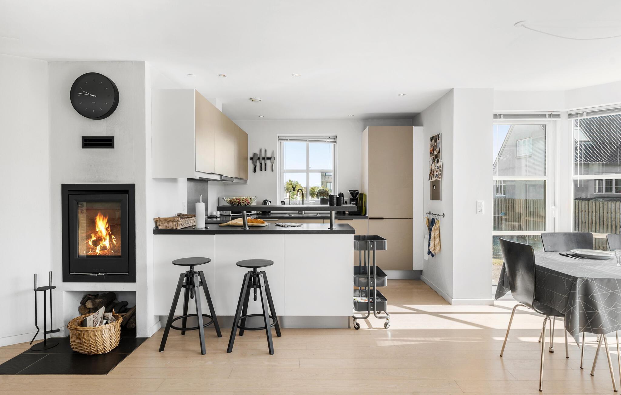 Erleben Sie Ihren Traumurlaub in diesem stilvollen Ferienhaus am Klitmøller Strand. Die moderne und elegante Inneneinrichtung sorgt für ein luxuriöses Ambiente, während große Fenster und viel Tageslicht eine einladende Atmosphäre schaffen. Entspannen Sie in dem gemütlichen Wohnzimmerbereich mit Kamin oder nutzen Sie den Wellnessbereich mit Sauna und Whirlpool für zusätzliche Erholung.