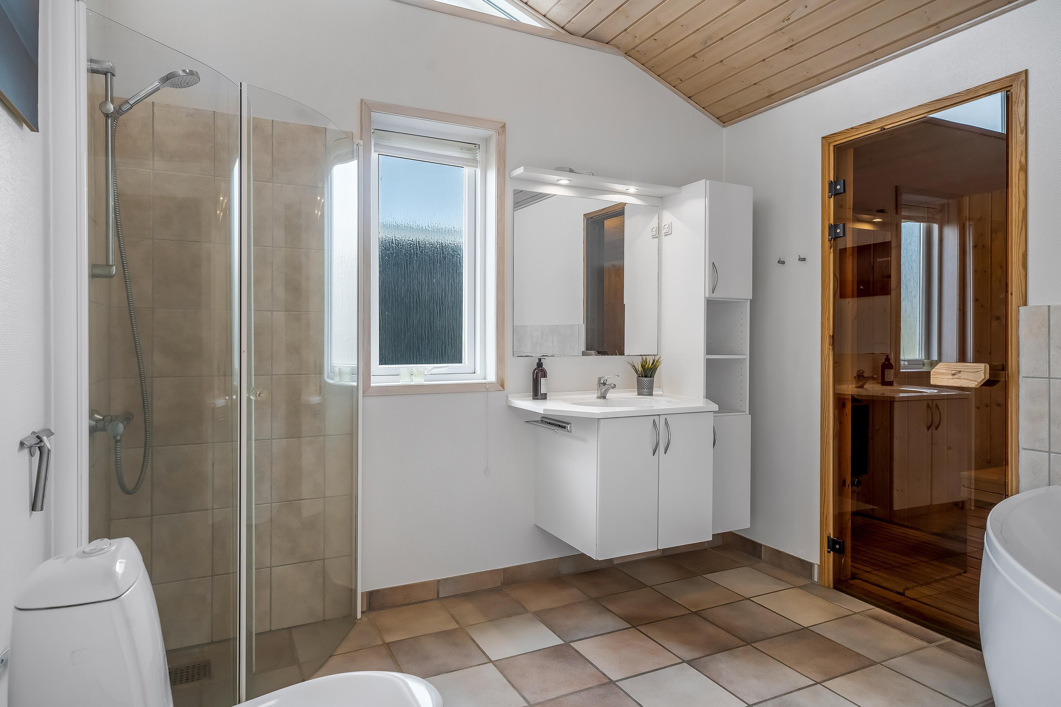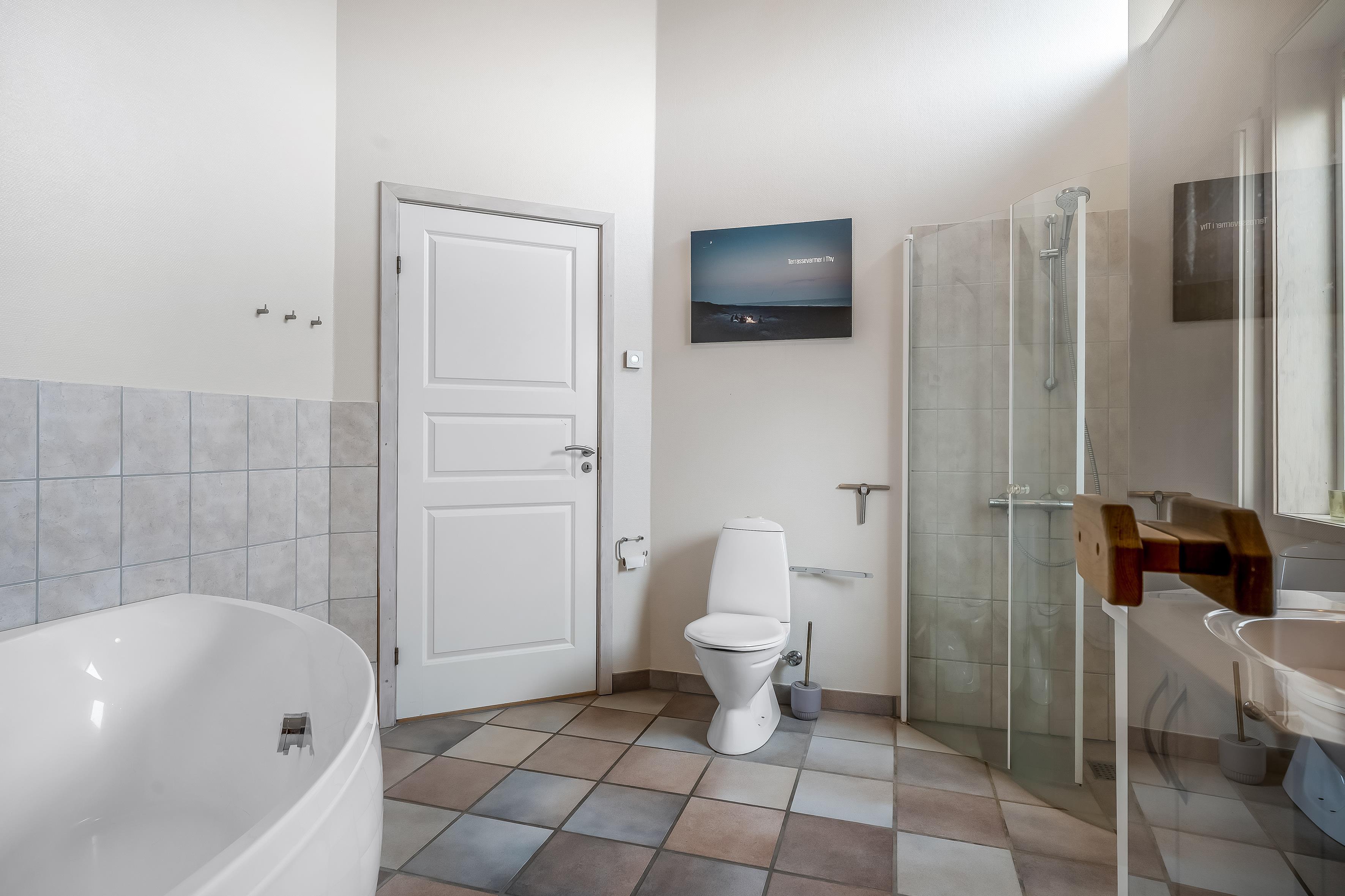 Im Haus finden Sie vier gemütliche Schlafzimmer, drei davon mit Doppelbetten. Das vierte Schlafzimmer im Anbau des Hauses ist mit zwei Einzelbetten ausgestattet. Dies bietet Flexibilität für Paare und Einzelpersonen. Es gibt außerdem zwei moderne Badezimmer und ein Gäste-WC, eines davon mit Dusche und luxuriöser Badewanne – ideal zum Entspannen nach einem langen Tag. Das andere Badezimmer befindet sich im Nebengebäude des Hauses. Beide Badezimmer verfügen über Fußbodenheizung, die auch an kälteren Tagen für eine angenehme Temperatur sorgt.