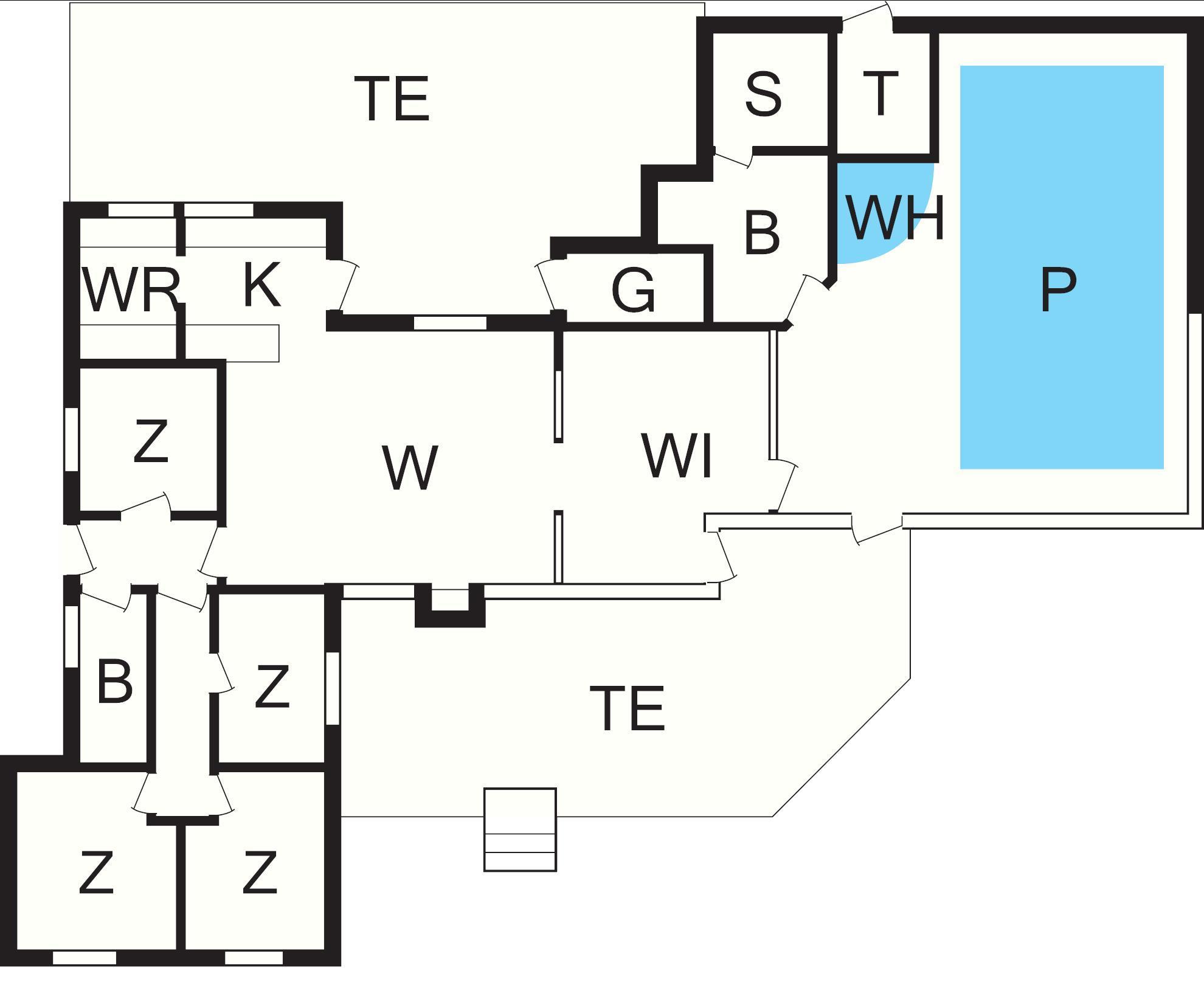 Ferienhaus mit Poolbereich, der einen 7 x 3,4 m großen Swimmingpool, einen Whirlpool, eine Sauna und ein Badezimmer beinhaltet. Hier werden Sie sicherlich viele erholsame Urlaubsstunden verbringen.