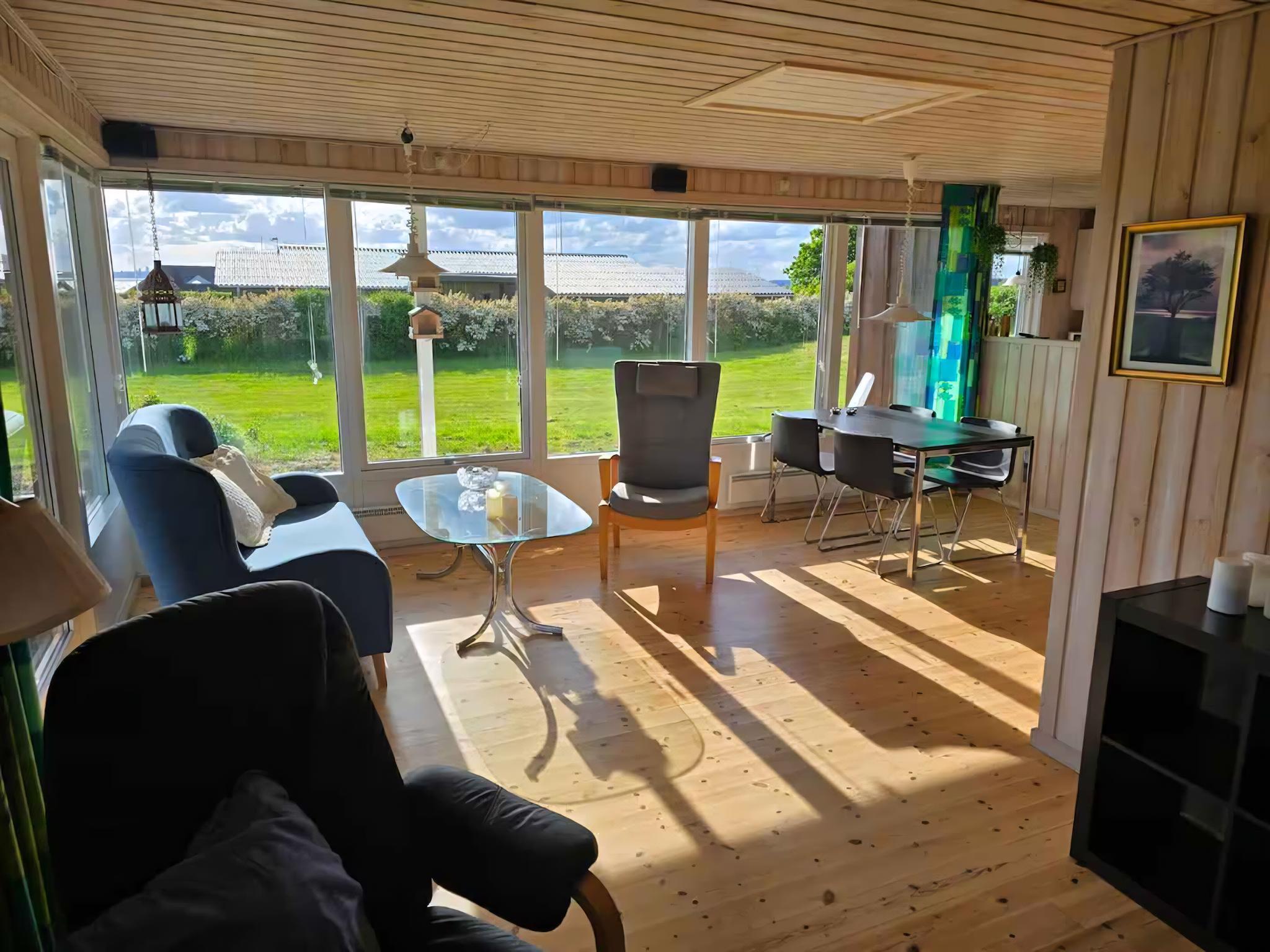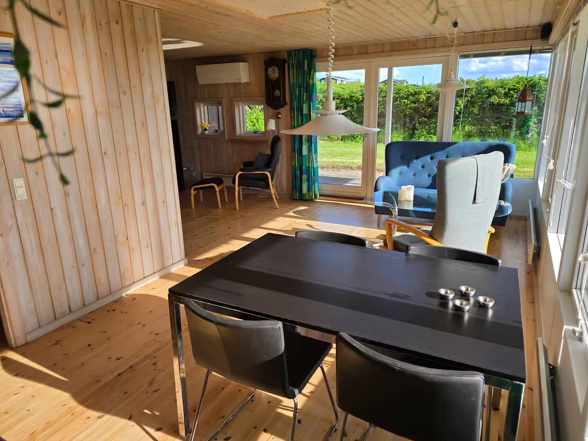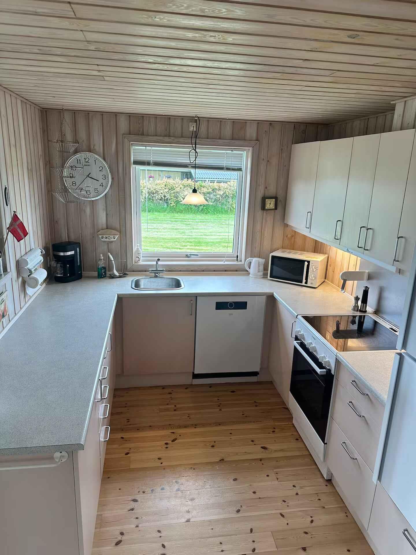 Dieses helle 78-m²-Ferienhaus liegt ruhig mit Blick auf die Aarhusbucht. Mit zwei Schlafzimmern und drei Schlafplätzen, einem lichtdurchfluteten Wohn-Küchenbereich und einem separaten Büro mit schnellem Internet ist es ideal für Paare, kleine Familien oder Alleinreisende. Die Einrichtung ist schlicht und funktional, mit Fokus auf Komfort. Das Wohnzimmer führt direkt in den Garten, und das Bad verfügt über eine gepflegte Dusche. Das Haus wurde frisch hergerichtet und eignet sich für Urlaub, Arbeit oder ruhige Auszeiten. Die überdachte Terrasse verlängert das Leben im Freien. Der Garten bietet Platz zum Spielen, Entspannen und Genießen des Ausblicks. Im Sommer können Brombeeren im Garten gepflückt werden. Die Umgebung bietet besondere Urlaubsqualitäten. Der Strand liegt nur 150 Meter entfernt, ist kinderfreundlich, westlich ausgerichtet und ideal zum Baden, Krabbenfangen oder für SUP- und Kajaktouren. Das Wasser ist ruhig und anfängerfreundlich. Der Hafen von Skødshoved ist fußläufig erreichbar und bietet Eisladen, Restaurant und maritimes Flair. Küstenwege, Natur und ruhige Straßen eignen sich gut zum Wandern und Radfahren. Der Nationalpark Mols Bjerge liegt in der Nähe und bietet eindrucksvolle Landschaften. Am Abend sieht man die Lichter von Aarhus über der Bucht. Die Mischung aus Natur, Meer, Ruhe und Komfort macht dieses Haus zu einem friedlichen Rückzugsort.