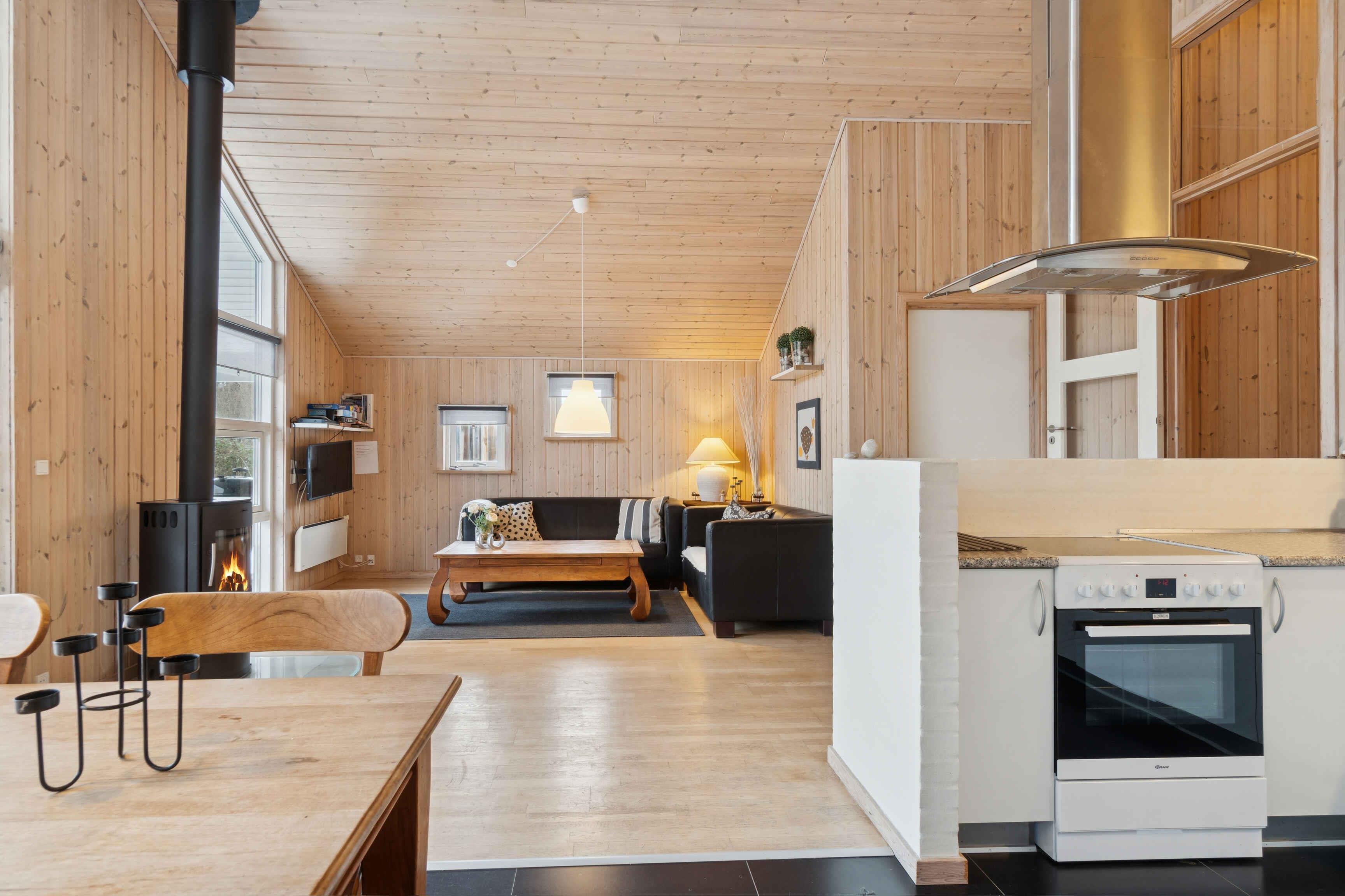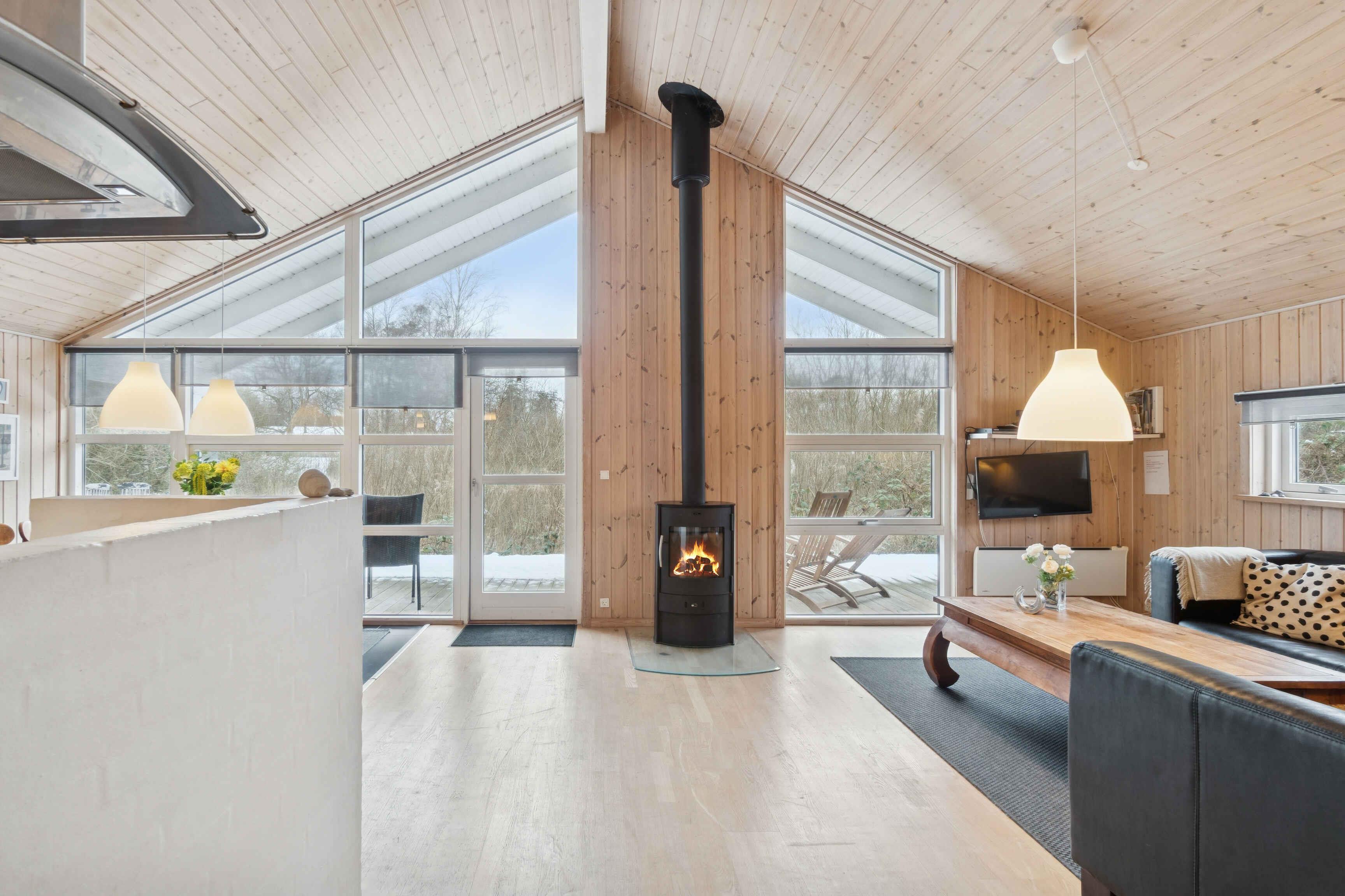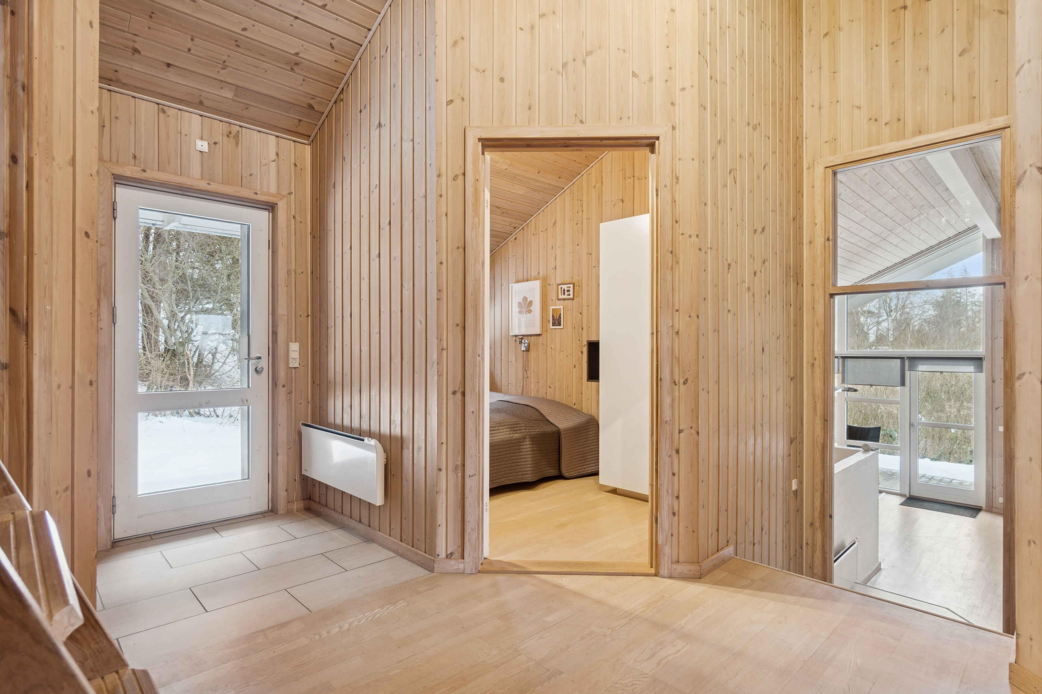 Dieses moderne Ferienhaus mit einer Fläche von 100 m² bietet einen stimmungsvollen Rahmen für Ihren Urlaub. Das Haus ist auf versetzten Ebenen gebaut, was ein gutes Raumgefühl und eine natürliche Basis für Aufenthalt und Erholung schafft. Die Einrichtung ist hell und funktional mit einer offenen Küche und einem Essbereich, der direkt mit dem Wohnzimmer verbunden ist. Von hier aus gelangt man auf eine überdachte Terrasse, auf der man vor Wind und Wetter geschützt sitzen kann. Das Haus verfügt über drei schöne Schlafzimmer sowie einen geräumigen Dachboden, wodurch es sich für zwei Familien oder mehrere Generationen eignet. Das Badezimmer ist schön eingerichtet und verfügt sowohl über einen Whirlpool als auch eine Sauna, in denen man sich nach den Erlebnissen des Tages entspannen kann. Das Ferienhaus liegt an einem sehr kleinen See, und die Natur kann direkt von der Terrasse aus erlebt werden. Hier herrscht Ruhe, es gibt viele Vögel und eine besondere Nähe zur Umgebung, die zum Entspannen und zum Leben im Freien einlädt. Die Region Helgenæs ist ein wunderschönes Naturgebiet mit hügeligem Gelände, kurvenreichen Straßen und Blick auf das Wasser von vielen Orten aus. Die reiche Tierwelt und die abwechslungsreiche Natur machen die Gegend ideal zum Wandern und Radfahren. Das Wasser ist etwa 450 Meter entfernt, und die Küste bietet gute Möglichkeiten zum Baden und Spazierengehen am Strand. Ein Ausflug zum Leuchtturm Sletterhage Fyr ist ebenfalls empfehlenswert und bietet einen schönen Blick auf das Meer. Die Gegend ist friedlich und frei von Alltagsstress, was auch bedeutet, dass die Mobilfunkabdeckung in ihrer Qualität schwanken kann. Dafür erhalten Sie einen Urlaub mit Fokus auf Natur, Zusammensein und Ruhe in einer wunderschönen Umgebung.