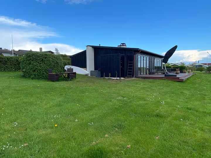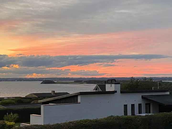 Modernes Ferienhaus mit 180° Meerblick, Terrasse, Pizzaofen und nur 350 m vom Strand in Knebel entfernt.