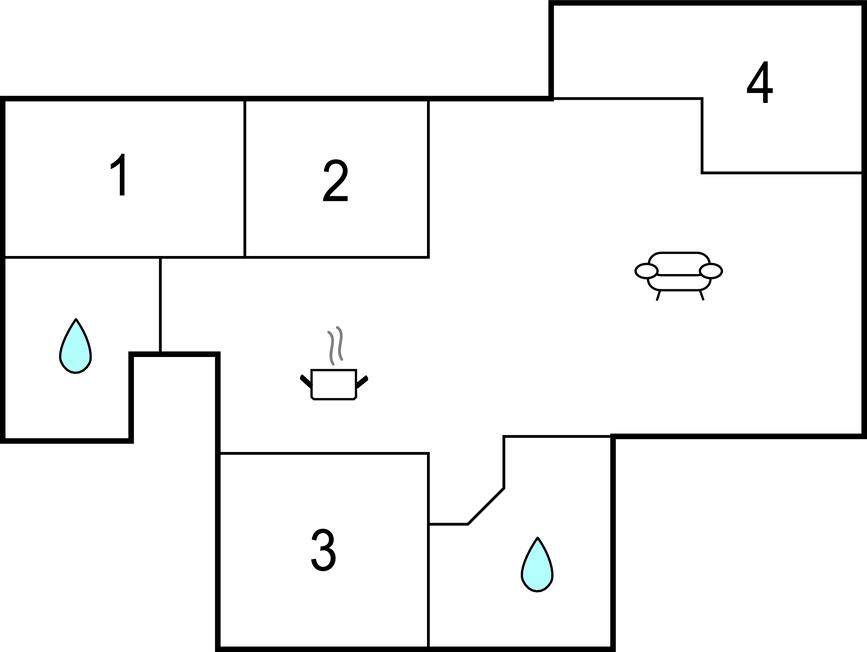 Badezimmer (nr. 1) - WC. Warmes und kaltes Wasser. Dusche