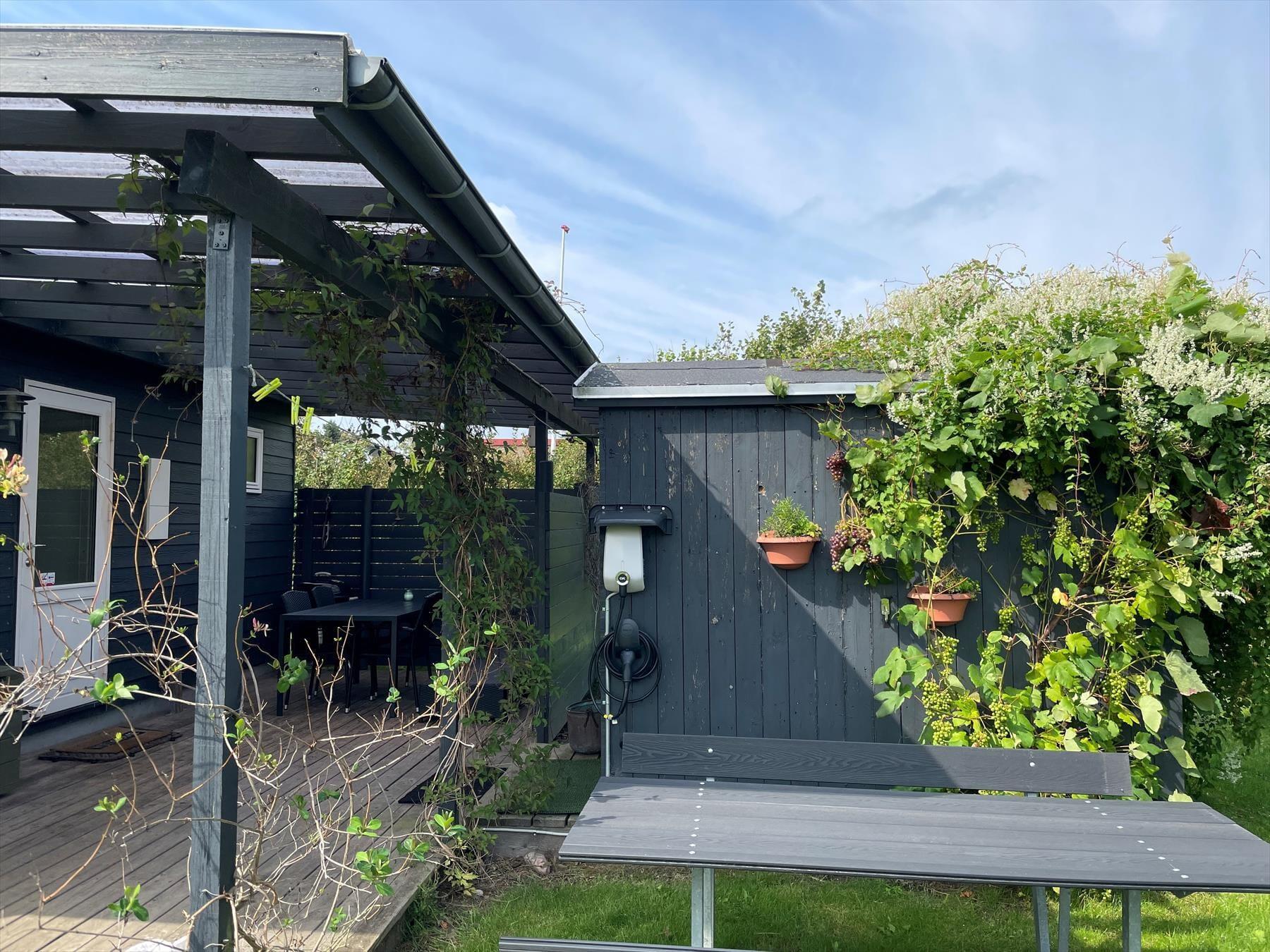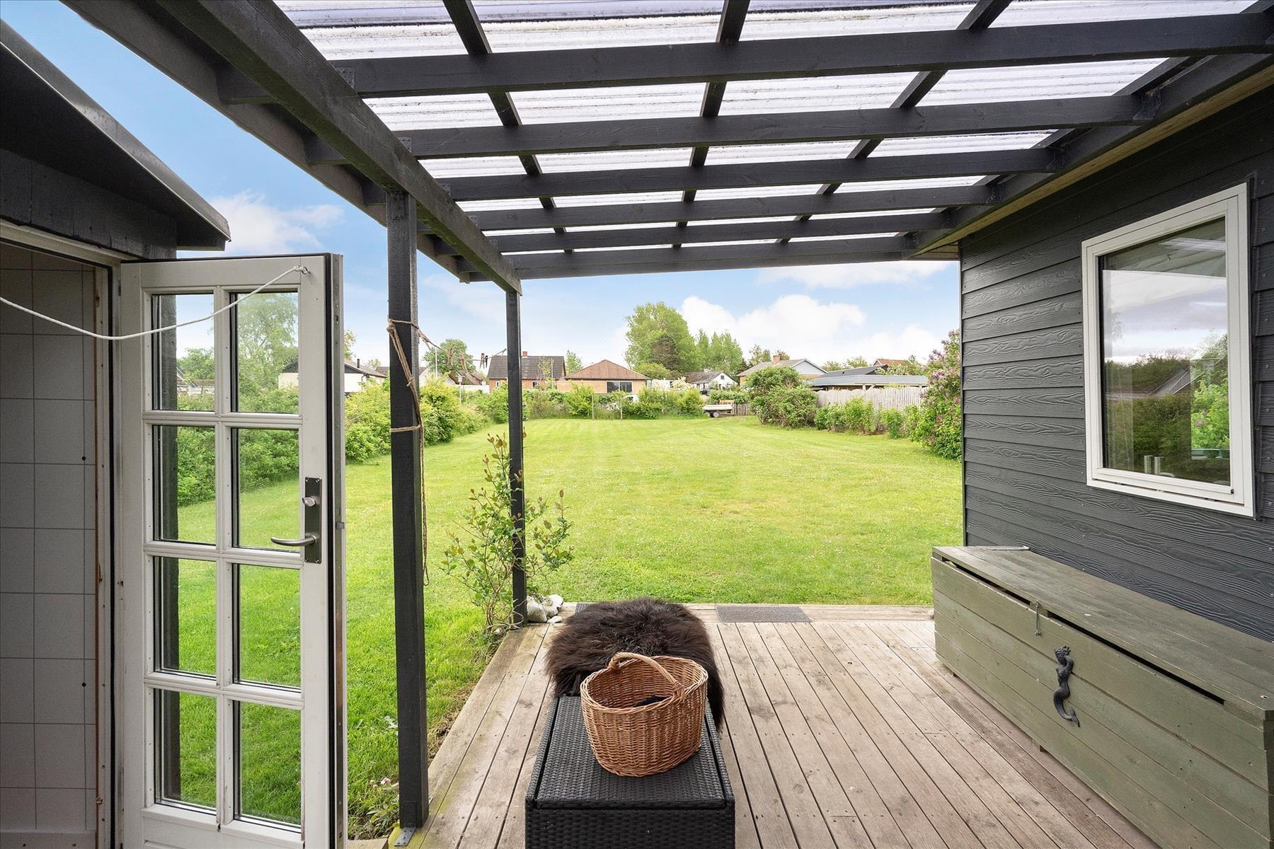 Vom Wohnzimmer aus gelangst du direkt auf eine überdachte Terrasse, wo du die Sommerabende mit frischer Luft, gemütlichen Abendessen oder ruhigen Momenten mit einem guten Buch genießen kannst. Der charmante, gepflegte Garten bietet viel Platz zum Spielen, für Ballspiele und Aktivitäten für Kinder und Erwachsene. Hier können Sie die Sonne genießen, während die Kinder sicher spielen, oder sich zu gemütlichen Momenten mit Familie und Freunden versammeln. Die Außenanlagen des Ferienhauses machen es einfach, Aktivität und Entspannung miteinander zu verbinden.