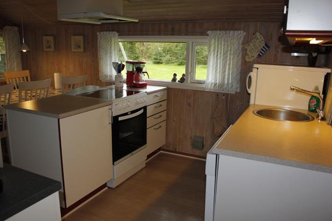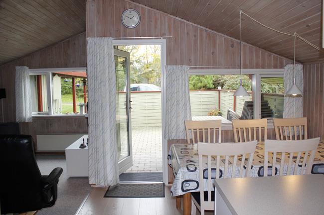 This is a lovely little holiday cottage that has a lot to offer. First of all it has a good location close to the shopping town, Fjerritslev, and it has the fantastic forest, which the house is in the fringe off. The house is placed on a large ground with grass, where you can have some ballgames, have water fights or do other funny activities with the family. Around the ground the trees are creating a cosy atmosphere. For the children there are swings. The house has two terraces, where one of them is with the front door and partly roofed. Here there are windbreakers on to sides, so that the family can sit undisturbed with the barbeque dinner. The other terrace has a door into the house through one of the bedrooms. This terrace is roofed and has clotheslines. Here you can sit in peace with a good book and enjoy the twittering from the birds in the background. An extra plus with the outside of the house is the carport.