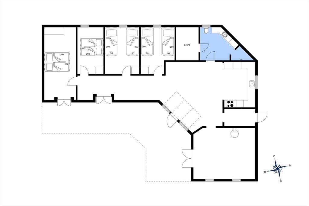 Das Ferienhaus empfängt Sie mit einer warmen und einladenden Atmosphäre. Es begrüßt Sie mit seinem Reetdach und der weiß gestrichenen Holzfassade im schönen, klassischen Stil. In diesem Haus werden Sie sich schnell zurecht finden und im Nu heimisch fühlen. Die hohen Decken tragen maßgeblich zum luftigen und hellen Ambiente bei. Das Ferienhaus verwöhnt Sie mit zwei Aufenthaltsräumen - mit einem gemütlichen Wohnraum mit einer Sofagruppe und einem Kaminofen sowie mit einem Esszimmer, das offen mit der Küche verbunden ist. Die Küche aus dem Jahr 2018 ist nicht sonderlich groß, dafür aber ausgesprochen schön und modern. Beachten Sie bitte, dass der Essbereich und der Wohnraum durch eine Treppenstufe voneinander abgetrennt sind. Die Schlafplätze verteilen sich auf vier Schlafzimmer. Ein geräumiges Badezimmer mit einer Dusche, einer Waschmaschine und einem Zugang zur hauseigenen Sauna ist selbstverständlich ebenfalls vorhanden.