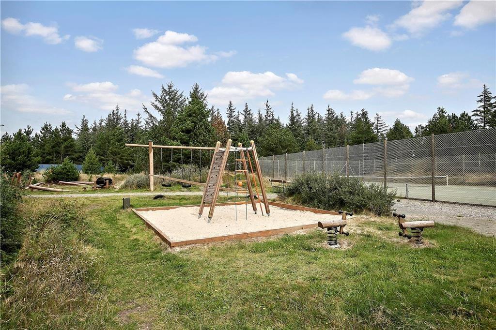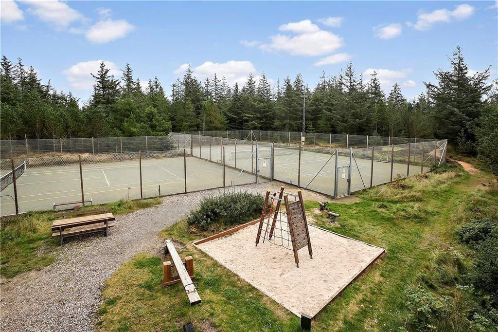 Das Ferienhaus befindet sich in der Umgebung des Kollerup Strandes. Innerhalb ganz kurzer Zeit erreichen Sie bereits die prachtvolle Nordsee. Das Gemeinschaftsareal, das Sie sich mit den Bewohnern der Nachbarhäuser teilen, umfasst unter anderem eine Bocciabahn, einen großen Spielplatz und gute Tennisplätze. Die Nutzung ist kostenlos. Im Sommer können Sie zudem in den Außenpool springen und sich darin wunderbar abkühlen. Die hügelige, üppige Natur bei Kollerup, Klim und Fosdalen ist ausgesprochen ansehnlich und reizvoll. Wenn Sie sich Ihre Laufschuhe anziehen oder auf Ihrem Mountainbike in die Pedalen treten, stehen Ihnen mit Sicherheit zahllose schöne Erlebnisse in der beeindruckend schönen Landschaft bevor.