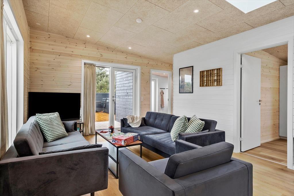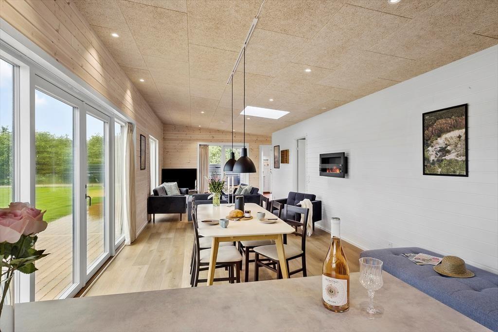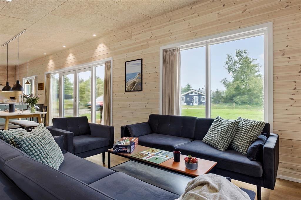 In diesem neu erbauten Ferienhaus werden Sie von hellen, offenen Räumen und einer Einrichtung empfangen, bei der auf jedes Detail geachtet wurde. Das Haus bietet Platz für bis zu neun Gäste, verteilt auf vier schöne Schlafzimmer und zwei Badezimmer – ideal für die große Familie oder auch für zwei Familien, die gemeinsam Urlaub machen möchten. Die moderne Luft-Wasser-Wärmepumpe und Fußbodenheizung schaffen das ganze Jahr über ein angenehmes Raumklima. Im großen Wohnbereich versammeln Sie sich zu gemeinsamen Mahlzeiten und langen Abenden, genießen das gemütliche Ambiente des Bio-Kamins oder entspannen bei einem Film am TV.