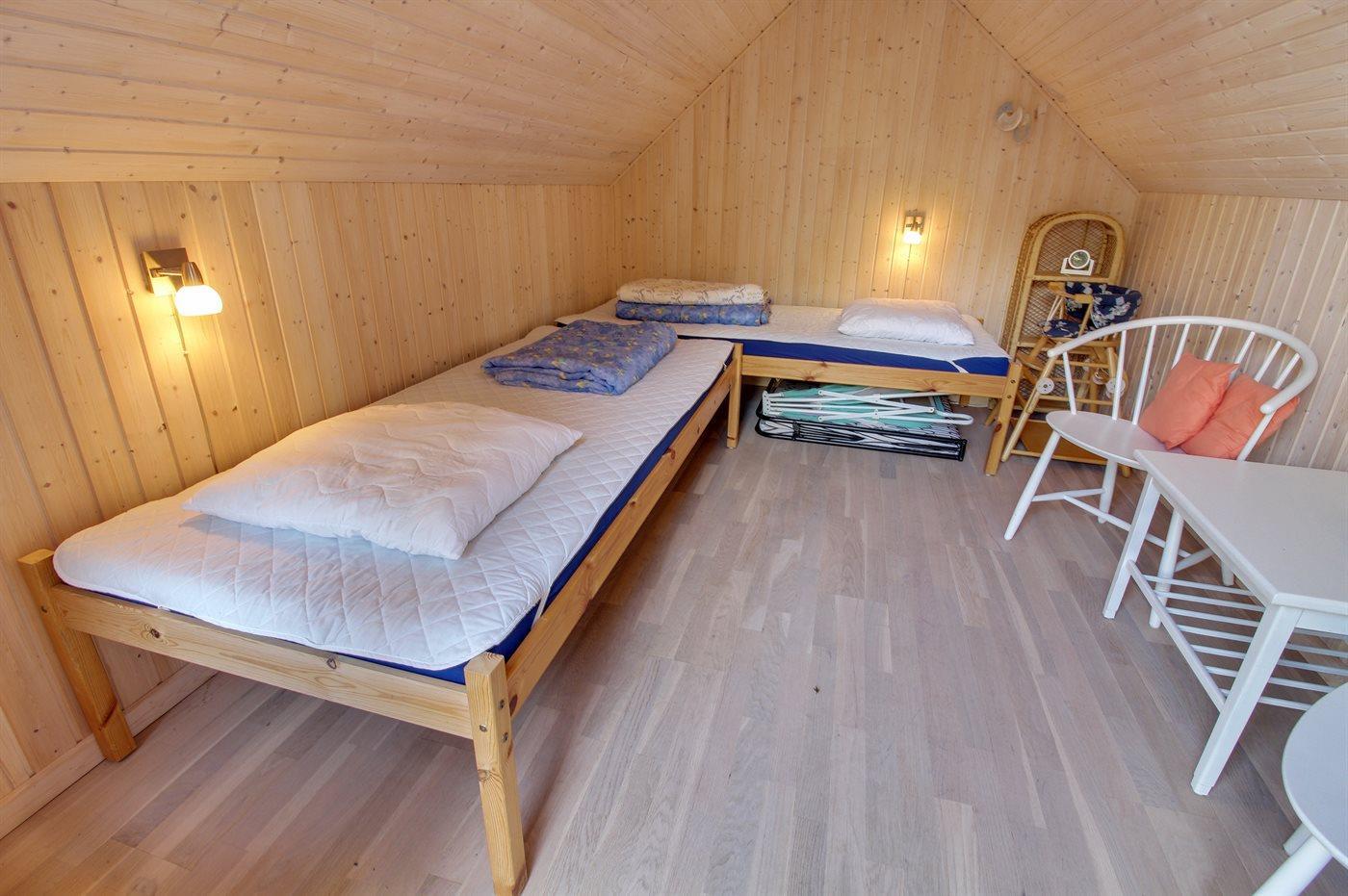 Die Schlafplätze verteilen sich auf 2 Schlafräume. 4 Schlafplätze in Doppelbetten. 2 Schlafplätze in Einzelbetten. 2 von diesen Schlafplätzen befinden sich im Gästehaus. Ferner steht ein Kinderbett zur Verfügung.