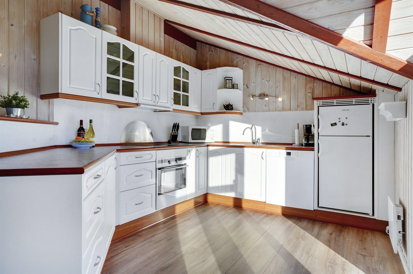 Die Küche ist mit Kühlschrank ausgestattet. Außerdem gibt es 4 Induktions-Kochzonen, Umluftofen, Mikrowelle sowie Geschirrspüler.
