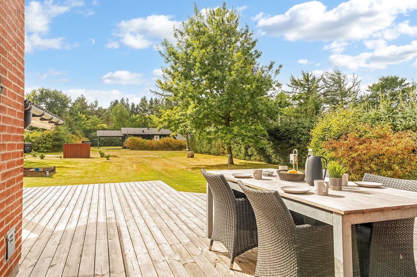 Charmantes Ferienhaus mit Gästehaus, großem Grundstück, Whirlpool und Elektroauto-Ladestation in Fjerritslev, Dänemark.