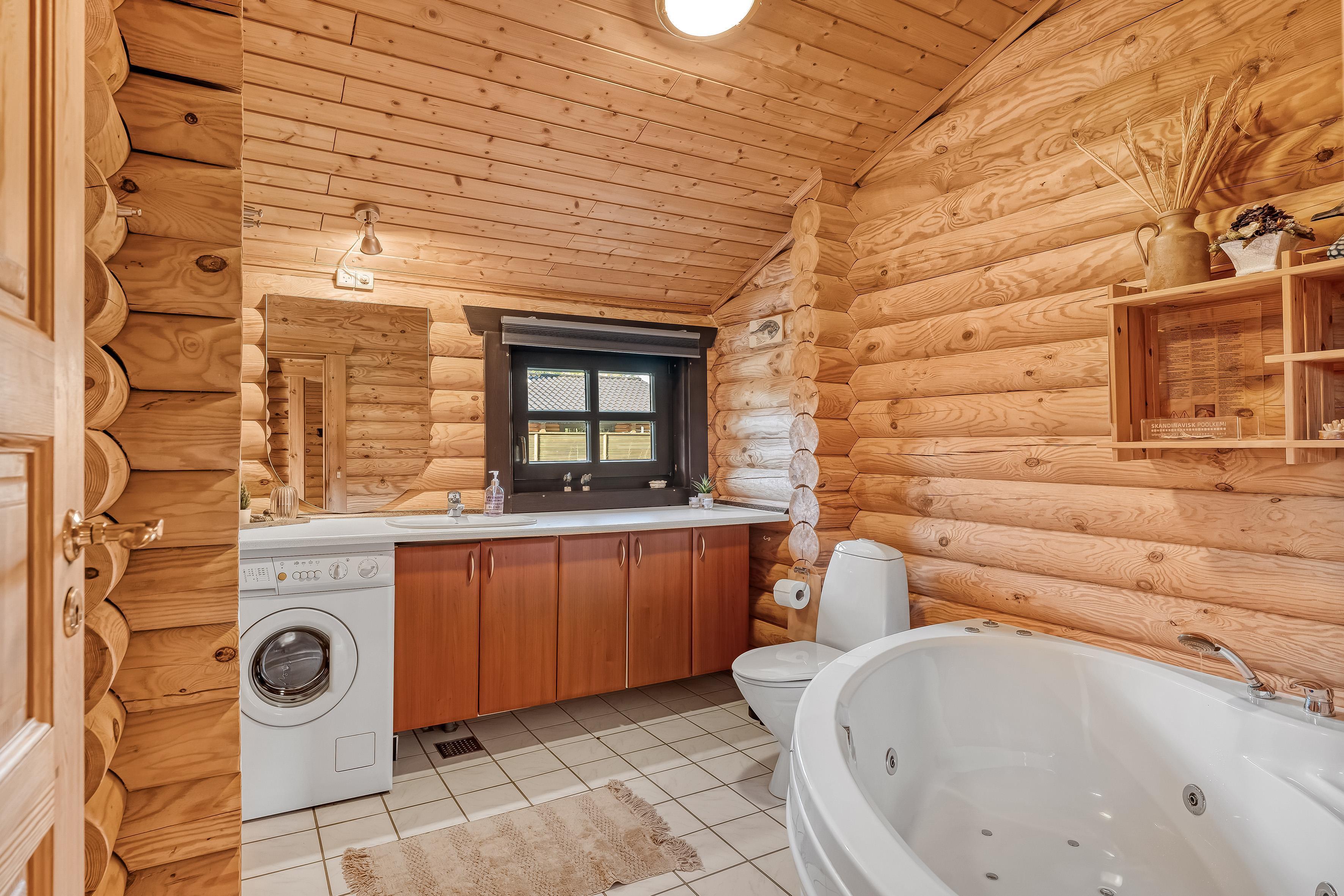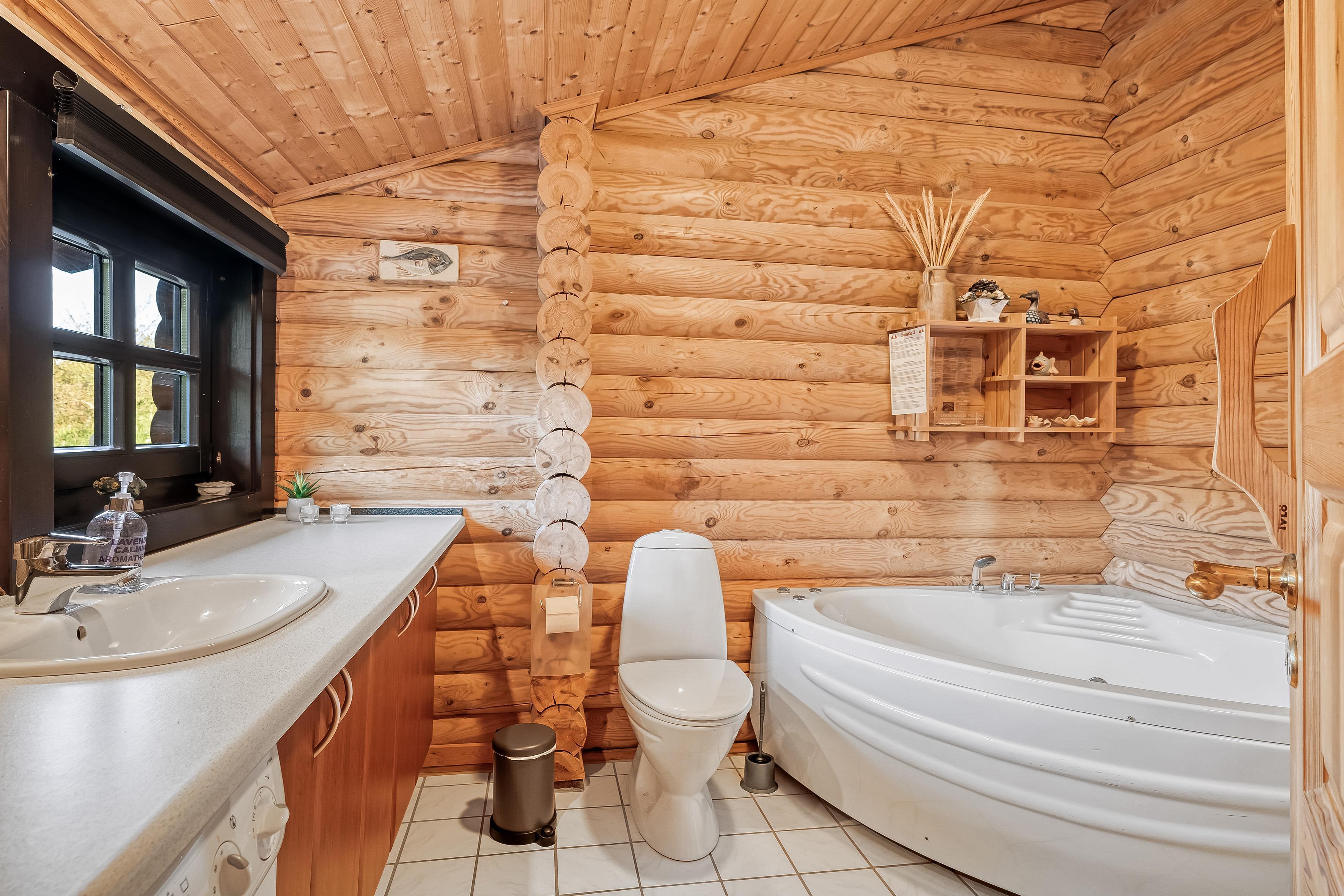 Eines der Badezimmer ist mit Fußbodenheizung, Toilette und Dusche ausgestattet und sorgt so für ein angenehmes Wohngefühl. Es gibt außerdem eine zusätzliche Toilette, praktisch, wenn die ganze Familie zusammen ist. Wer sich entspannen und verwöhnen lassen möchte, findet im Innen-Whirlpool für zwei Personen sowie in der Sauna Entspannung nach einem langen Tag.