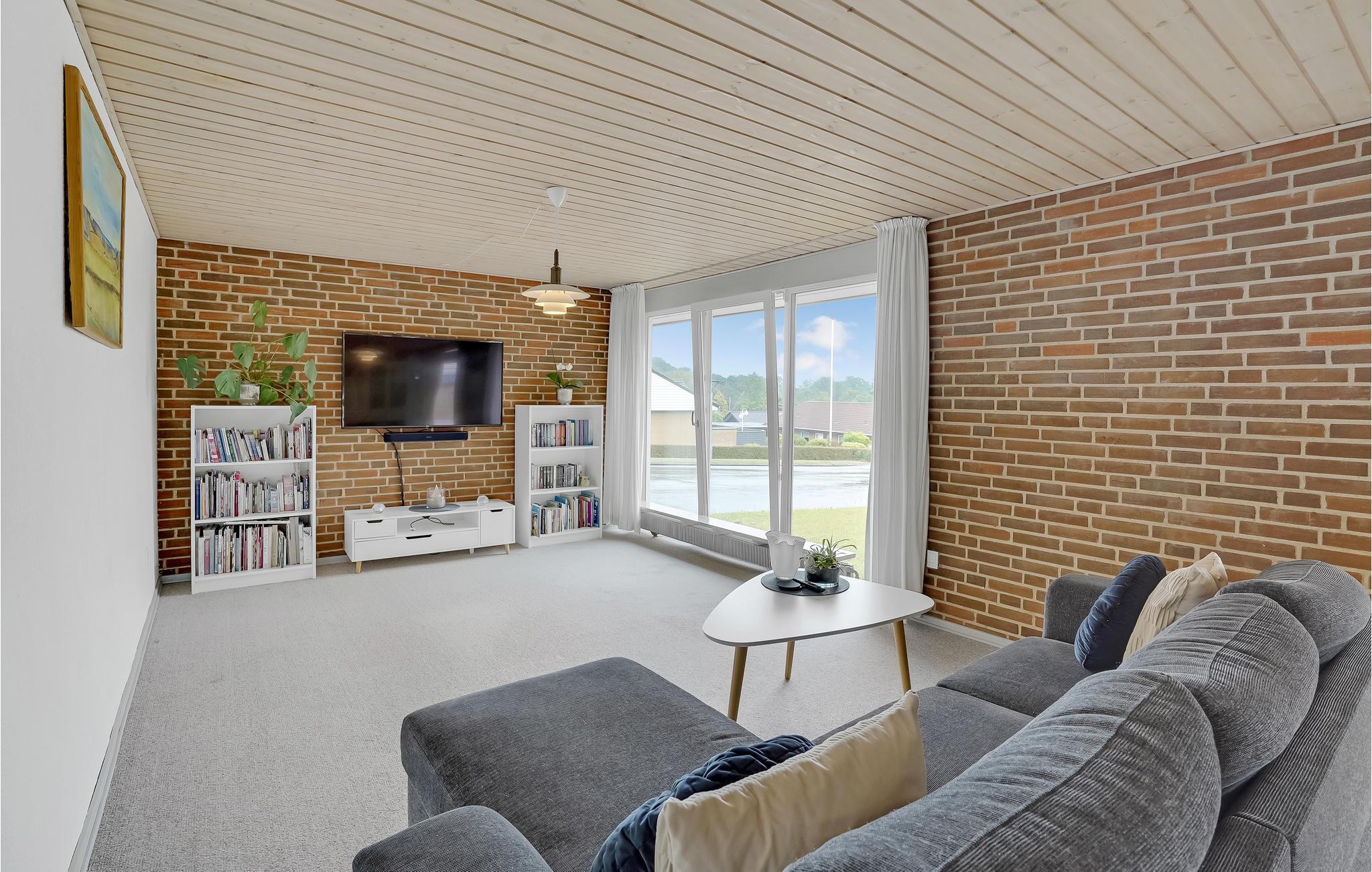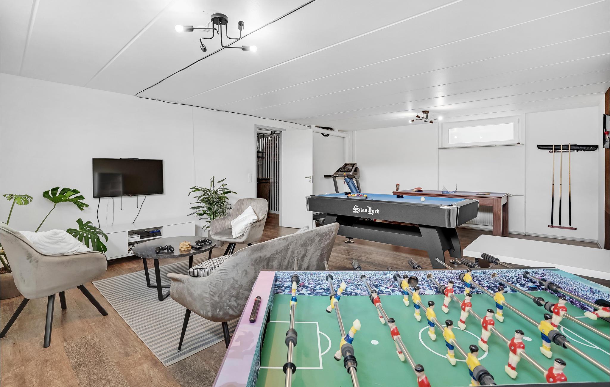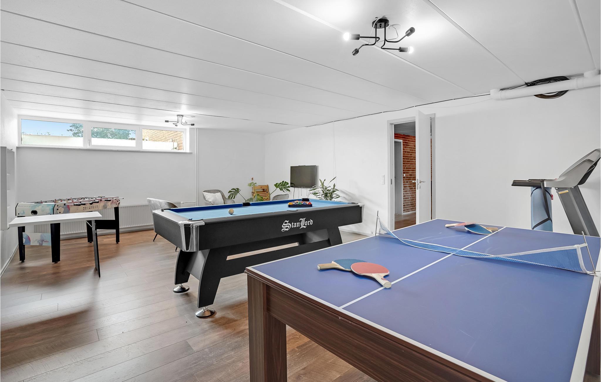 Ein familiäres Ferienhaus nah dem Kollund Strand mit Pooltisch und einladender Atmosphäre.