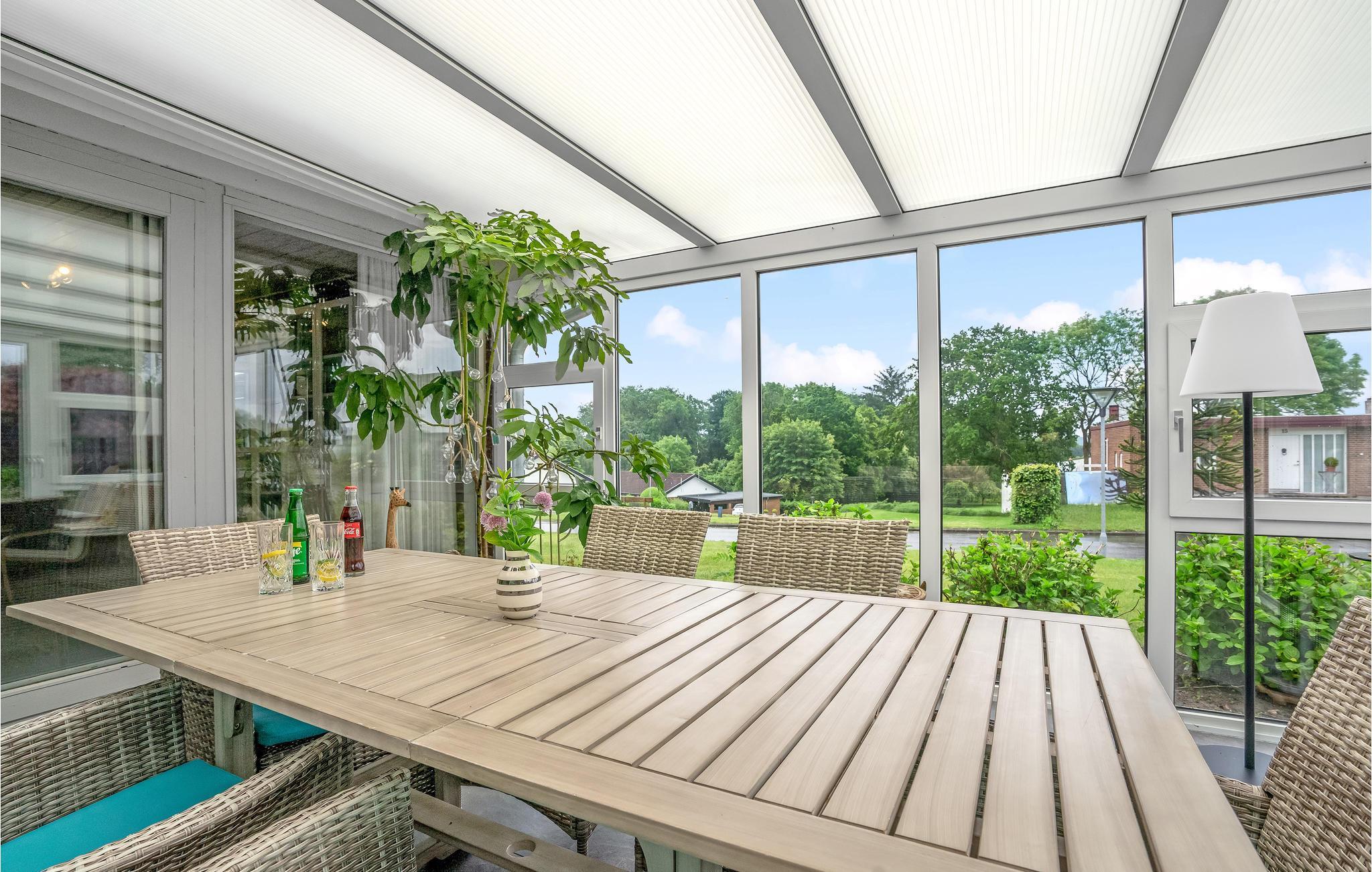 Dieses Haus bietet Ihnen das Design aus Ziegeln, gemütlichen Möbeln und heimeligen Dekorationen. Hier kommen Sie an einen Ort zum Wohlfühlen und Genießen. Denn Im Innenraum erwartet Sie vor allem Geräumigkeit und Komfort, der sich durch das ganze Haus zieht. Einerseits haben Sie einen offenen privaten Garten und einen Wintergarten. Zweiteres lädt zum Verweilen zu jeder Jahreszeit ein. Dort können Sie gemütlich die Tageslichtstimmung nutzen, um Ihren mitgebrachten Roman zu lesen oder gemeinsam mit der Familie köstliche Mahlzeiten zu genießen.