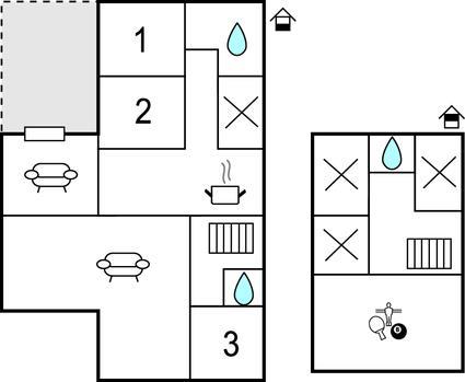 Badezimmer (nr. 1) - WC. Warmes und kaltes Wasser. Dusche
