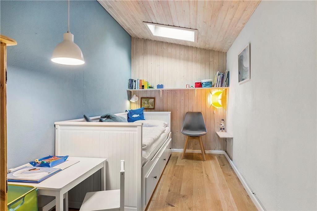 Die letzte Renovierung fand im Jahr 2019 statt, so dass sich alle Räume gepflegt und einladend präsentieren – auch das Badezimmer und die beiden Schlafzimmer, von denen ein Schlafzimmer über ein Doppelbett und das andere über ein Einzelbett verfügt, welches zu einem Doppelbett ausgezogen werden kann. Ein großer Teil der Quadratmeter ist dem schönen Wohnbereich des Ferienhauses gewidmet, der aus einer offenen Küche und einem Wohnzimmer besteht. An beiden Enden des Raumes sorgen die großen Fensterabschnitte für guten Lichteinfall und Blick auf den Garten, während der Holzofen und die Wärmepumpe dafür sorgen, dass du es auch an kühlen Abenden warm hast.