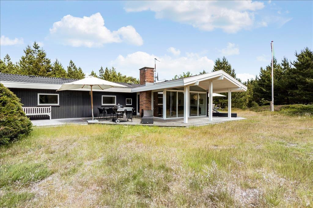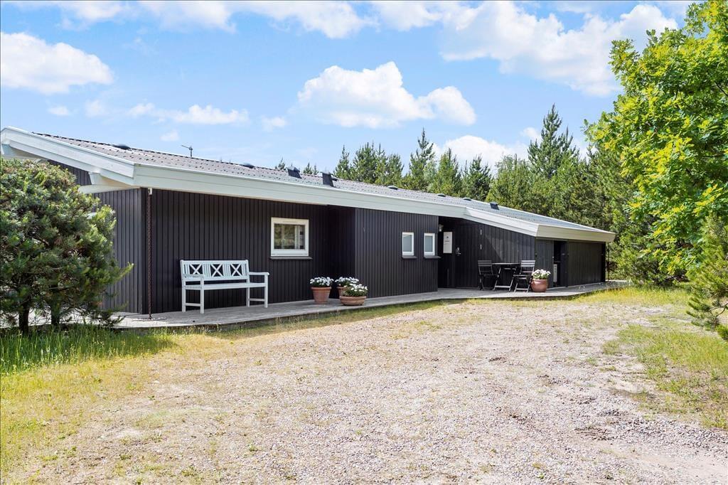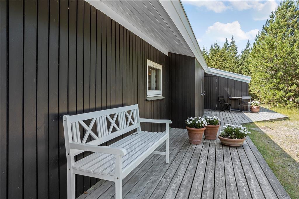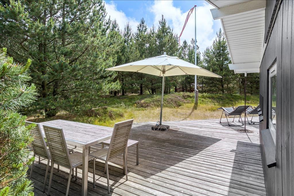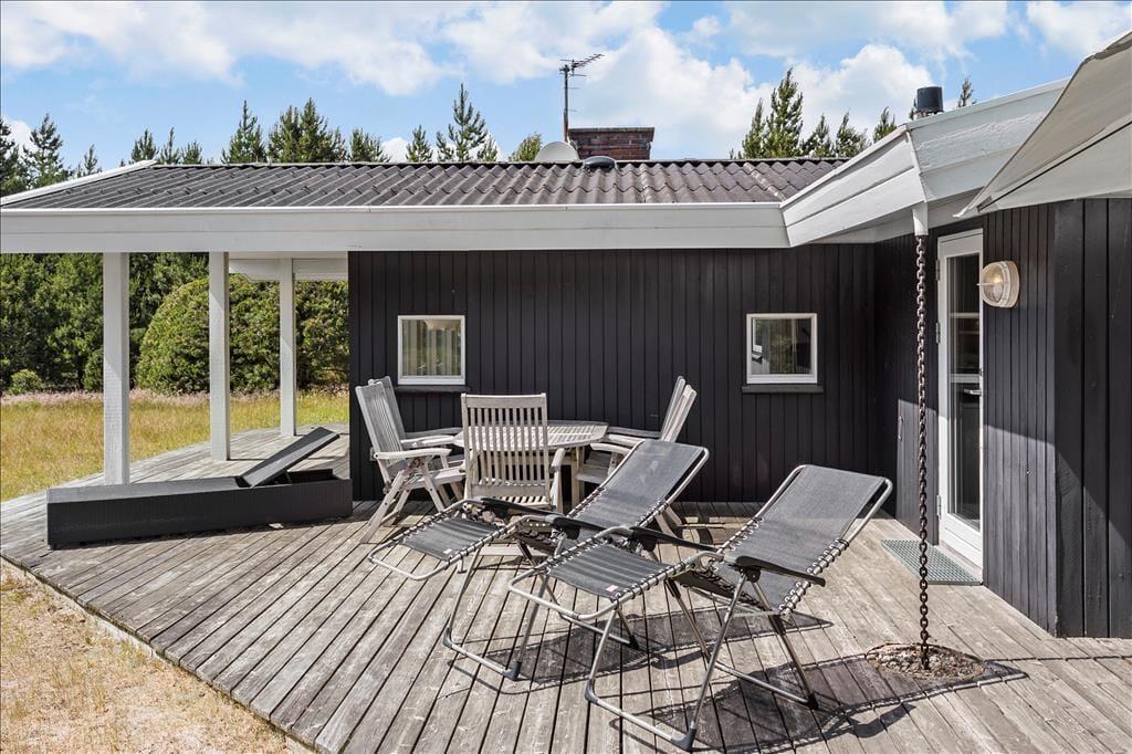 Das Ferienhaus liegt mitten auf einem 2500 m² großen Naturgrundstück, das von Kiefern abgeschirmt ist. Um das Haus herum schmiegt sich eine schöne Holzterrasse, die sowohl einen überdachten als auch mehrere offene Bereiche hat, sodass Sie unabhängig von der Tageszeit immer einen perfekten Aufenthaltsort finden.