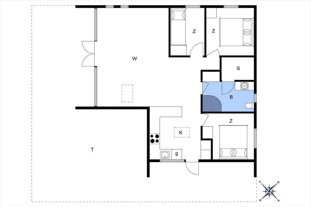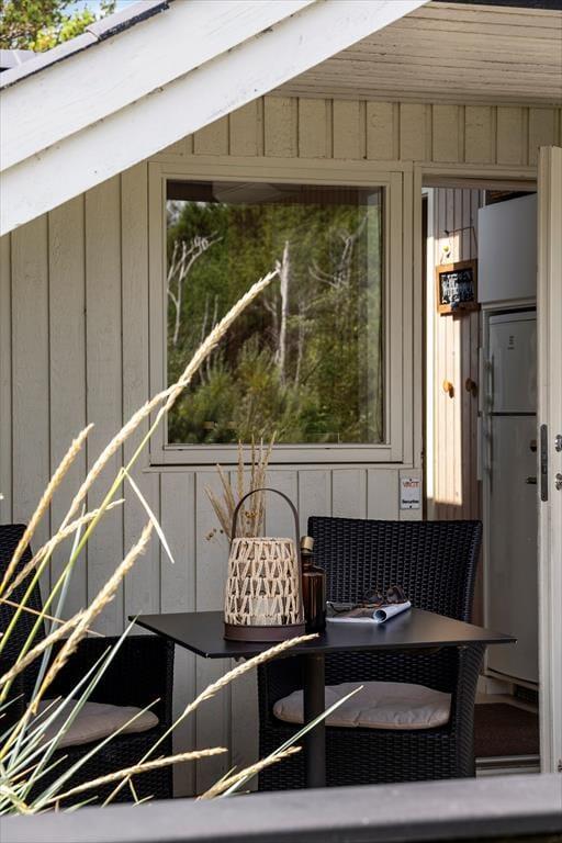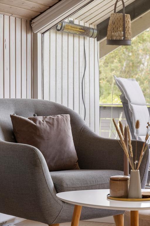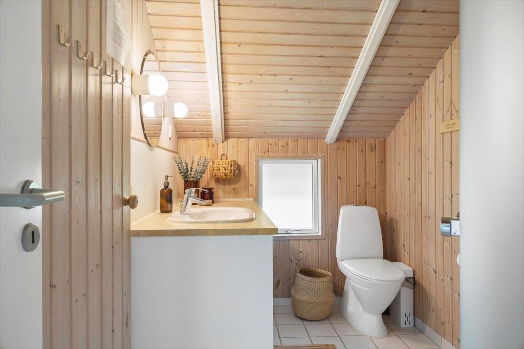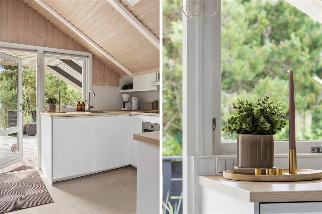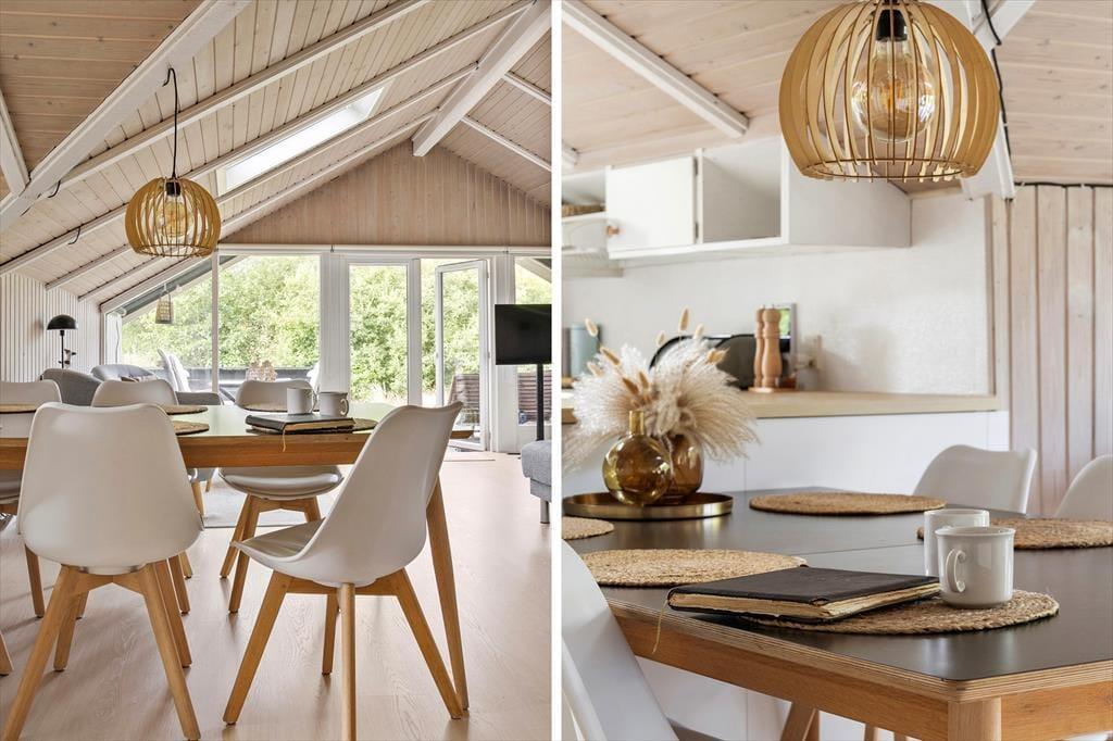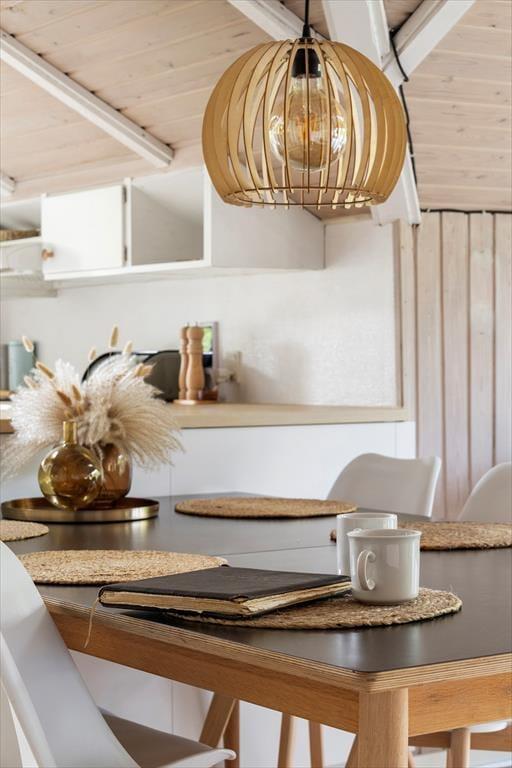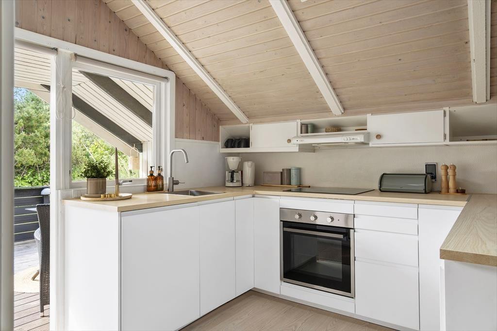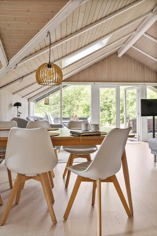 Wenn das Wetter mal nicht so richtig mitspielt, ist das auch kein Problem, denn dieses Ferienhaus ist sowohl gepflegt als auch gut ausgestattet. Im Aufenthaltsbereich werden Sie bestimmt viel Zeit verbringen: Helle Holzleisten an den Wänden und eine schräge, hohe Decke wirken einladend und in einer Ecke steht ein Brennofen für die kalten Tage bereit. Der Raum ist groß, sodass neben bequemen Sitzmöbeln und einem Esstisch viel Platz für eine gut ausgestattete Küchenabteilung vorhanden ist, in der Sie es sich mit Kochprojekten gemütlich machen können – sowohl mit gesunden als auch mit den etwas sündhafteren. Die Raumaufteilung beinhaltet außerdem drei gute Schlafzimmer und ein Badezimmer mit Sauna. Letzteres ist nach einem Spaziergang bei windigem Wetter absolut perfekt, wenn Sie sich wieder so richtig durchwärmen möchten.