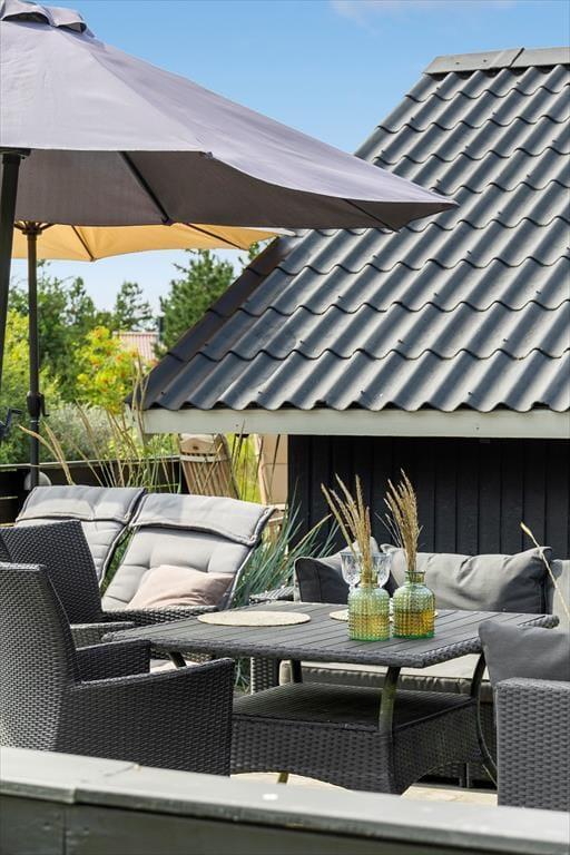 Wenn Sie in diesem schönen Ferienhaus Urlaub machen, können Sie die Daumen drücken, dass der Wettergott Ihnen wohlgesonnen ist. Hier in Kongsmark ist die Umgebung nämlich besonders schön und auch mit einer großen Terrasse zum Haus