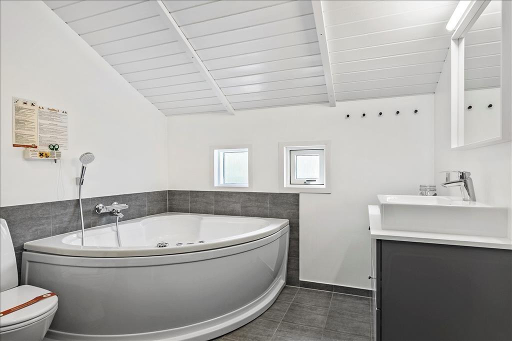 Beim Bau dieses Ferienhauses im Jahr 2005 wurde viel Wert darauf gelegt, ein helles und einladendes Urlaubsdomizil mit guter Aufteilung und gemütlicher Atmosphäre zu schaffen. Das ist rundum gelungen, denn jeder einzelne der 111 Quadratmeter dieses Hauses ist gut ausgenutzt und komfortabel eingerichtet, så du dich schnell wie zu Hause fühlen kannst. Wenn es draußen kühl ist, kannst du den Brennofen anheizen, so dass die Wärme sich im Aufenthaltsraum ausbreiten kann, der sich aus Wohnbereich und Küche zusammensetzt. Eine weitere Möglichkeit, sich aufzuwärmen, besteht darin, einen entspannten Wellness-Abend in einem der beiden Badezimmer des Hauses zu verbringen, das wunderschön eingerichtet ist und sowohl über einen Whirlpool als auch über eine Sauna verfügt. Ausruhen kannst du dich auch in den vier Schlafzimmern des Ferienhauses, die alle mit einem Doppelbett mit hochwertigen Matratzen ausgestattet sind.