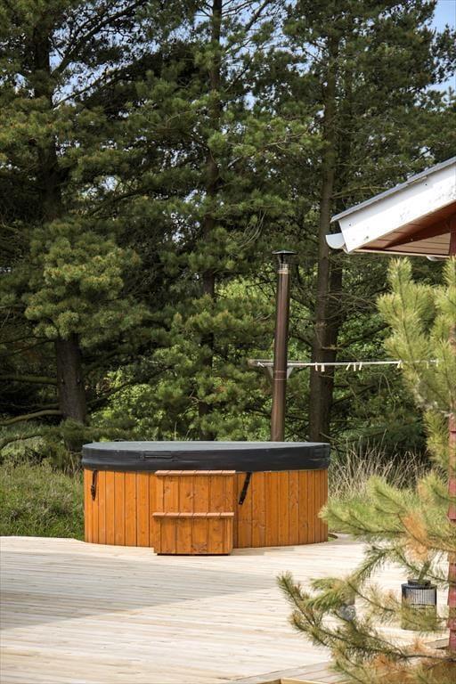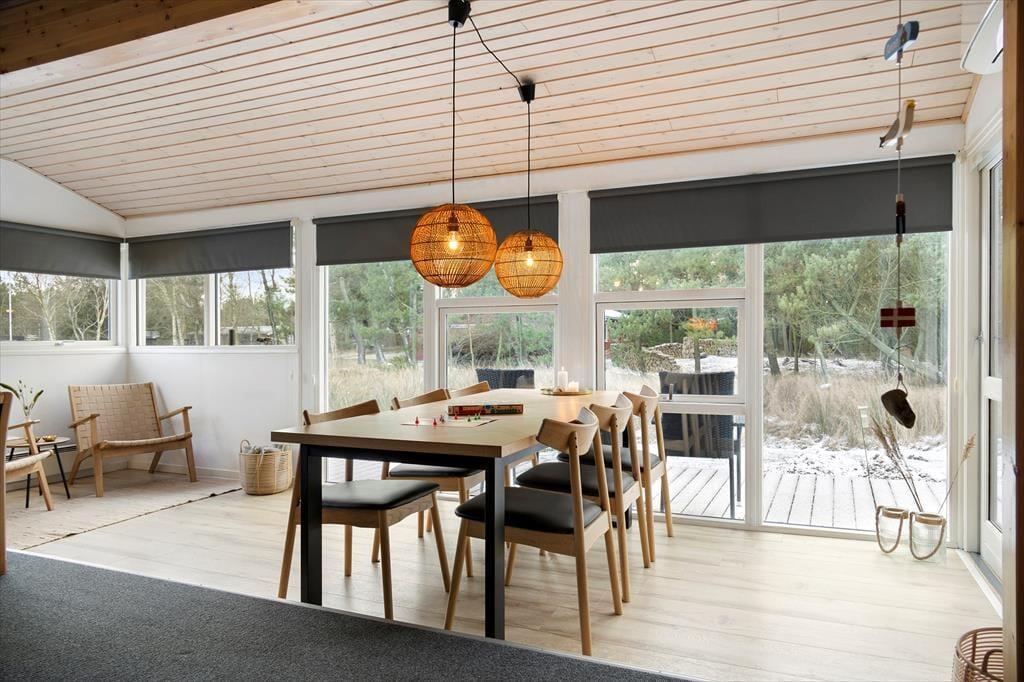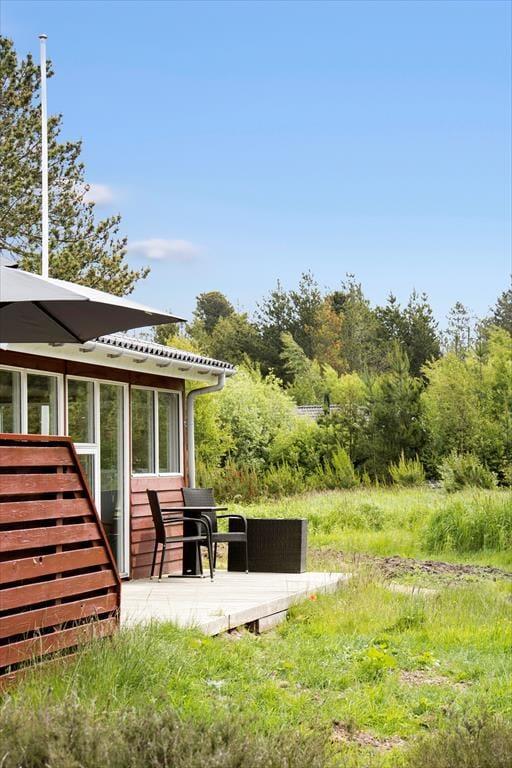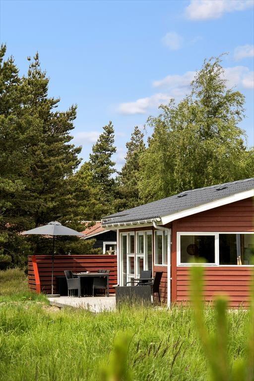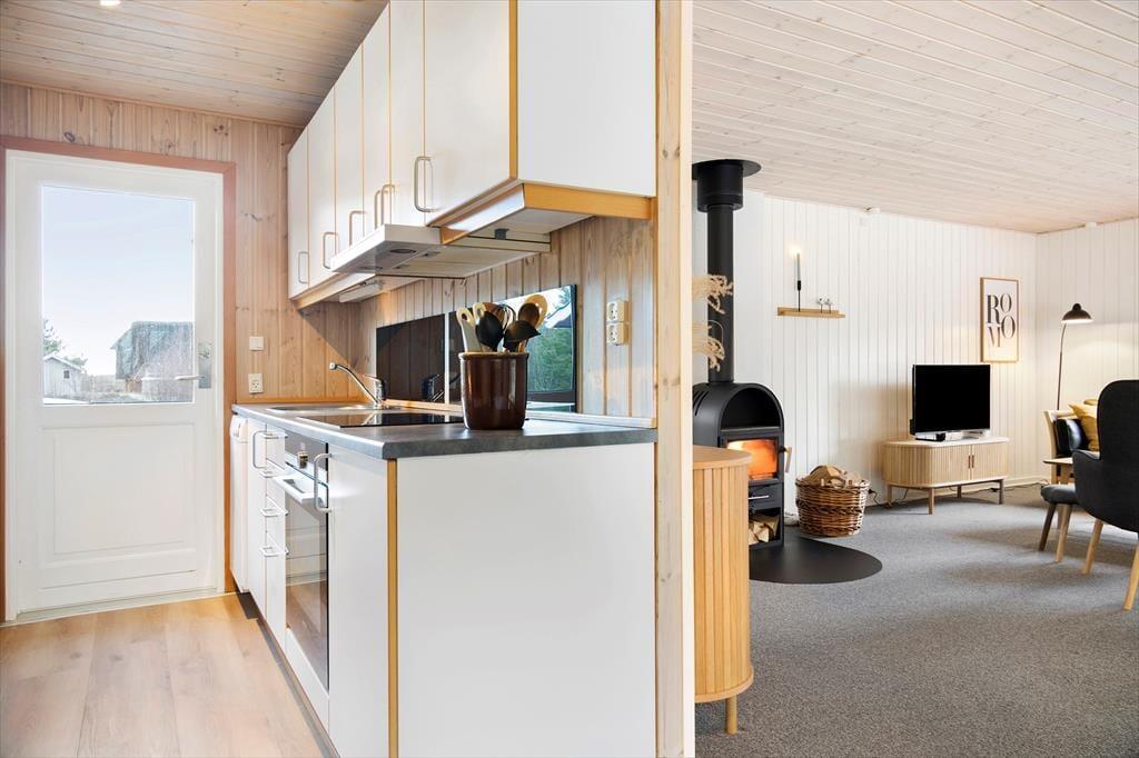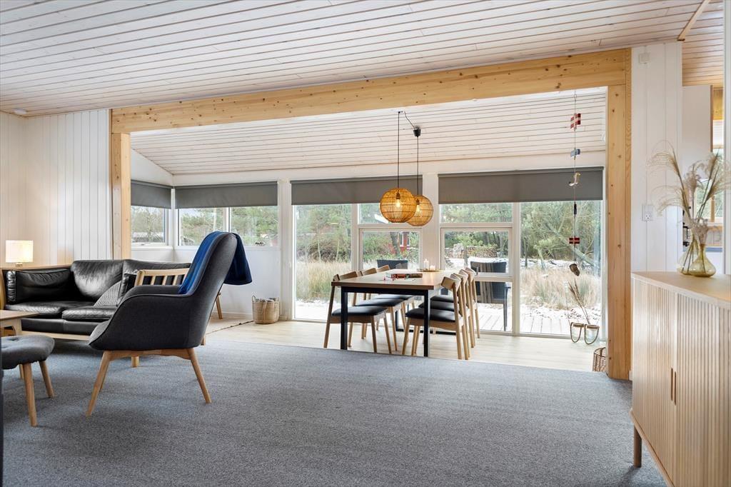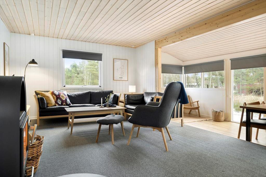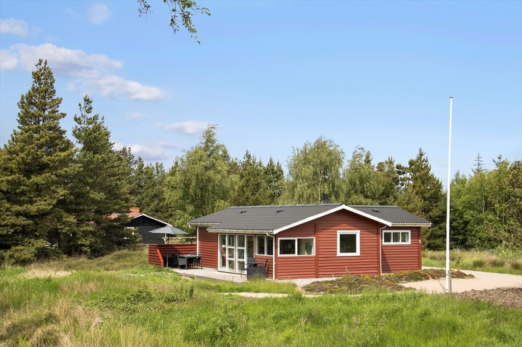 Draußen erstreckt sich das schöne Naturgrundstück und schafft die perfekten Voraussetzungen für Aufenthalte im Freien und Spielmöglichkeiten. Eine geräumige Terrasse lädt dazu ein, sich zu sonnen oder den morgendlichen Kaffee bei der frischen Meeresluft zu genießen. Hier kannst du die langen Sommerabende mit Grillen und gemeinsamer Zeit verbringen, während die Kinder sicher auf dem Gras spielen. Nur eine kurze Autofahrt vom Haus entfernt liegt der Lakolk Strand, der mit seinem weißen und weichen Sand perfekt zum Sonnenbaden und Spielen ist. Im Lakolk Einkaufszentrum findest du Cafés und Restaurants, in denen du dich mit köstlichen Mahlzeiten und einzigartigen Einkäufen verwöhnen lassen kannst. Die Umgebung bietet zudem fantastische Möglichkeiten, die Natur zu erleben, mit kurzer Entfernung zur Kirkeby Plantage, die einen eingezäunten Hundewald und einen Waldspielplatz für die kleinen Abenteurer bietet.