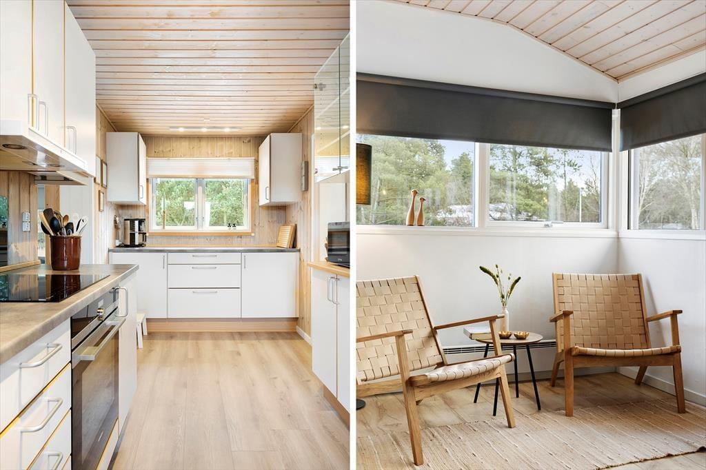Das Ferienhaus präsentiert sich mit einer einladenden Atmosphäre, die dich sofort willkommen heißt. Innen findest du einen hellen und offenen Raum, in dem die Möbel ausgewählt wurden, um Gemütlichkeit zu schaffen, die zum Entspannen einlädt. Große Fenster lassen die Sonnenstrahlen herein und bieten einen Blick auf das schöne Naturgrundstück, wo du gelegentlich vielleicht ein Reh oder einen Hasen sehen kannst. Das Wohnzimmer wird bestimmt ein natürlicher Treffpunkt für die Familie, wo Brettspiele gespielt oder gemütliche Abende vor dem Kamin verbracht werden können, während der Regen sanft gegen die Fensterscheiben trommelt. Die Küche ist praktisch eingerichtet, sodass das Kochen Freude bereitet, sei es für eine schnelle Mahlzeit oder ein festliches Abendessen. Mit mehreren Schlafzimmern ist Platz für alle, sodass du nach einem aktiven Tag gut schlafen kannst.