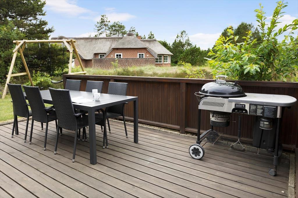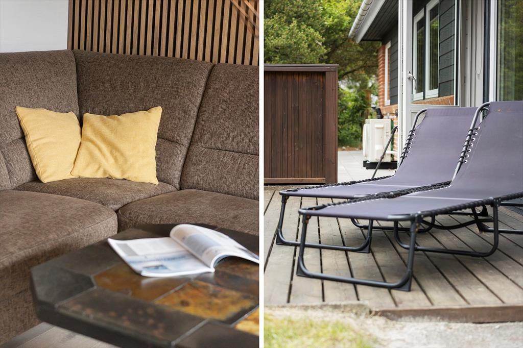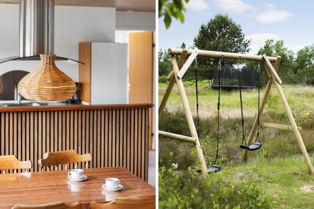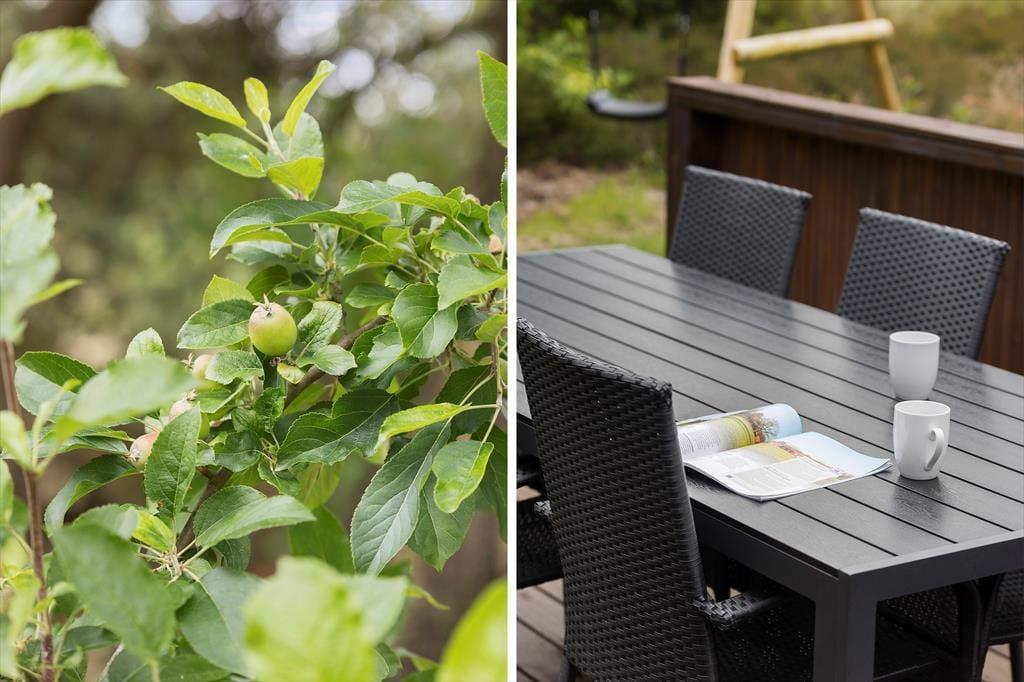 Mit seinen 3723 m² ist das Naturgrundstück angenehm groß und die Umgebung wunderbar friedlich, sodass es ein herrlicher Ort ist, um sich zu entspannen und zur Ruhe zu kommen. Wenn die Kinder nicht stillsitzen können, gibt es einen Sandkasten und Schaukeln zum Spielen, und wenn ihr Garten- oder Ballspiele spielen möchtet, ist das auch möglich. Ein Nickerchen auf der Liege oder eine frisch zubereitete Mahlzeit vom Grill kann ebenfalls Teil des Sommerlebens im Freien sein, denn die Terrasse ist mit allem ausgestattet, was das Urlaubsleben versüßen kann.