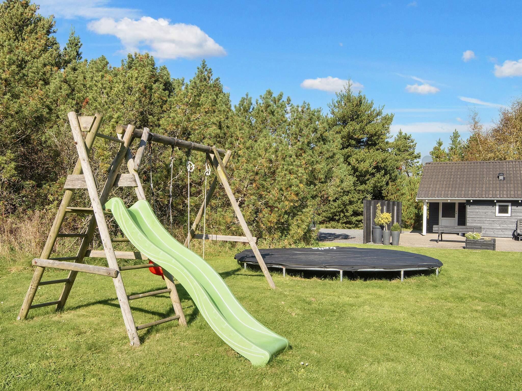 Draußen auf dem großen Grundstück, das das Ferienhaus umgibt, wurde mit Schaukeln, Sandkasten und Trampolin (Nutzung nur auf eigenes Risiko) auch an die kleinsten Gäste gedacht.
