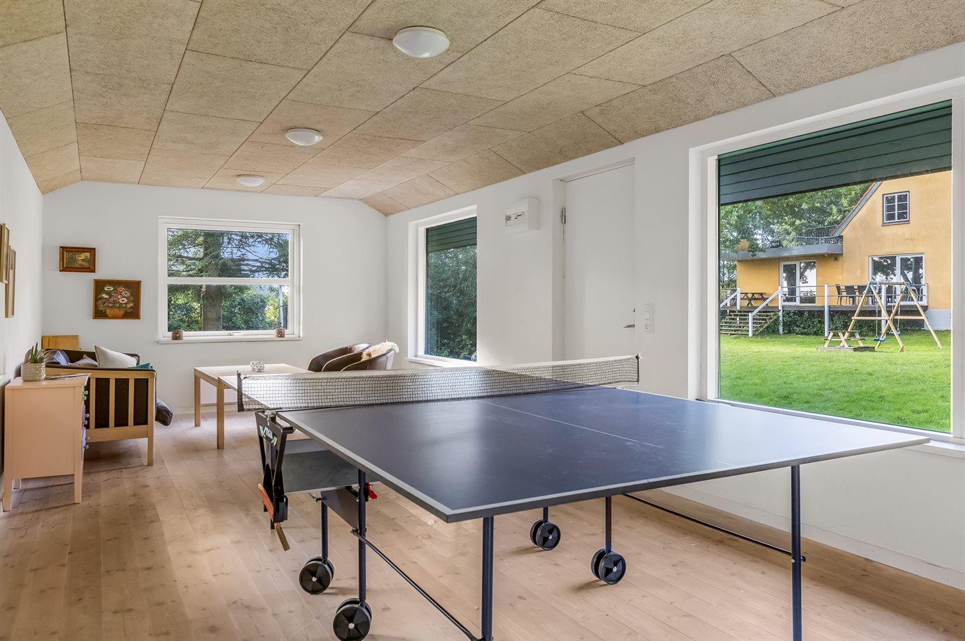 Am Ende des Gartens liegt ein großes Gästehaus, das mit Aktivitätsraum mit Tischtennis und Bobspiel eingerichtet ist. Hier befindet sich außerdem ein zusätzliches Schlafzimmer mit Platz für zwei Personen.