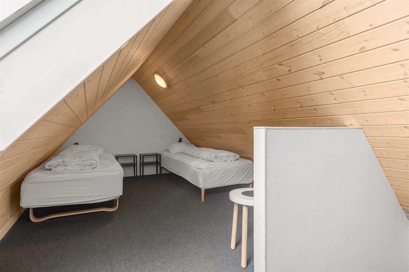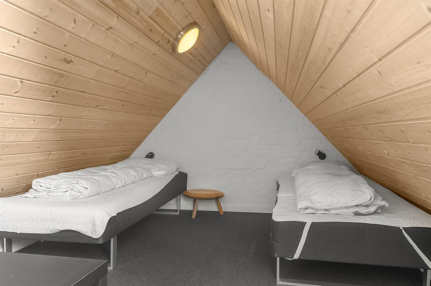 Die Schlafplätze verteilen sich auf 3 Schlafräume. 8 Schlafplätze in Doppelbetten. 2 Schlafplätze in Einzelbetten. 2 Schlafplätze in einem Etagenbett. 2 von diesen Schlafplätzen befinden sich im Gästehaus und 4 im offenen Obergeschoss. Ferner steht ein Kinderbett zur Verfügung.