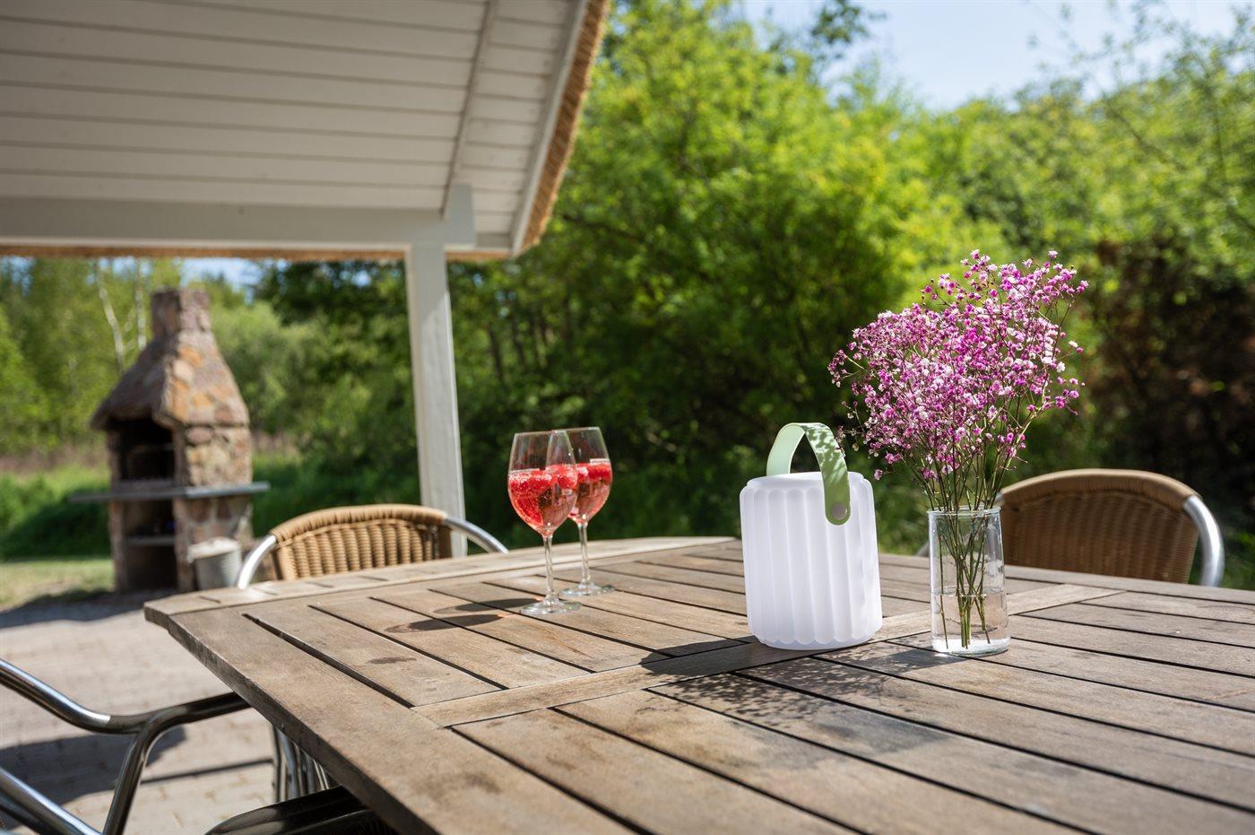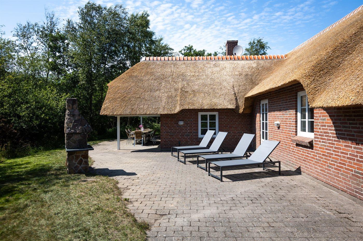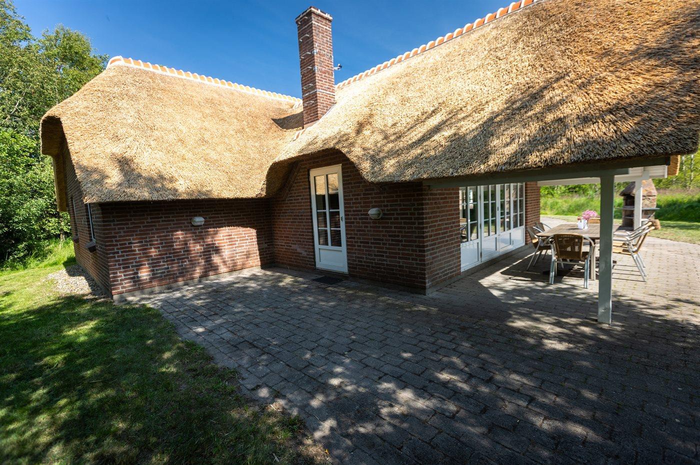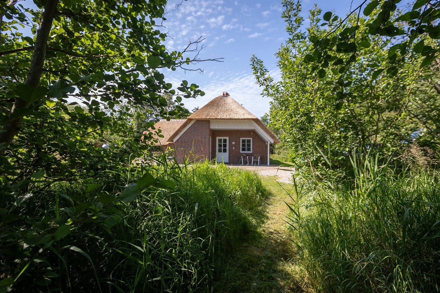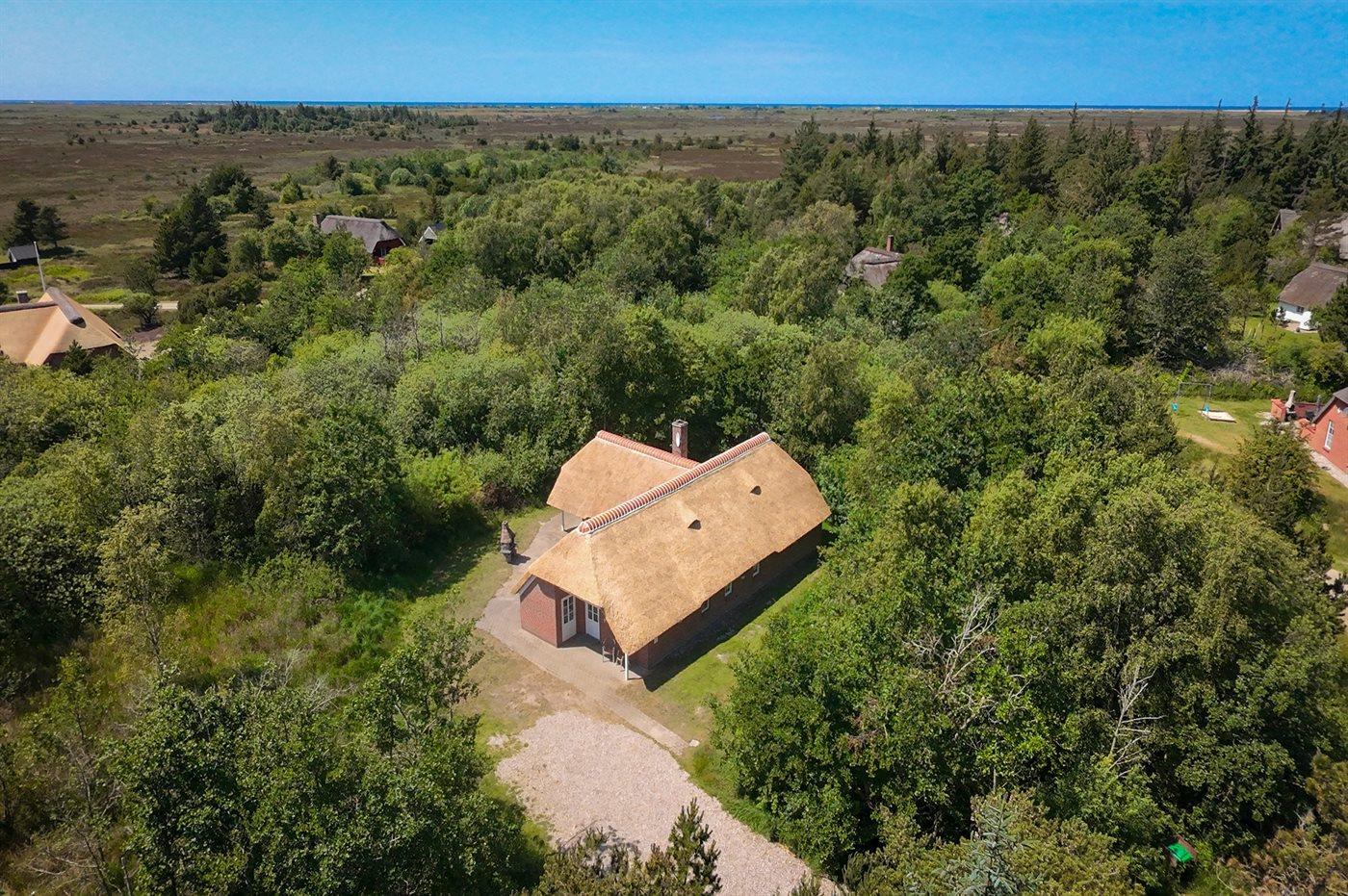 Das Ferienhaus befindet sich auf einem 2.500 m² großen Naturgrundstück. Es sind 4.000 m bis zum Meer und 900 m bis zum Wattenmeer. Das nächste Geschäft liegt in einer Entfernung von 2.800 m. Zum Ferienhaus gehört eine offene Terrasse, außerdem gibt es eine überdachte Terrasse. Eine Schaukel und ein Grill stehen zur Verfügung. Parken ist direkt am Haus möglich.