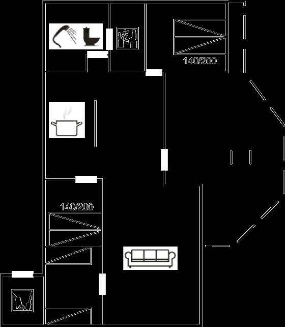 Die Schlafplätze verteilen sich auf 3 Schlafräume. 4 Schlafplätze in Doppelbetten. 2 Schlafplätze in Einzelbetten.