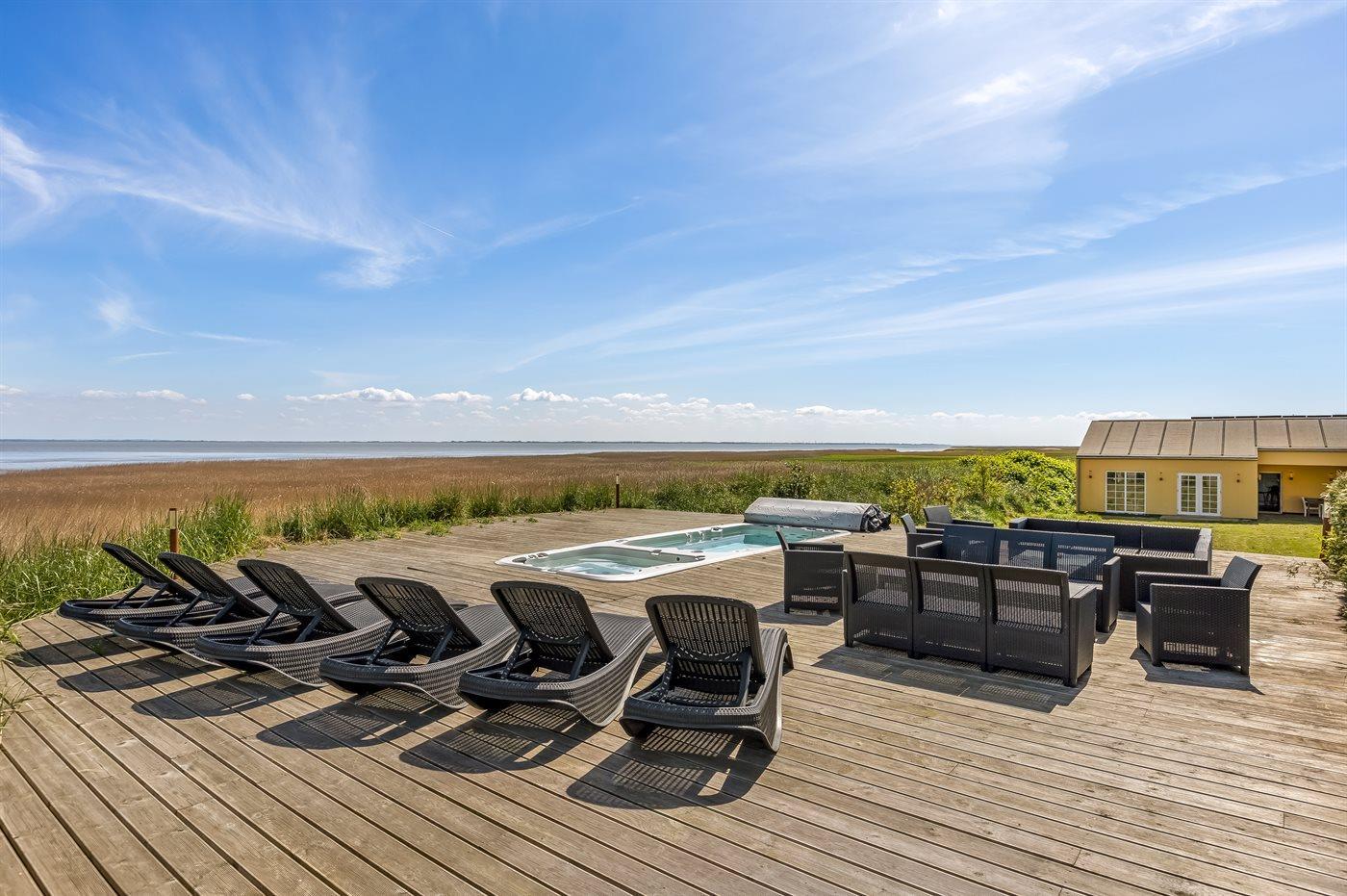 Ein hübsches, geräumiges Luxusferienhaus auf einem sehr großen Grundstück direkt am Wattenmeer. Sowohl vom Haus als auch vom Grundstück aus haben Sie einen fantastischen Panoramablick aufs Meer. Auf der Terrasse steht Ihnen ein schöner Outdoor-Whirlpool mit Standwasser und ein Swim Spa mit Schwimmtrainingsfunktion zur Verfügung. Auch von hier können Sie die Aussicht aufs Wasser genießen.