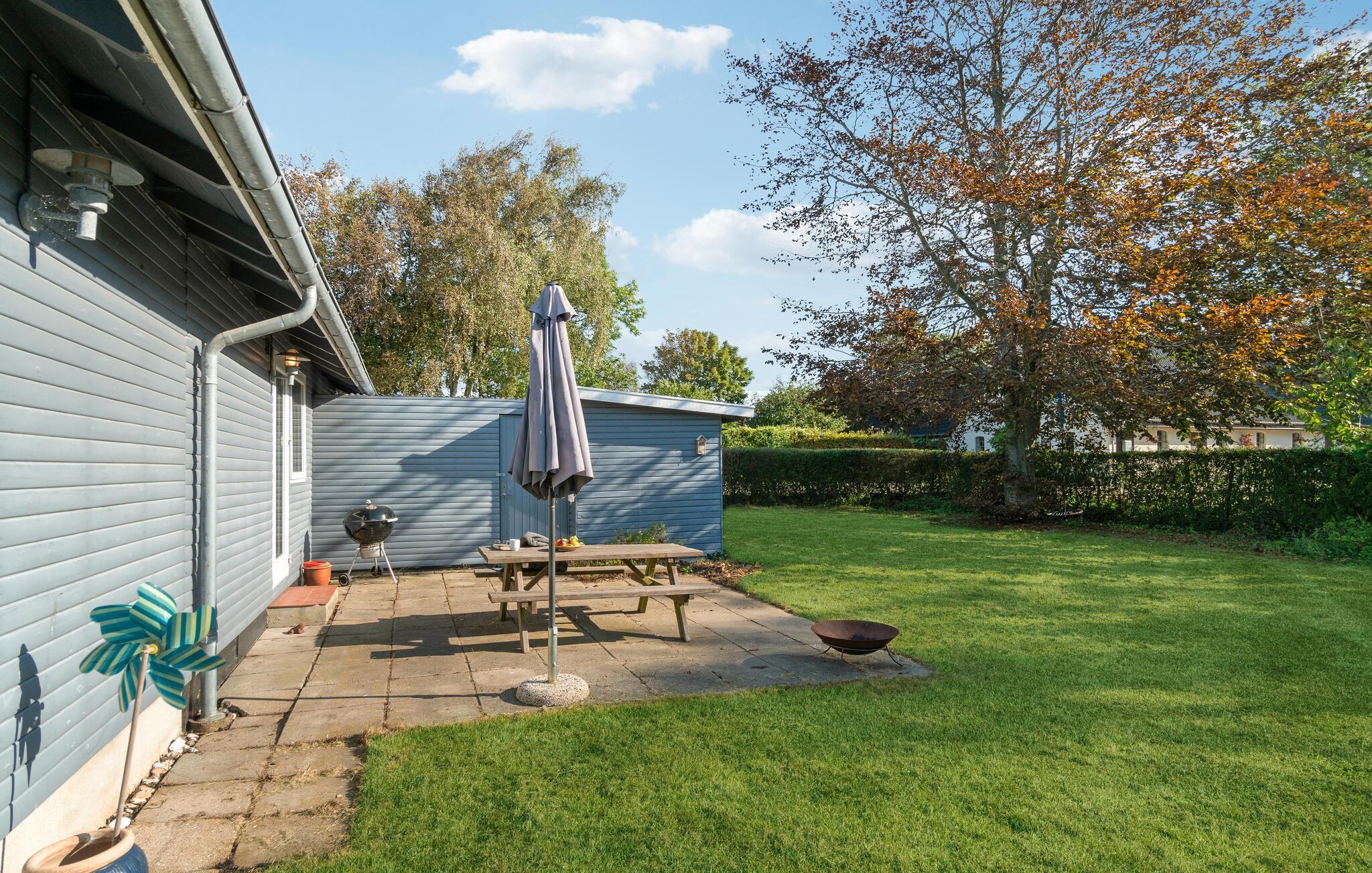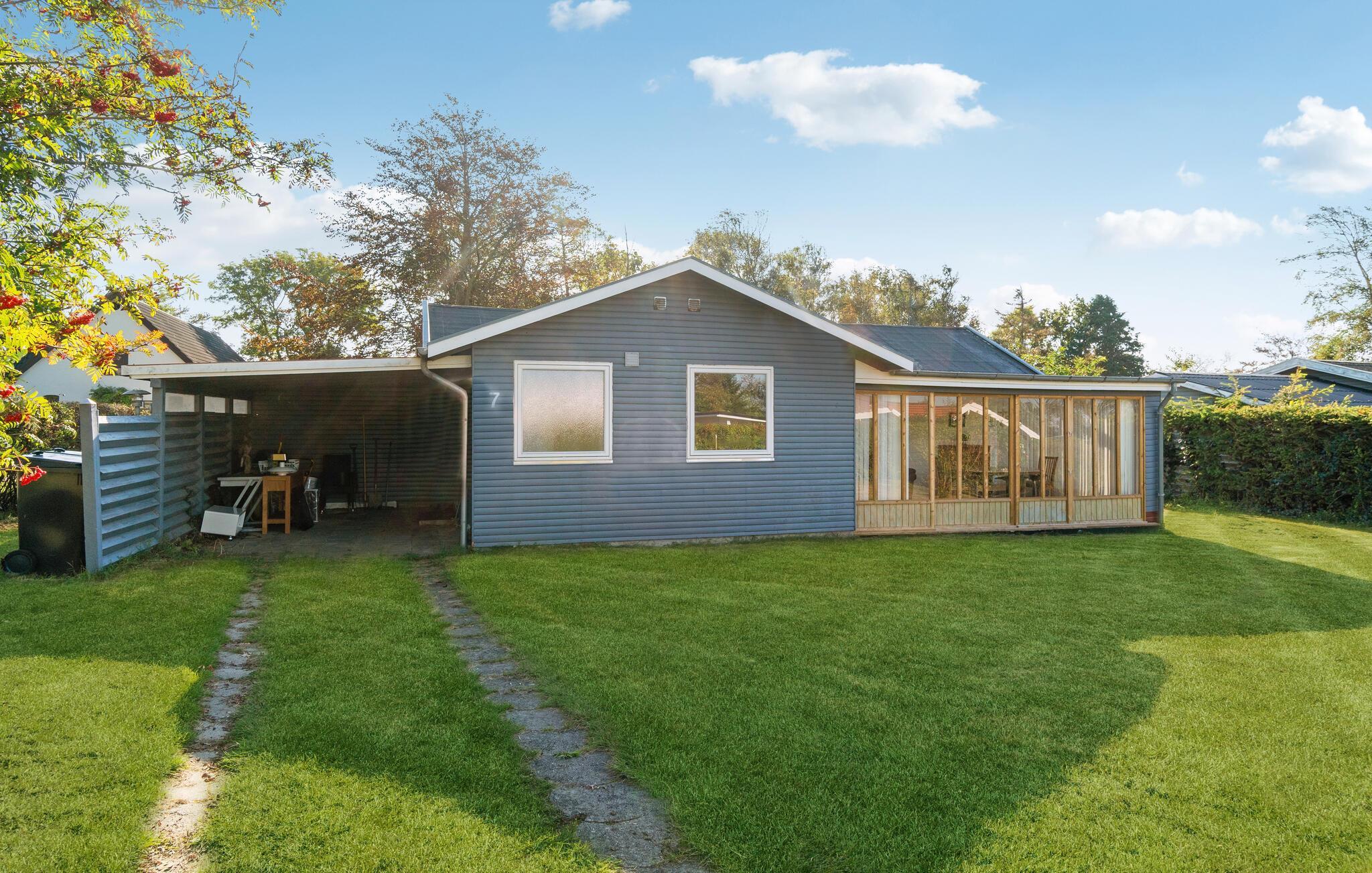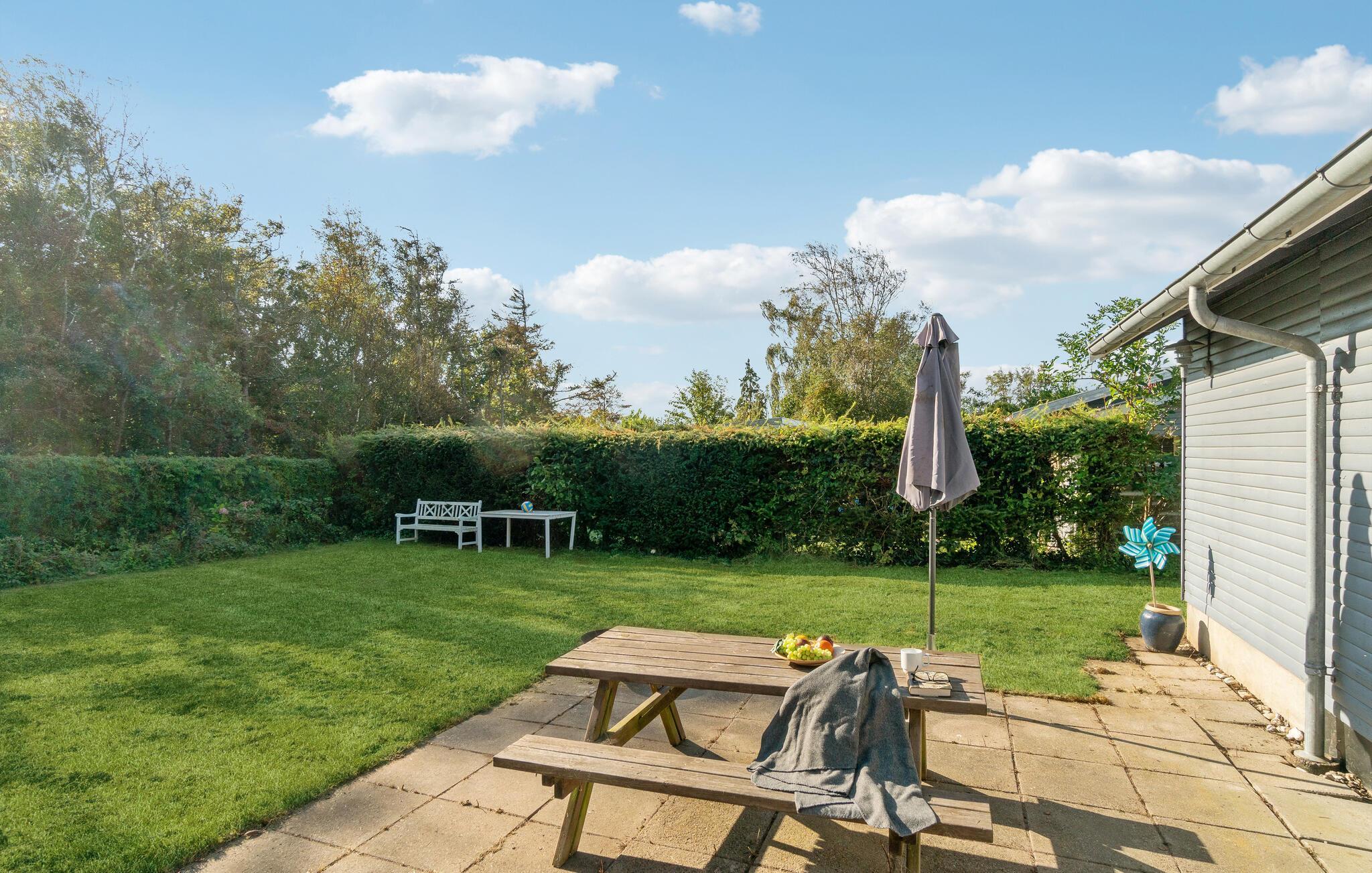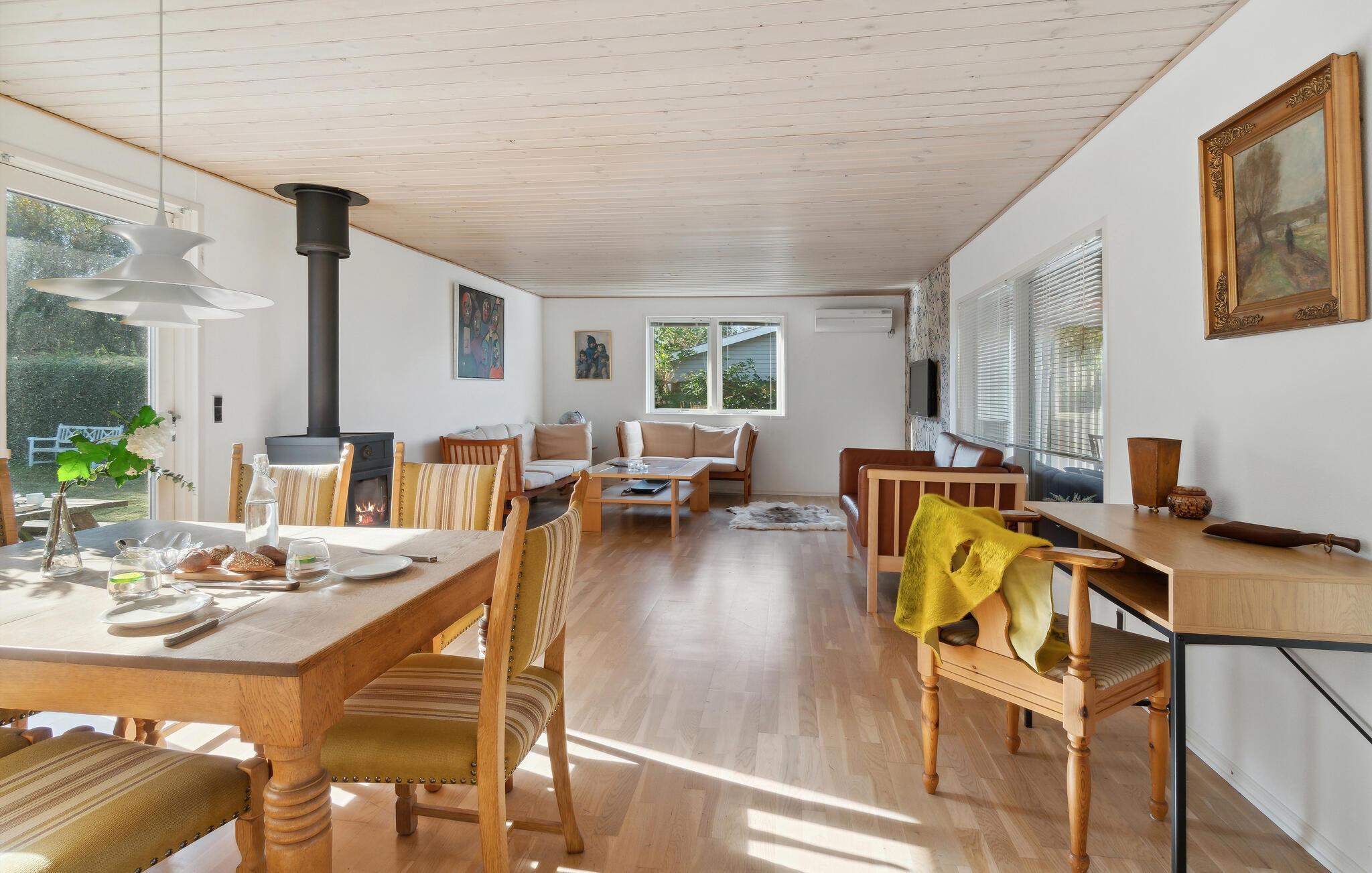 Gemütliches Ferienhaus am Kongsmark Strand mit Kamin, Wintergarten und privatem Garten für erholsame Urlaubstage.