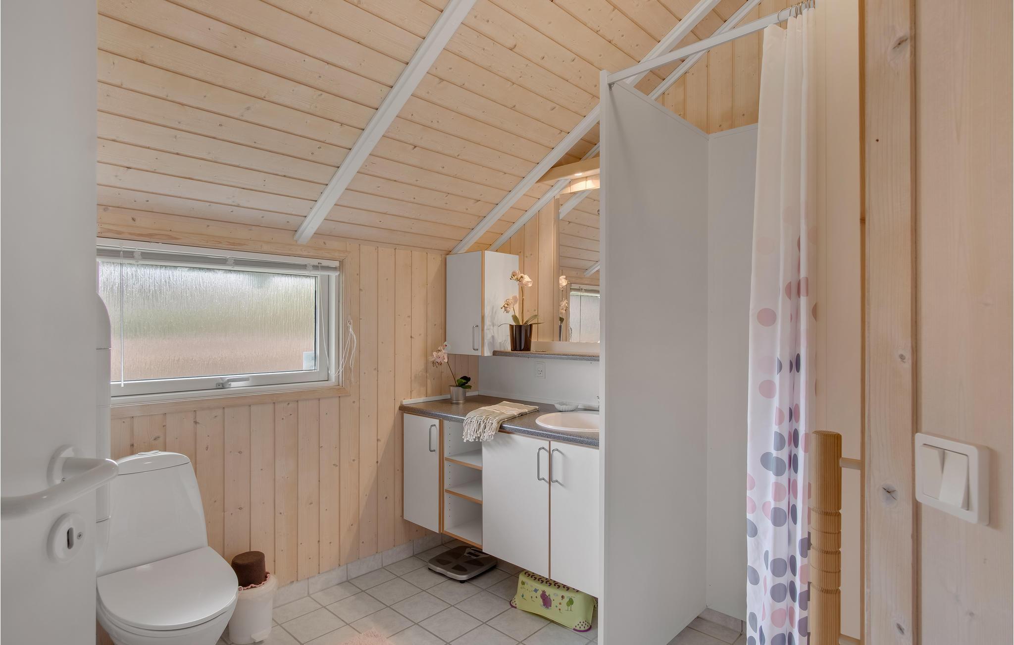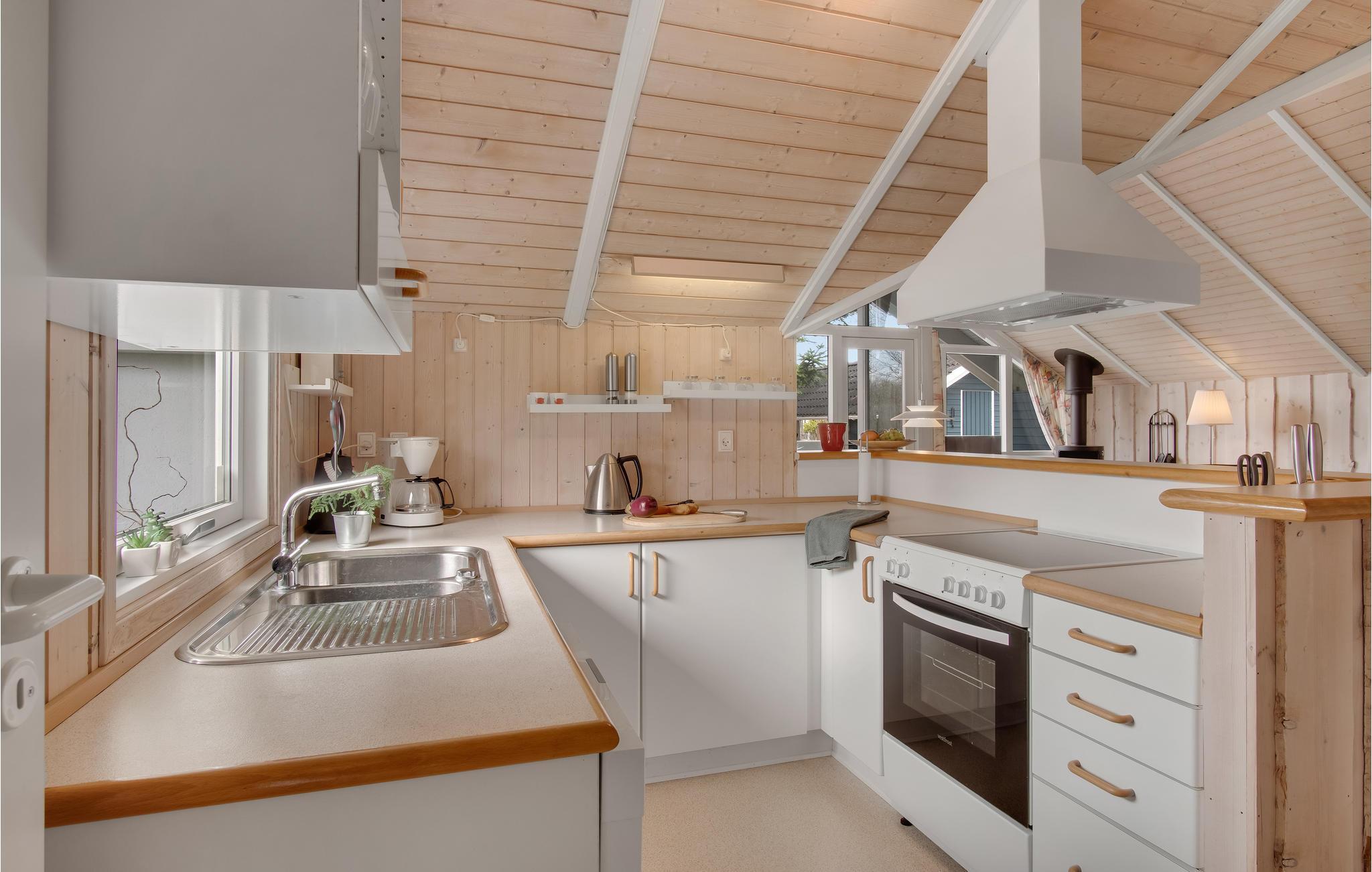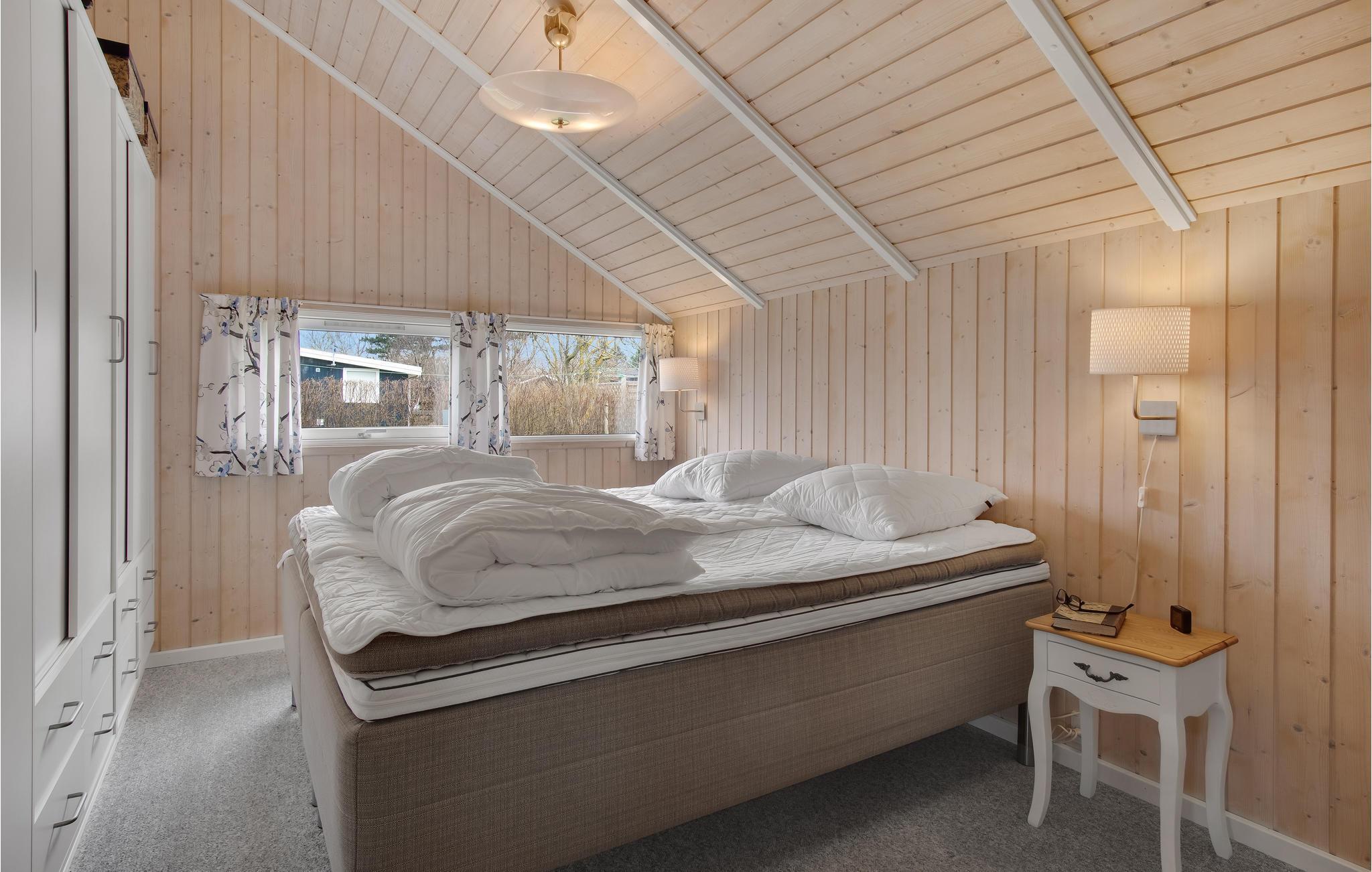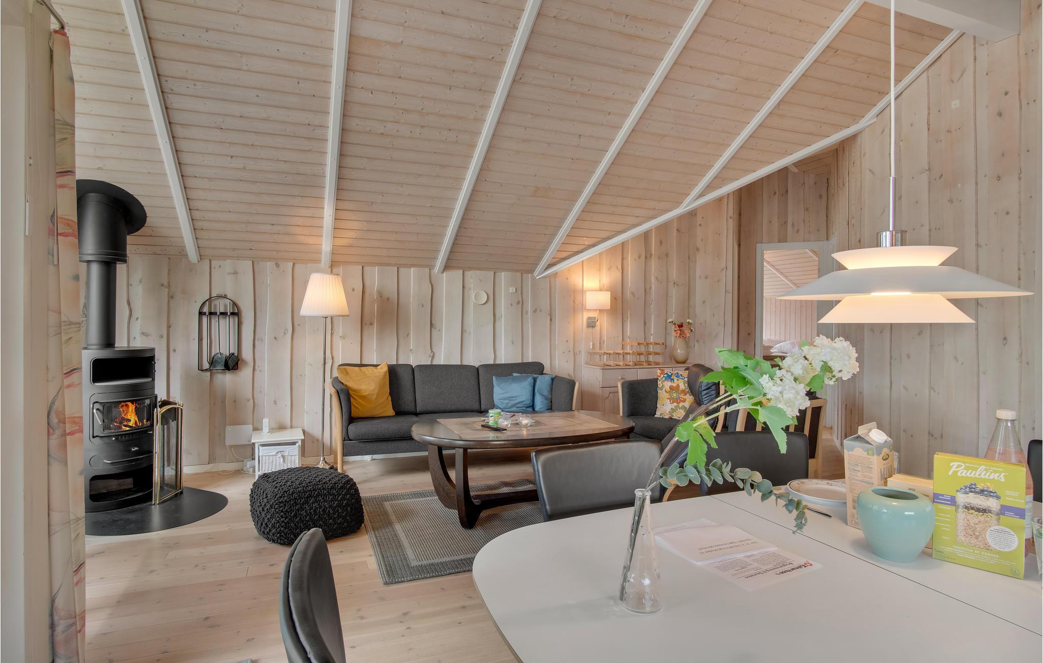 Gemütliches Ferienhaus mit Sauna, Kamin und Meerblick in Kongsmark Strand, ideal für einen erholsamen Urlaub am Strand.