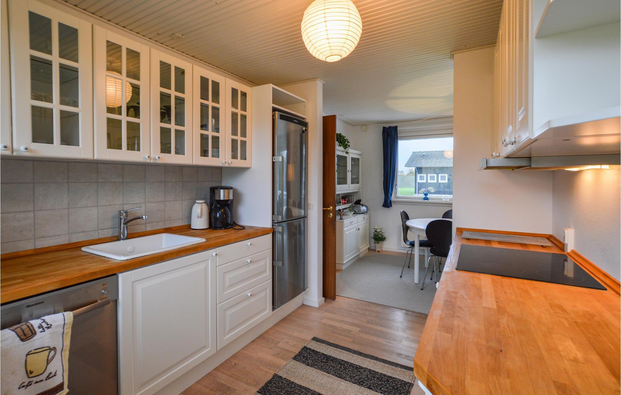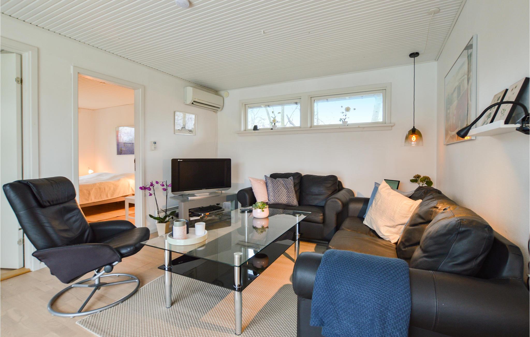Gemütliches kleines Ferienhaus mit Küche und einem kombinierten Wohn- und Esszimmer mit Holzofen. Von der Stube haben Sie Zugang zur offenen Terrasse, den gesamten drei Schlafzimmern und dem Badezimmer mit Dusche. Das Haus liegt auf einem offenen Grundstück.