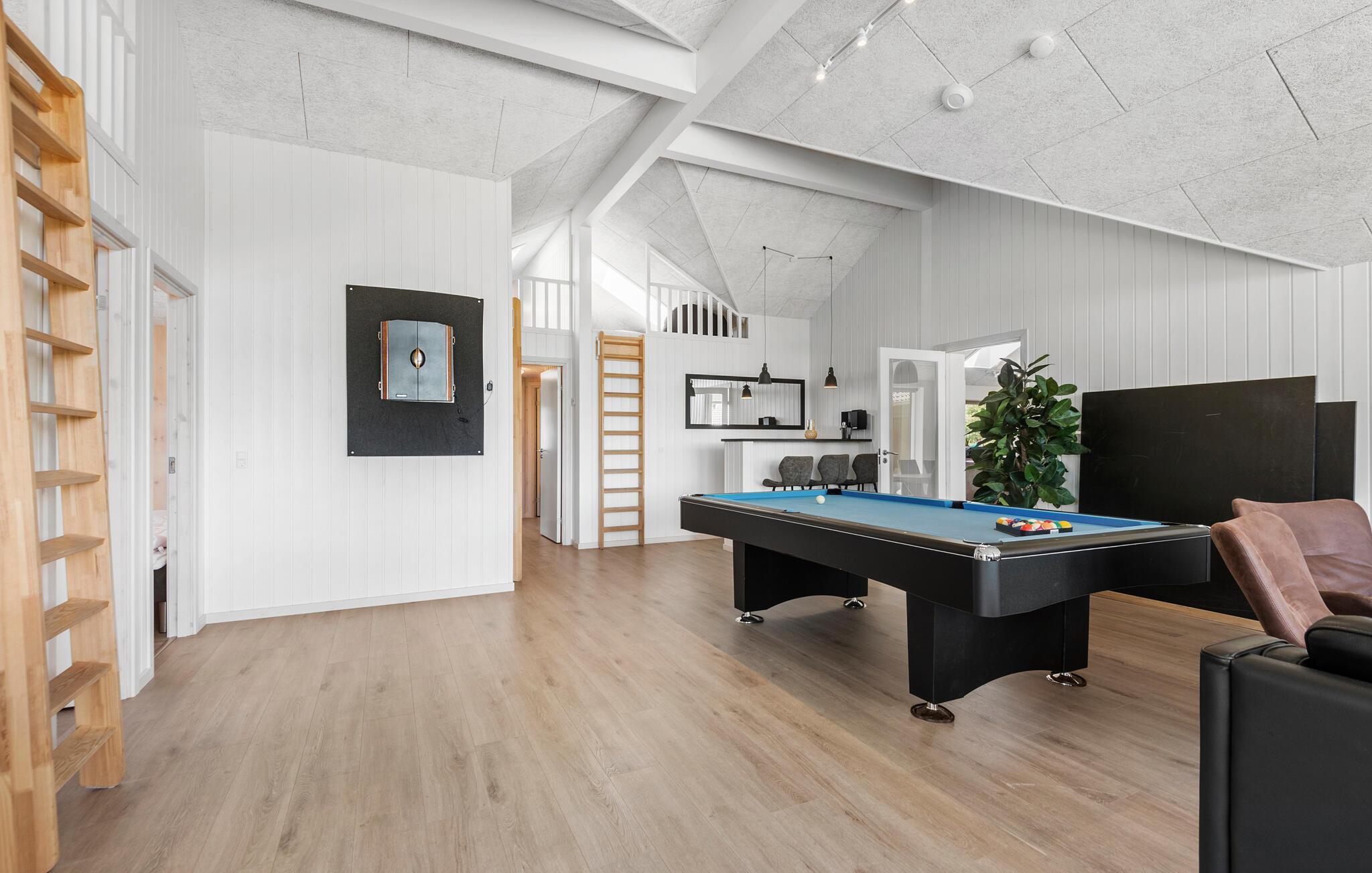 Verbringen Sie schöne Urlaubstage in diesem einladenden Ferienhaus auf der Ostseite der süddänischen Insel Rømø. Ihr geräumiges Ferienhaus ist ideal für einen Urlaub mit mehreren Familien oder einer größeren Freundesgruppe geeignet. Beginnen Sie Ihren Tag mit einem gemeinsamen Frühstück, gefolgt von einem erfrischenden Bad im Pool. Entspannen Sie im Whirlpool auf der Terrasse und in der hauseigenen Sauna. Der großzügige Wohnbereich des geschmackvoll eingerichteten Hauses lädt dazu ein, vor und nach Ihren Urlaubsausflügen zu verweilen. Machen Sie es sich auf den bequemen Sofas gemütlich, spielen Sie lustige Gesellschaftsspiele am Esstisch und genießen Sie die wohlige Wärme des Kaminofens. In der offenen Küche können Hobbyköche ihre Fähigkeiten unter Beweis stellen und leckere Gerichte zaubern. Vergessen Sie nicht, den Urlaubsmeister im Billard, Tischtennis und Dart zu küren.