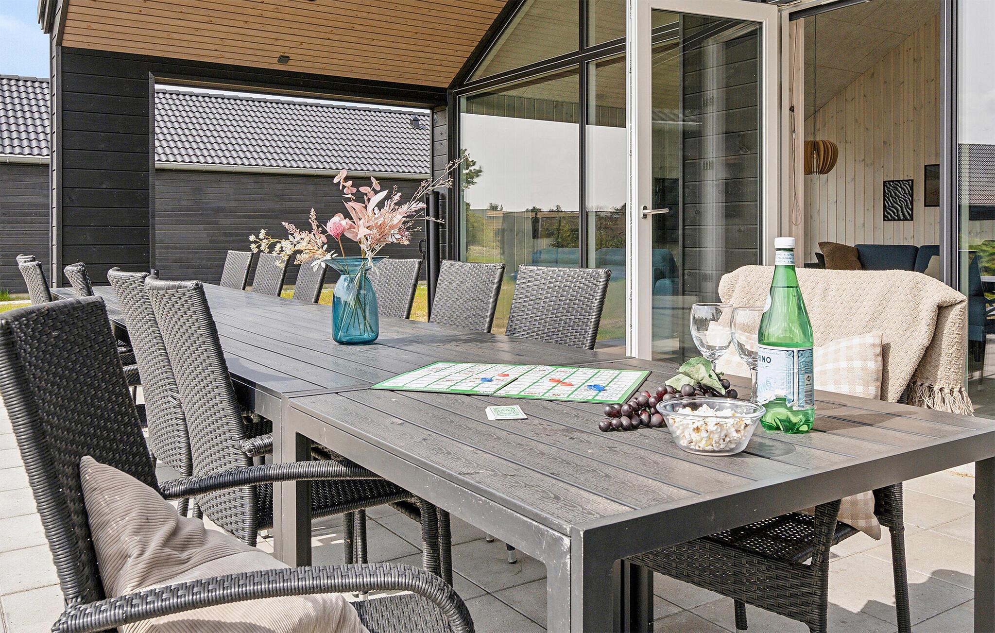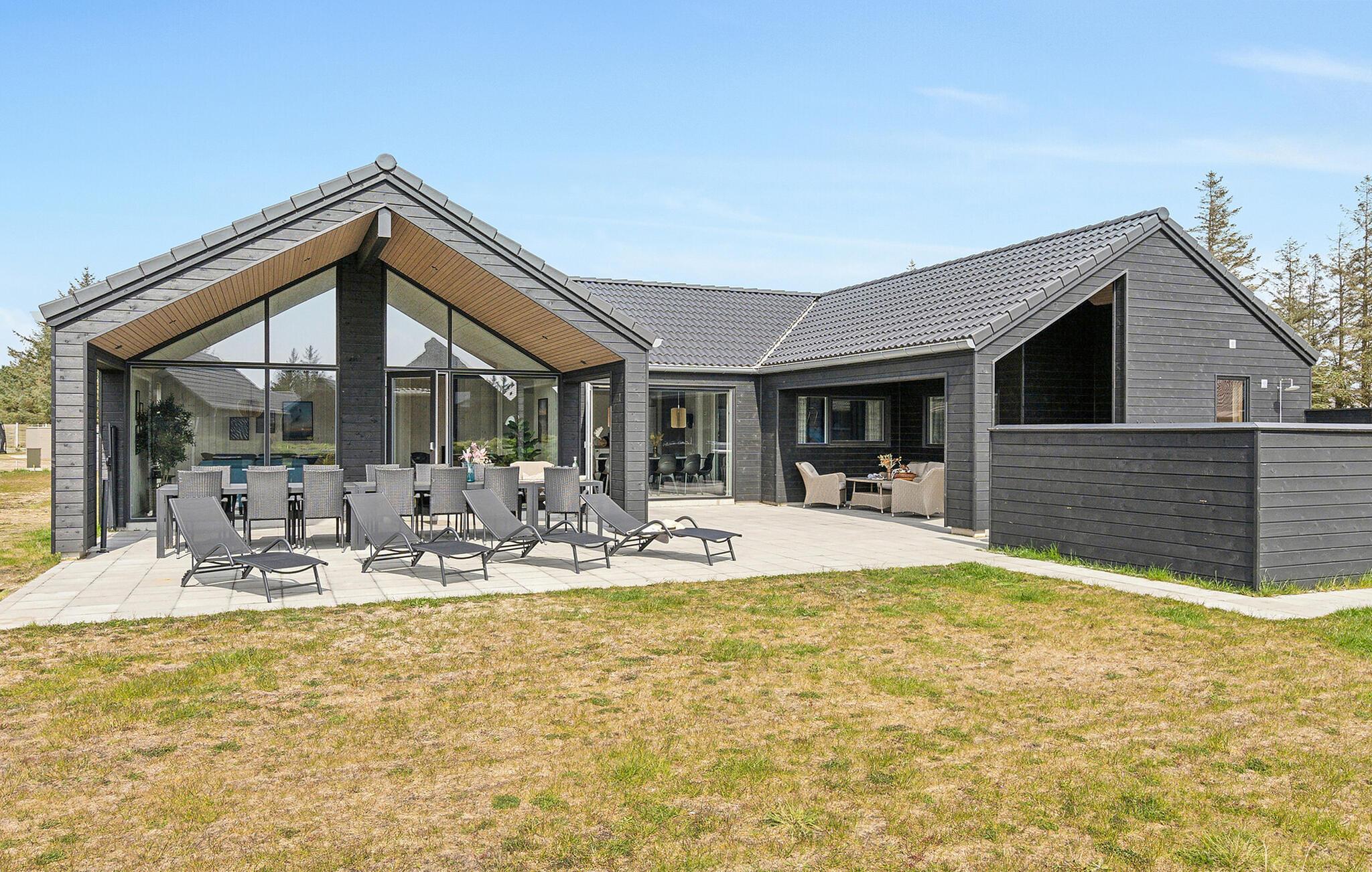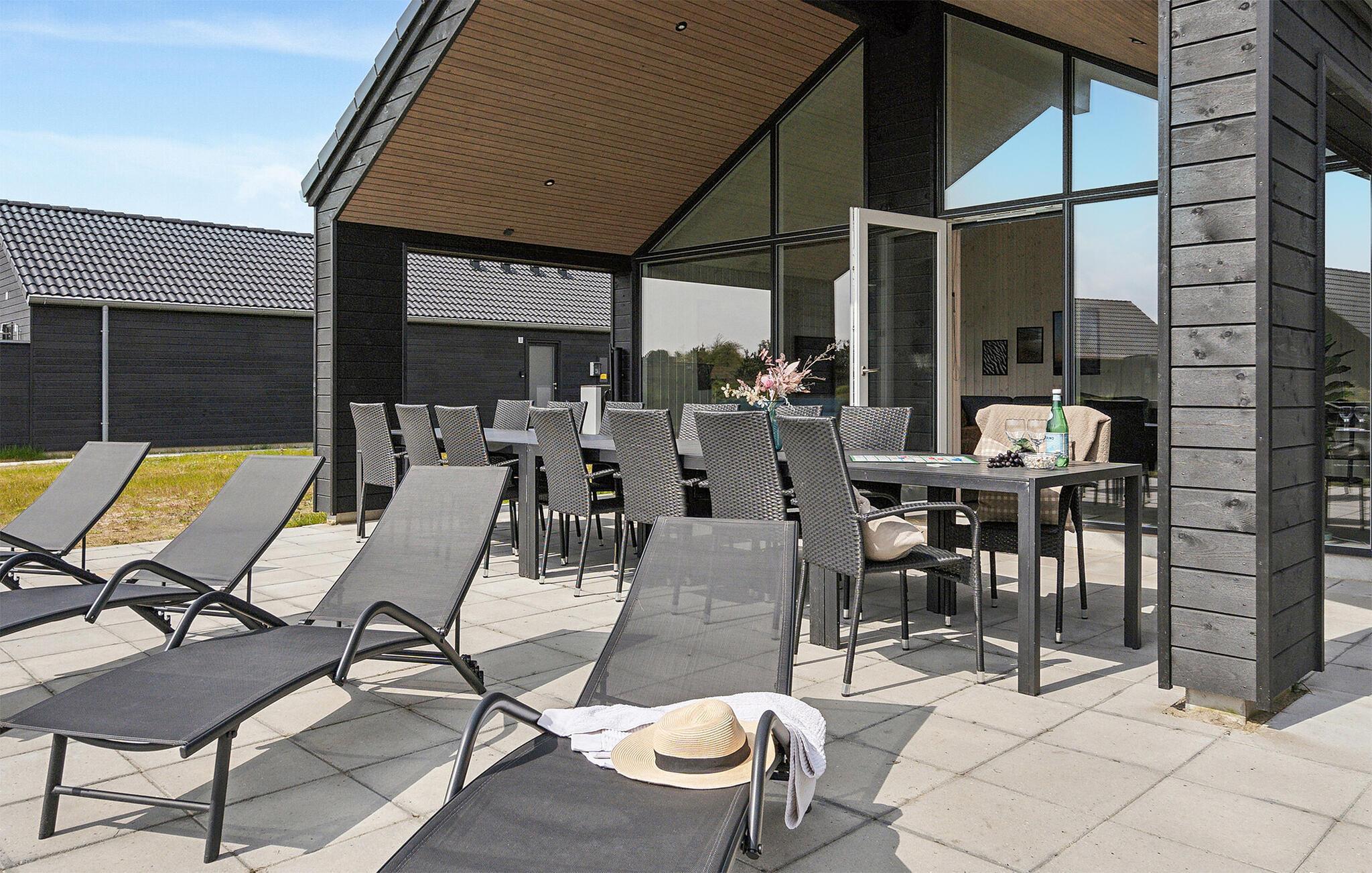 Modernes Ferienhaus auf Rømø mit Sauna, Innenpool und großzügiger Terrasse für entspannte Urlaubstage.