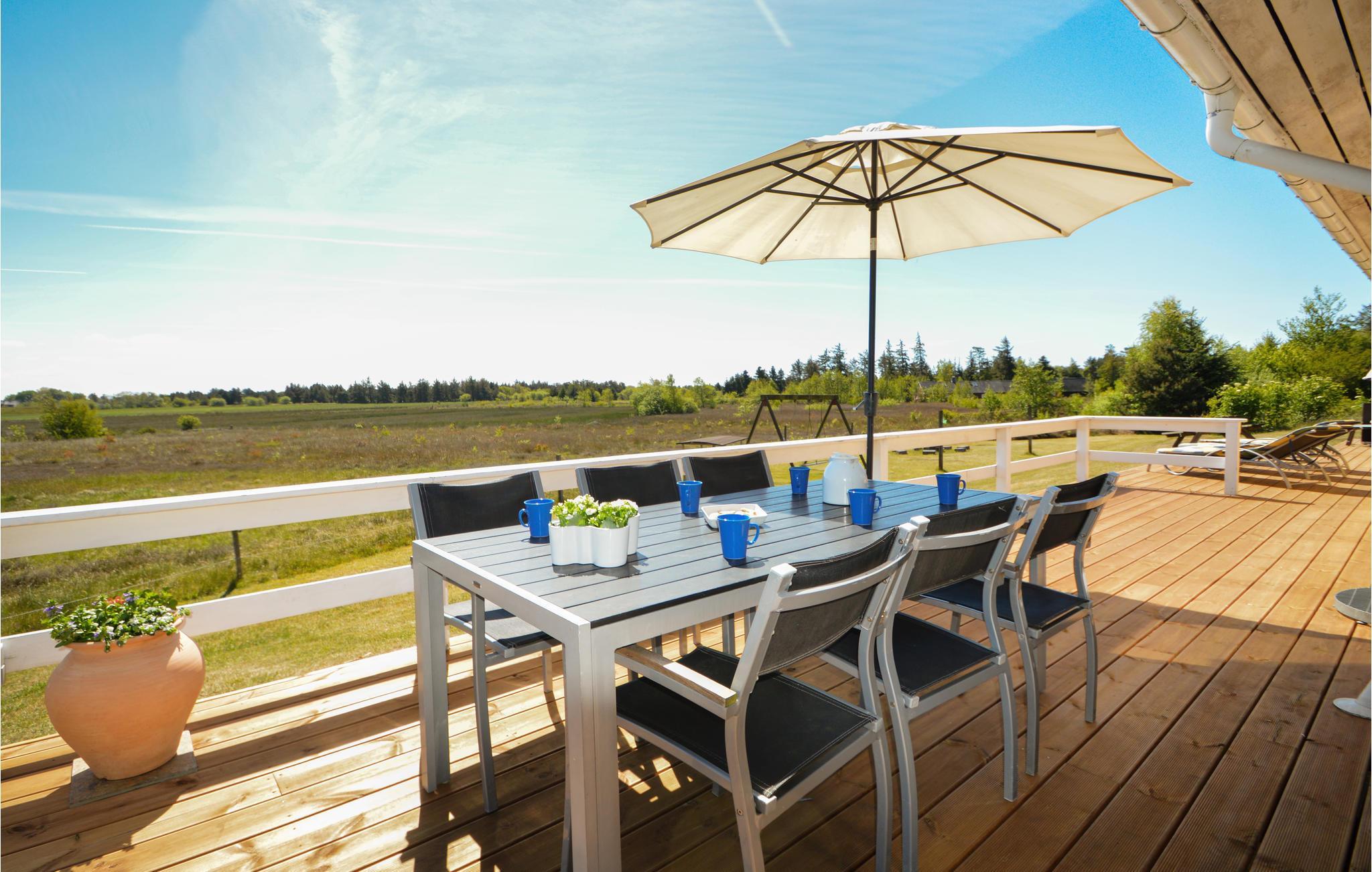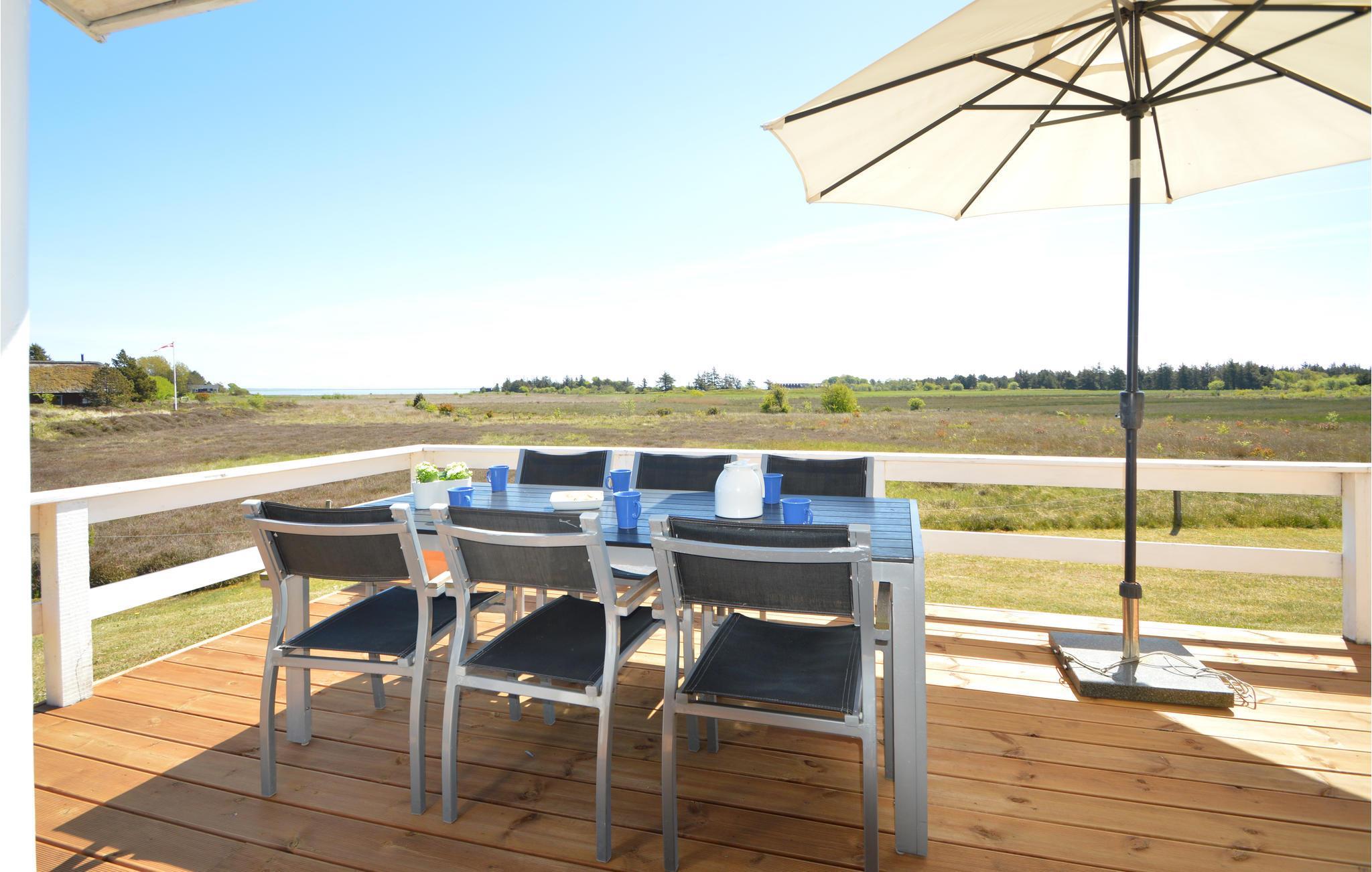 Dieses grosse Ferienhaus aus Holz ist hoch auf einem Naturgrund, mitten auf Rømø gelegen mit herrlicher Aussicht über die offene Landschaft des Wattenmeeres.