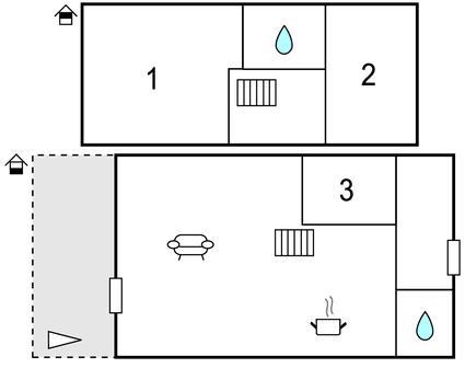 Schlafzimmer (nr. 1) - 1 Schlafmöglichkeit. (Einzelbett(en)). 2 Schlafmöglichkeiten. (Doppelbett(en)).